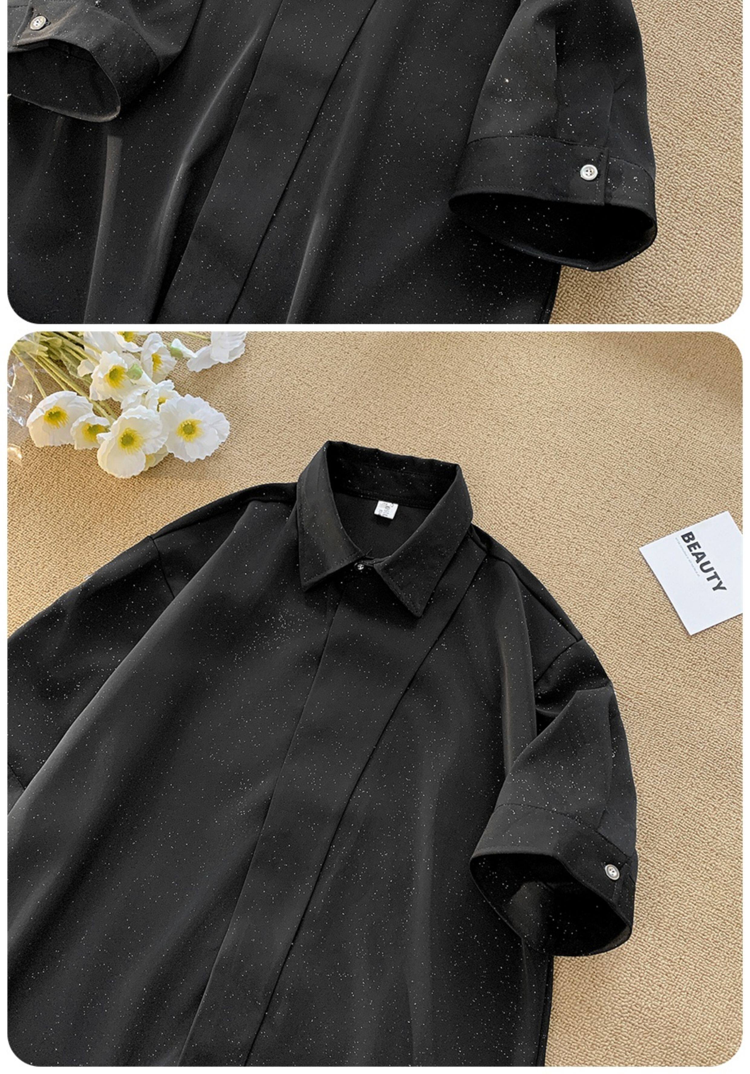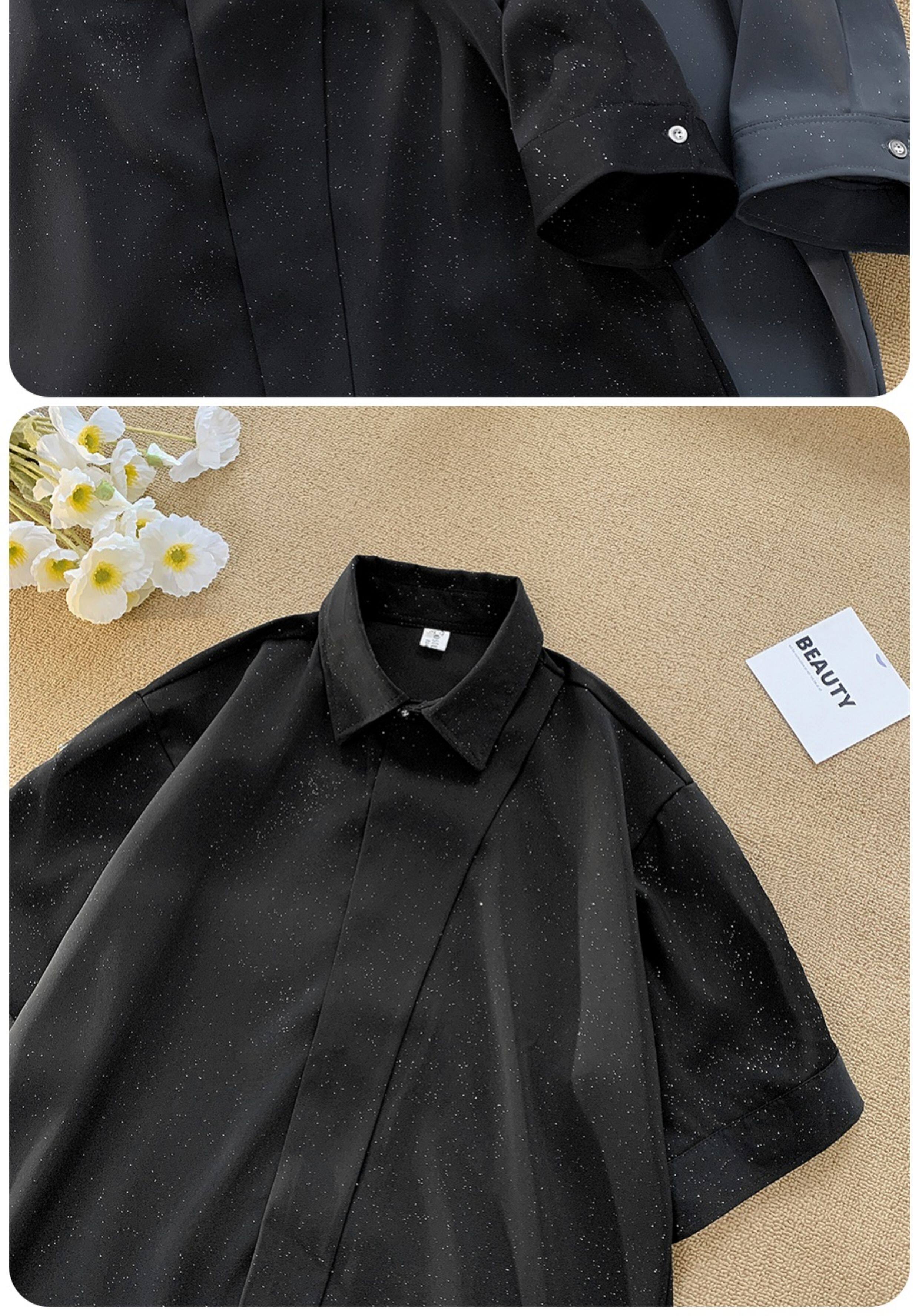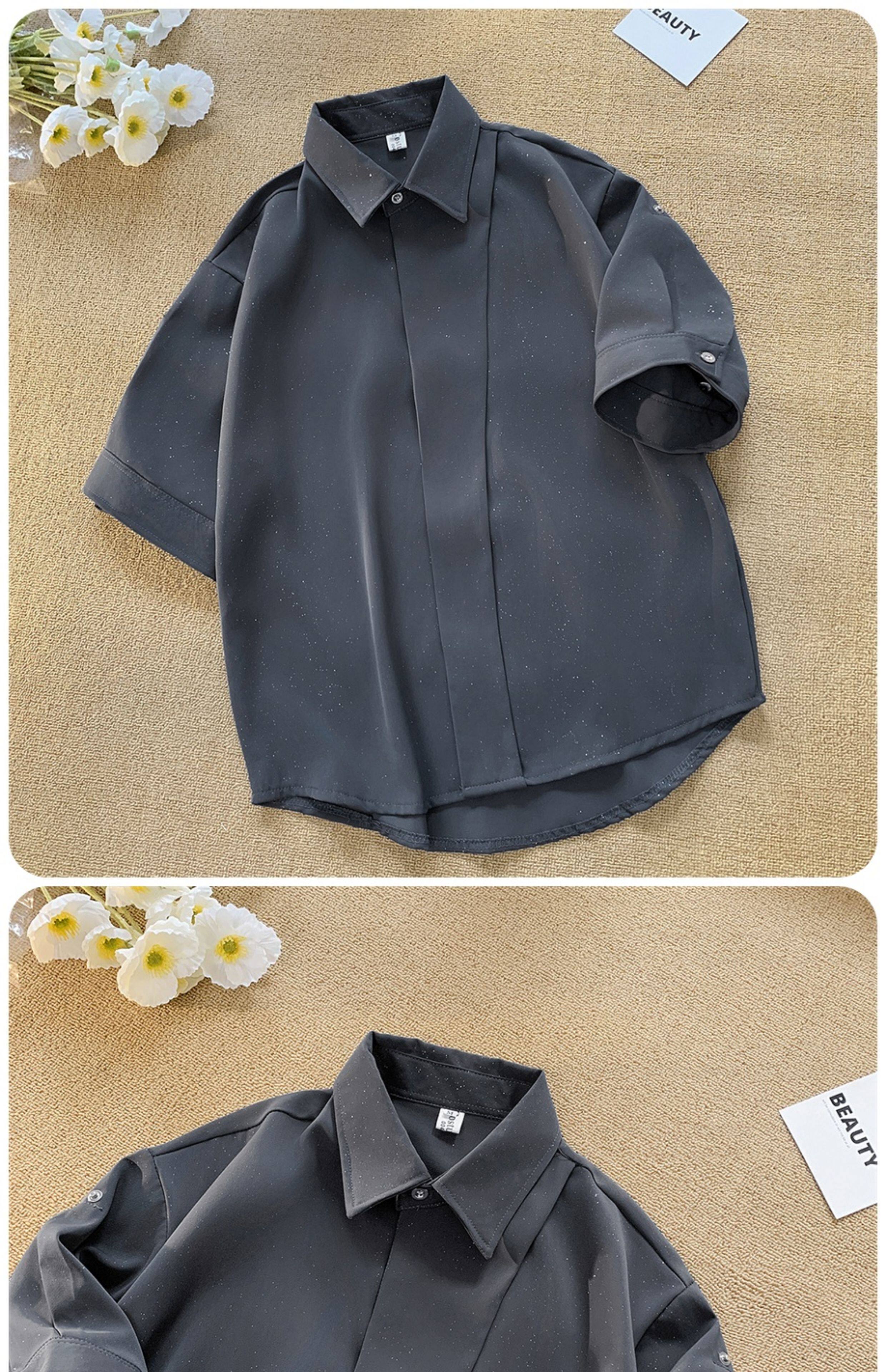 痞帥設計感短袖襯衫男夏季美式復古寬鬆純色襯衣潮流小衆半袖外套