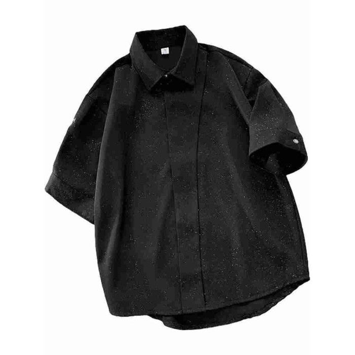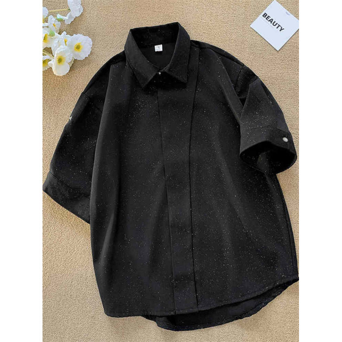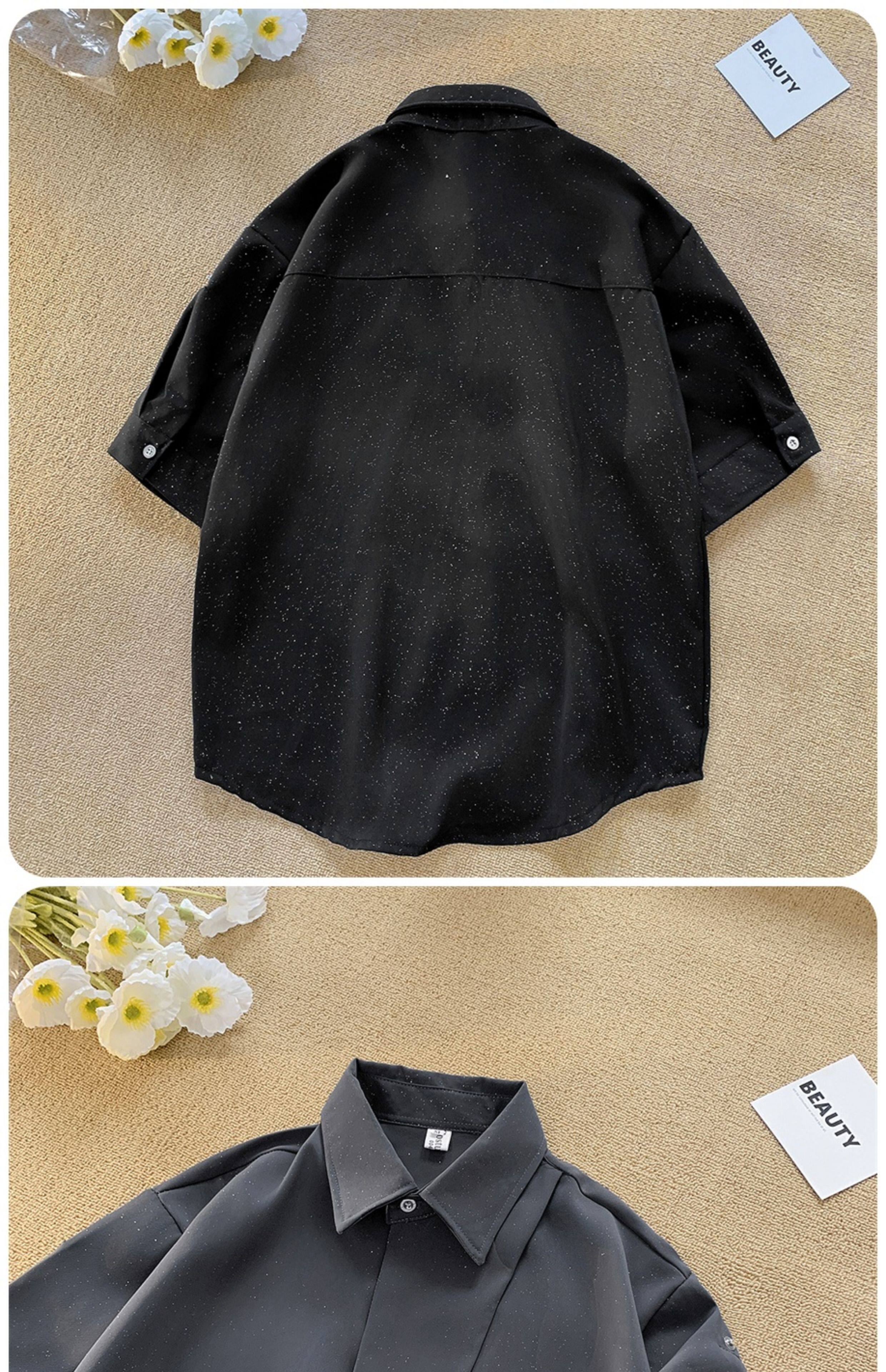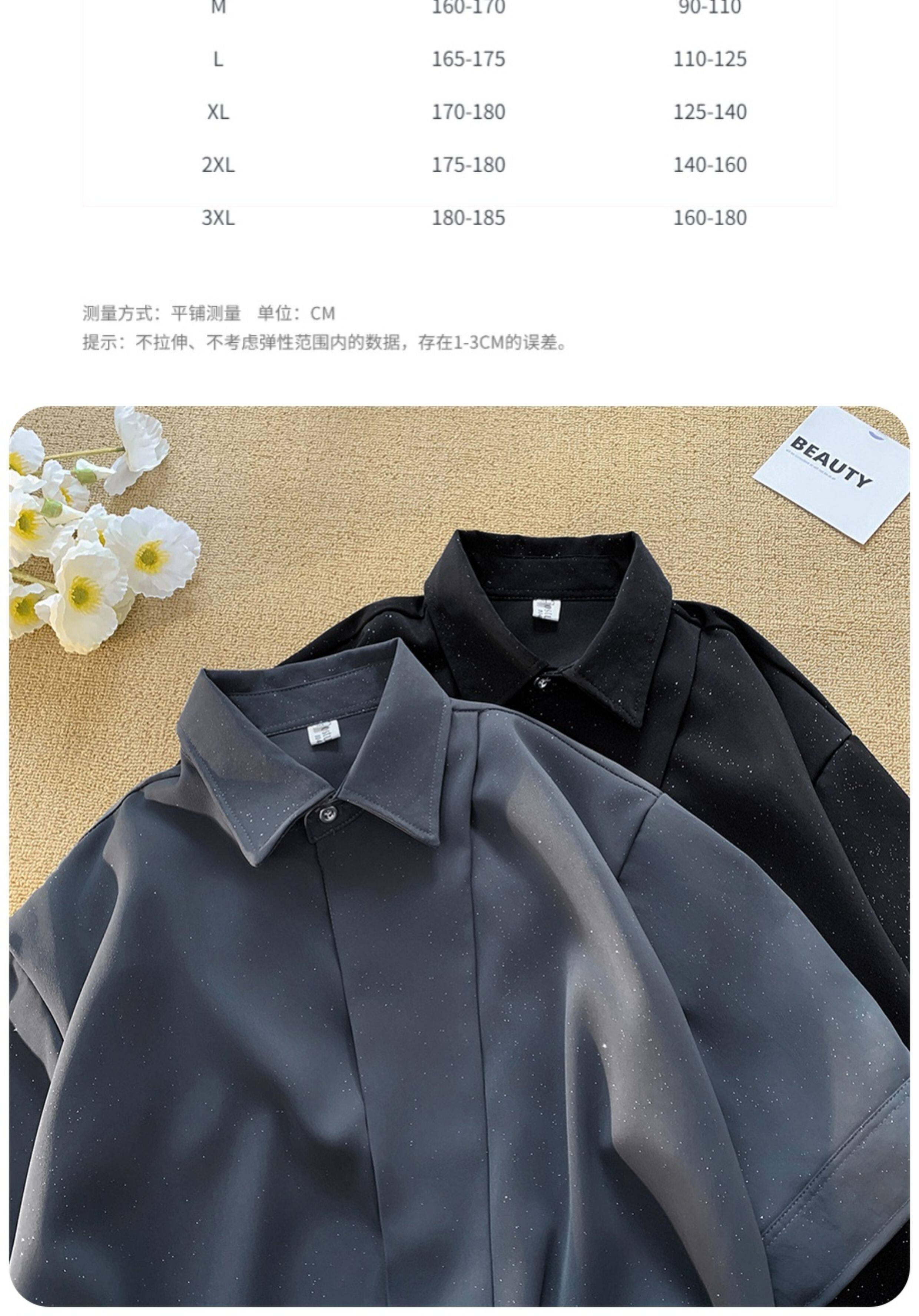 痞帥設計感短袖襯衫男夏季美式復古寬鬆純色襯衣潮流小衆半袖外套