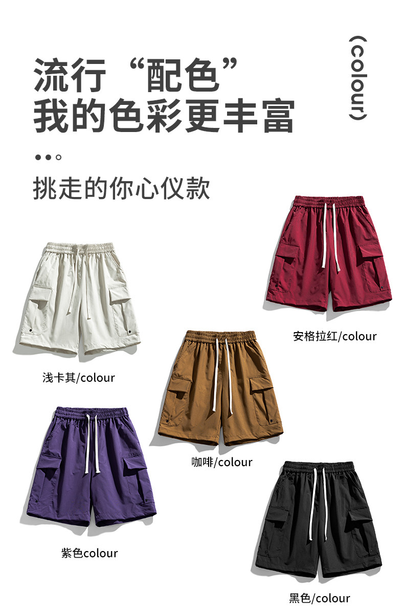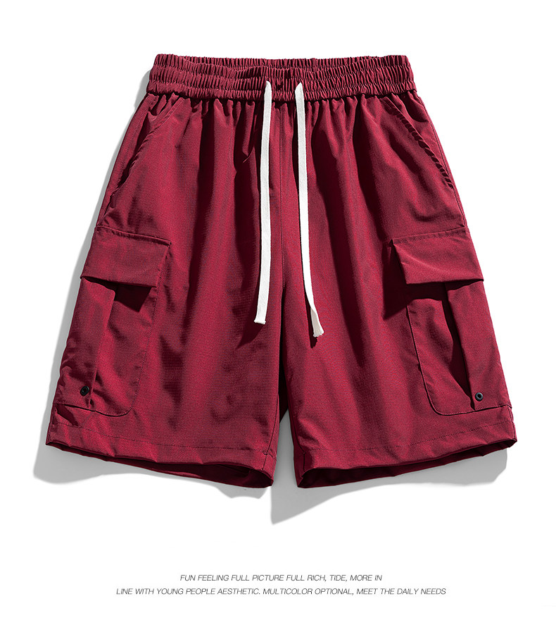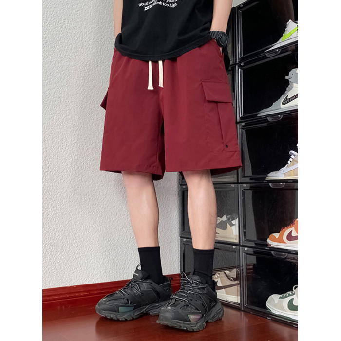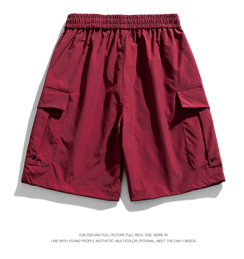 WASSUP DEION潮牌安哥拉紅工裝五分褲子男夏季寬鬆涼感情侶沙灘褲