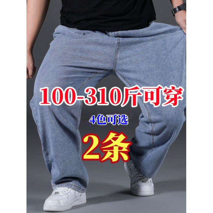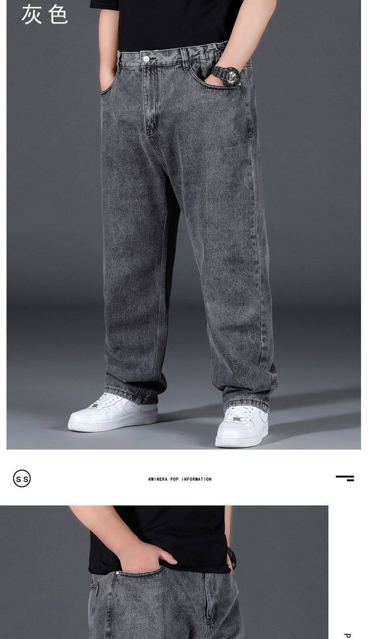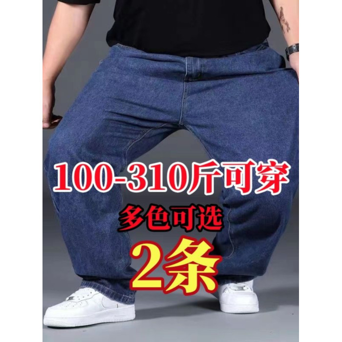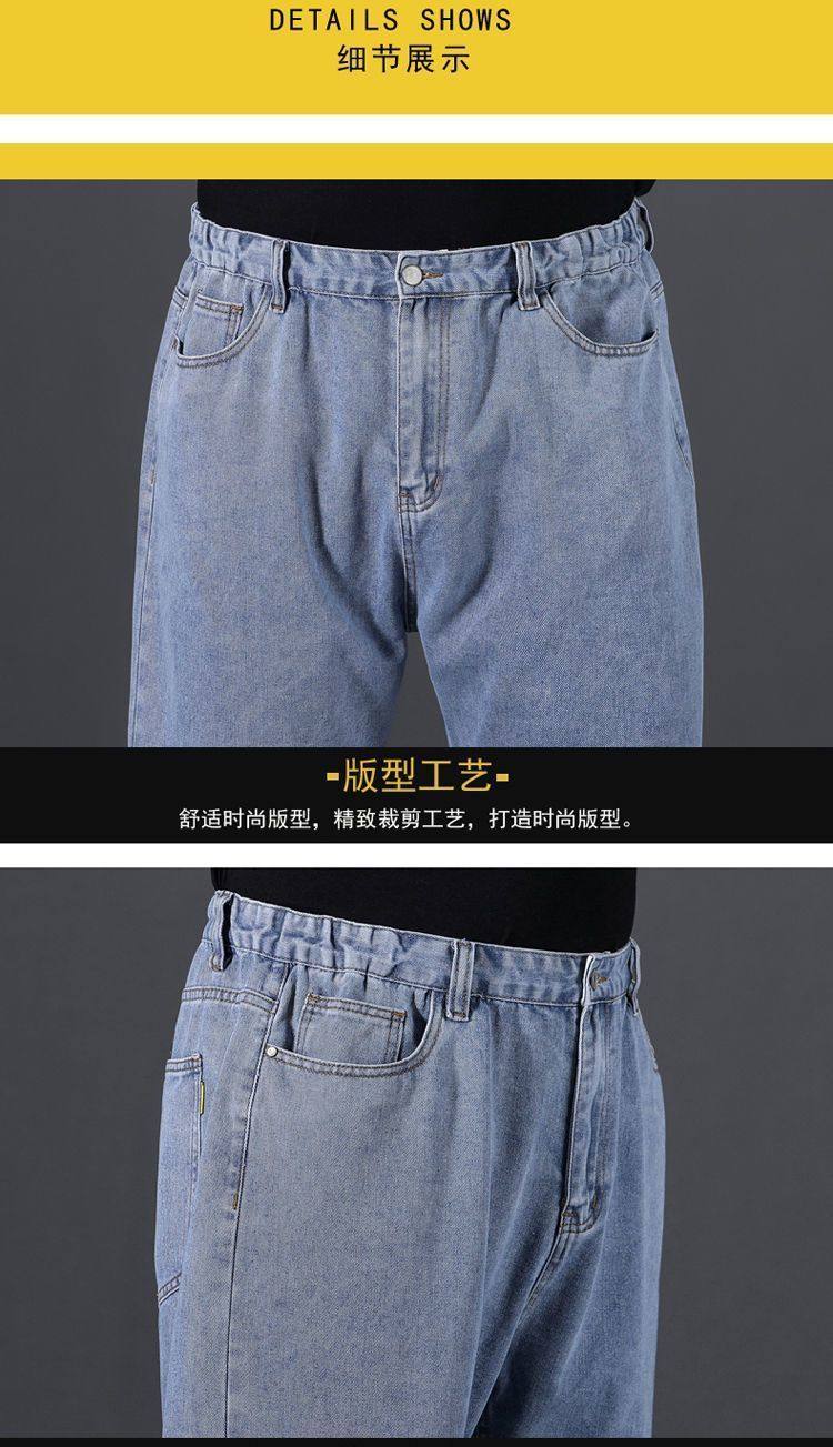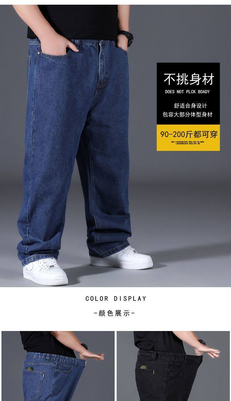 大碼工裝加大加肥彈力牛仔褲男寬鬆直筒胖子長褲子耐磨工作勞保褲