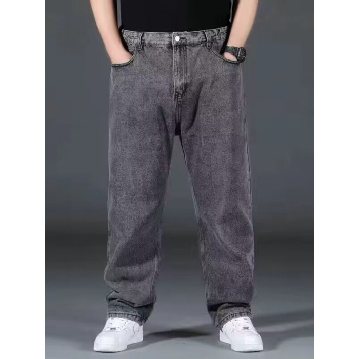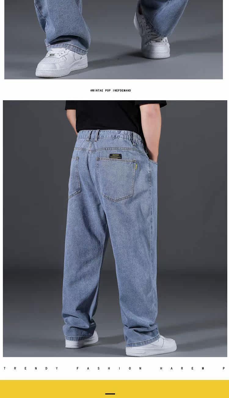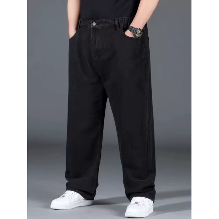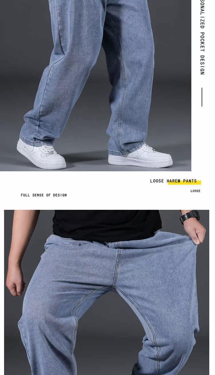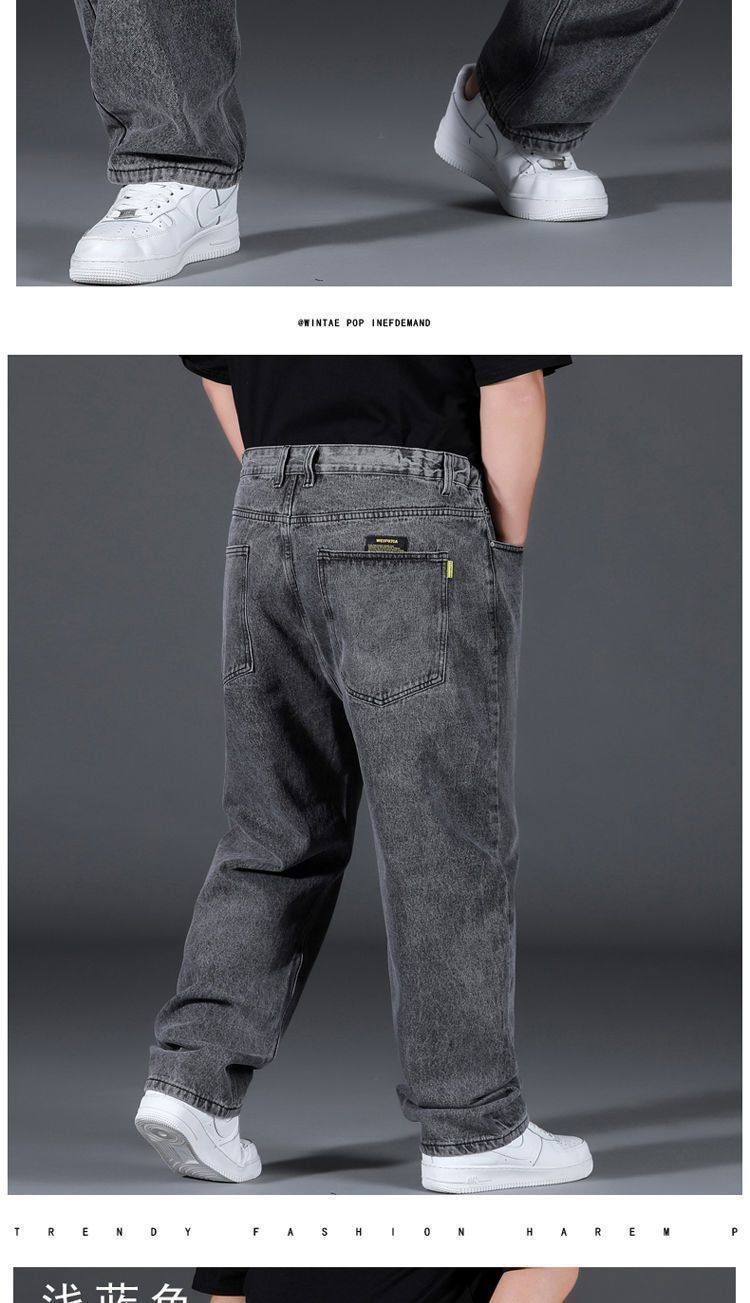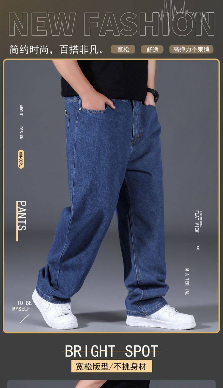 大碼工裝加大加肥彈力牛仔褲男寬鬆直筒胖子長褲子耐磨工作勞保褲