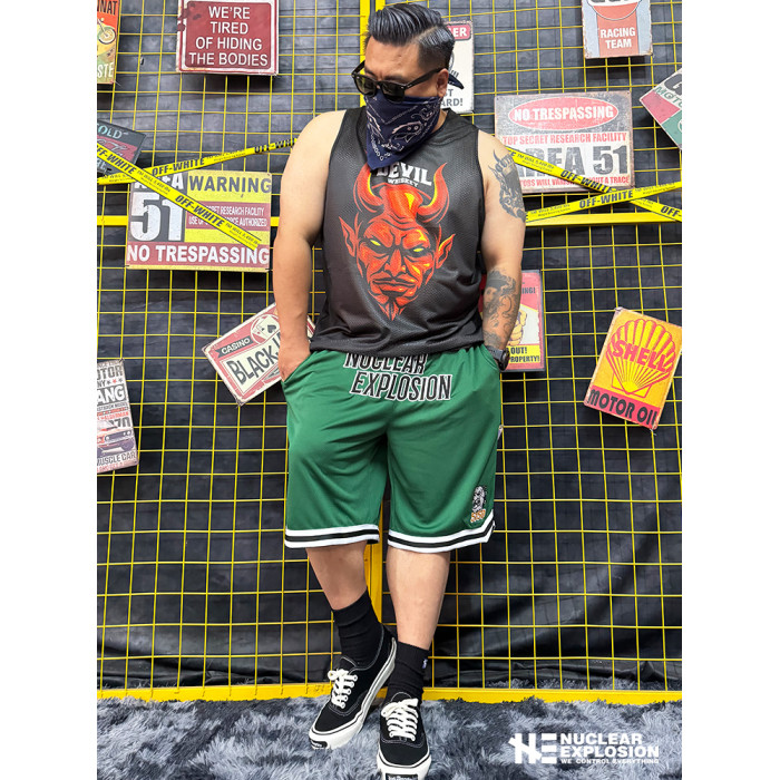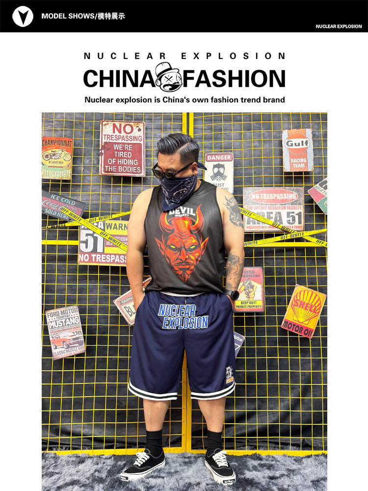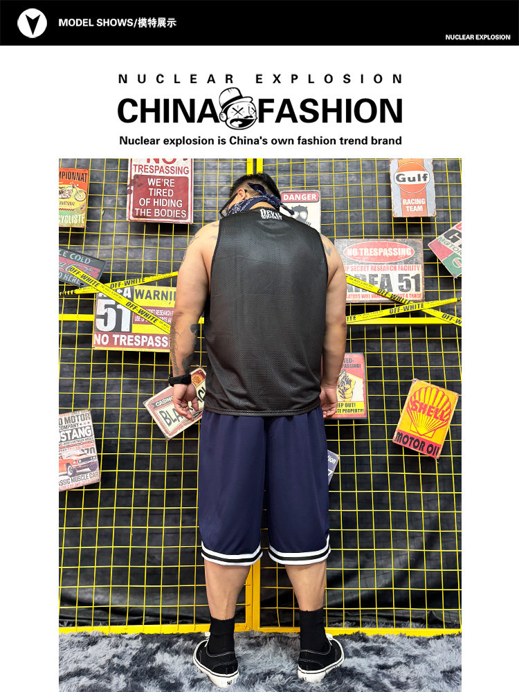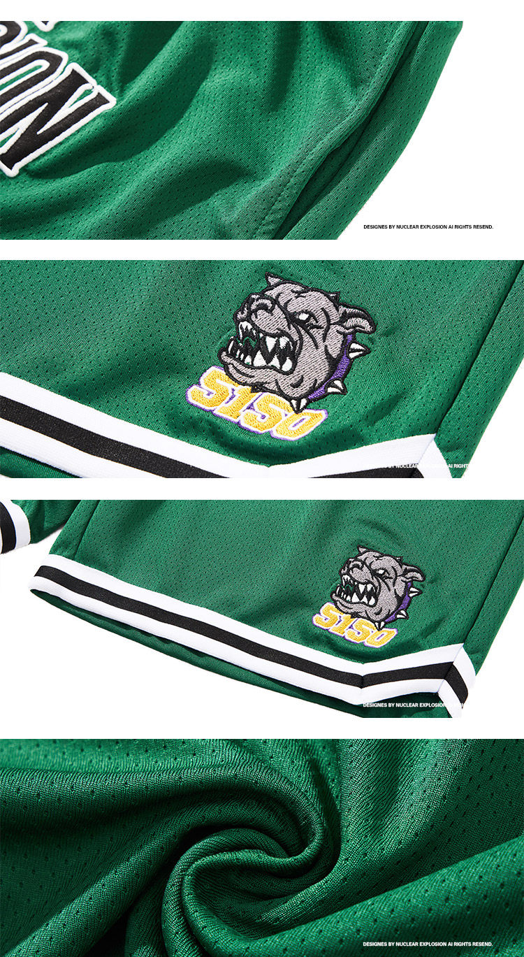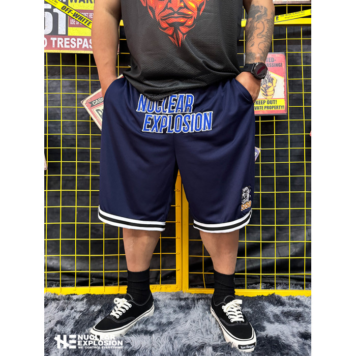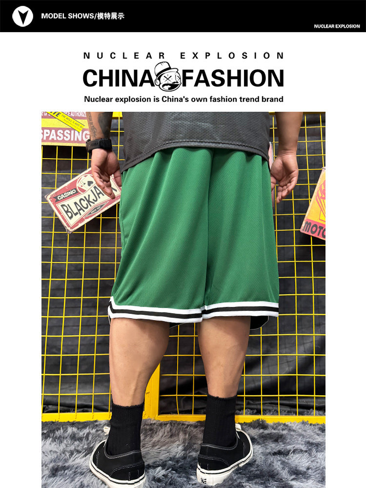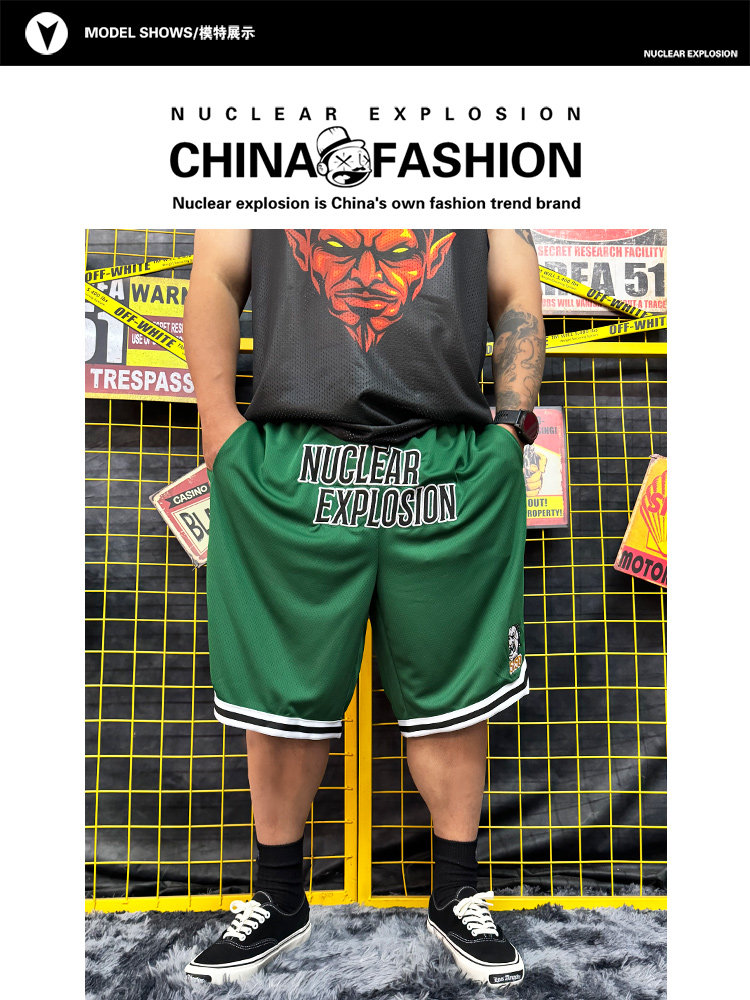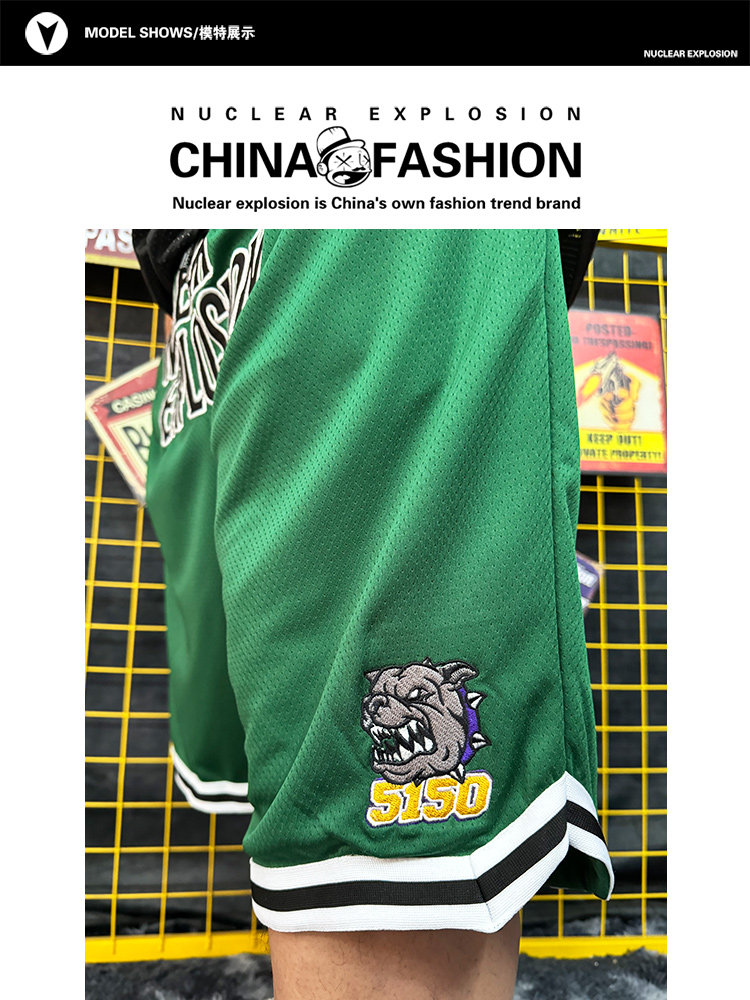 核爆炸美式籃球短褲潮流復古刺綉冰絲寬鬆大碼松緊腰六分運動褲男