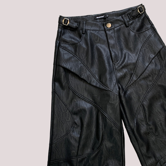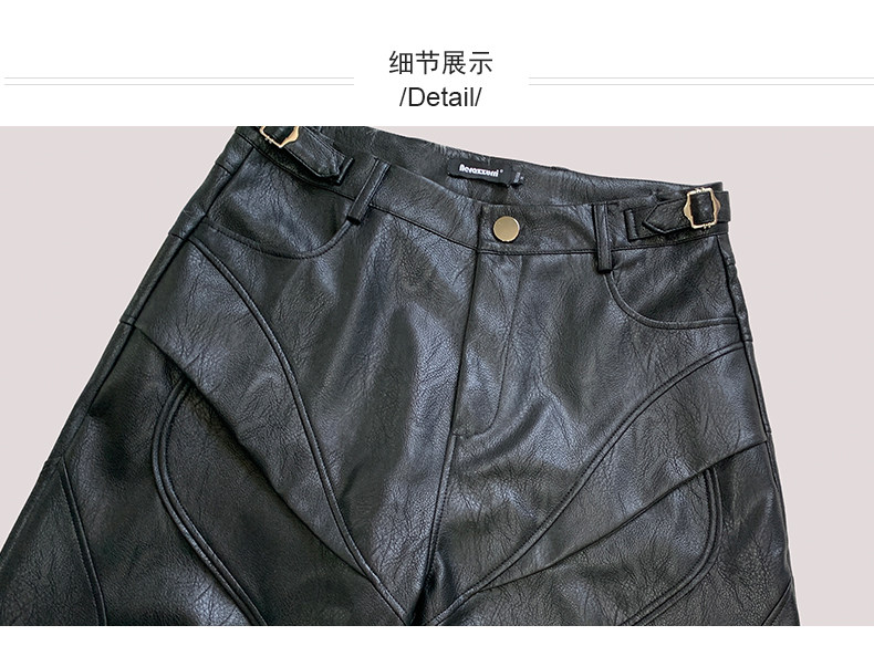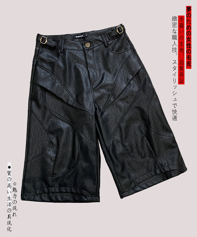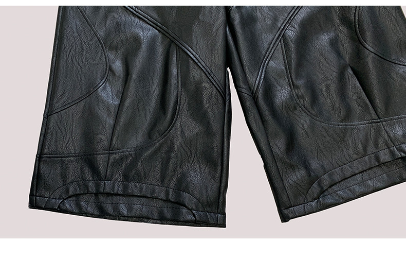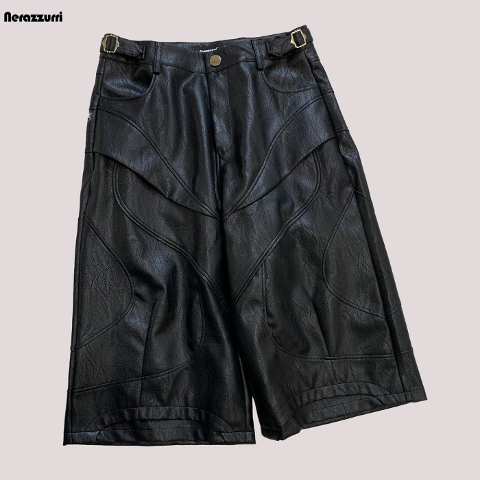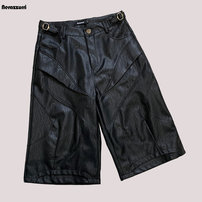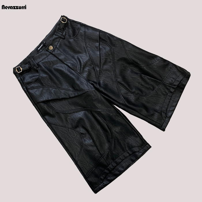 nerazzurri黑色重工七分褲PU皮褲男解搆短褲男士短褲子2025新款