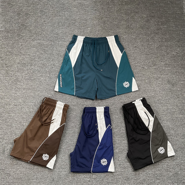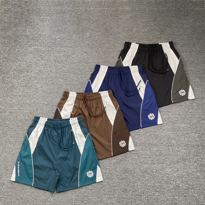 broken planet美潮高街復古運動休閒夏季撞色拼接梭織速乾短褲男