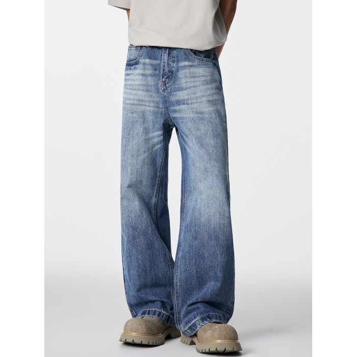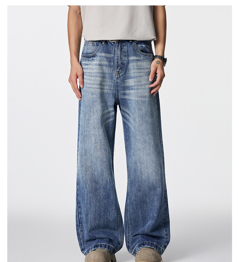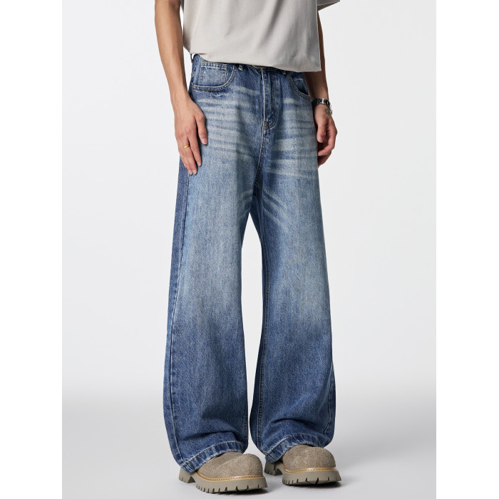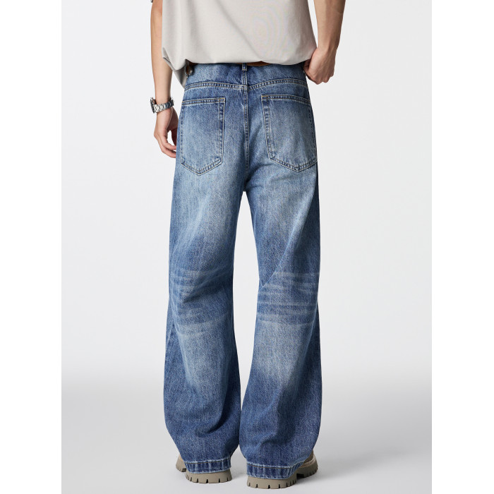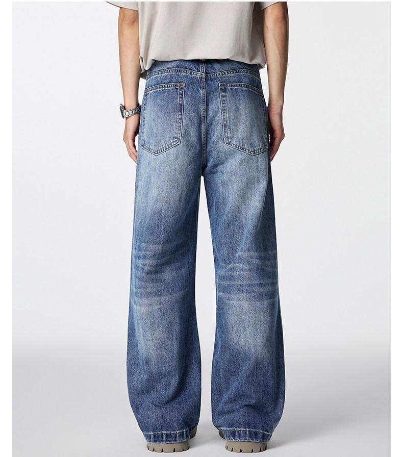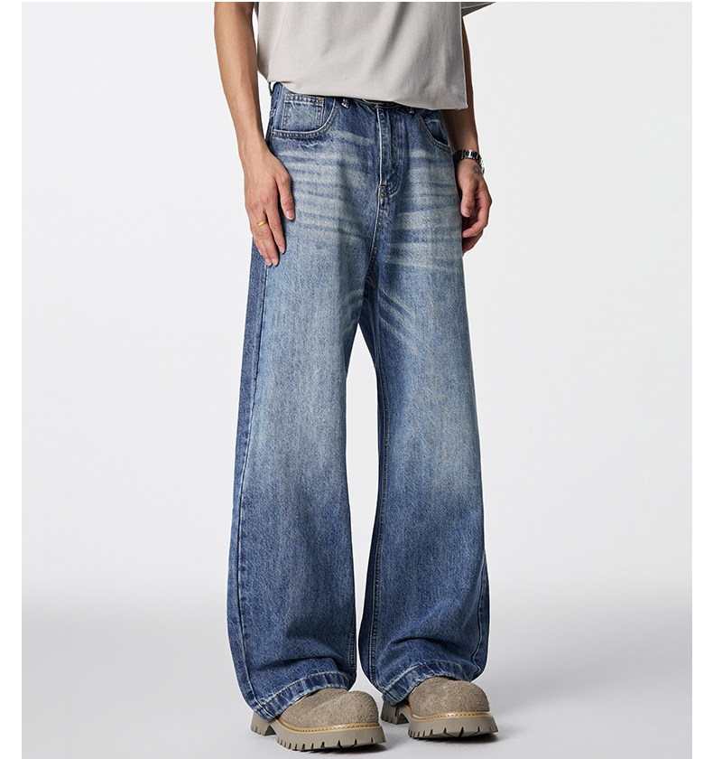 GTRG美式街頭復古水洗做舊牛仔褲男寬鬆12.8盎司A字大直筒長褲