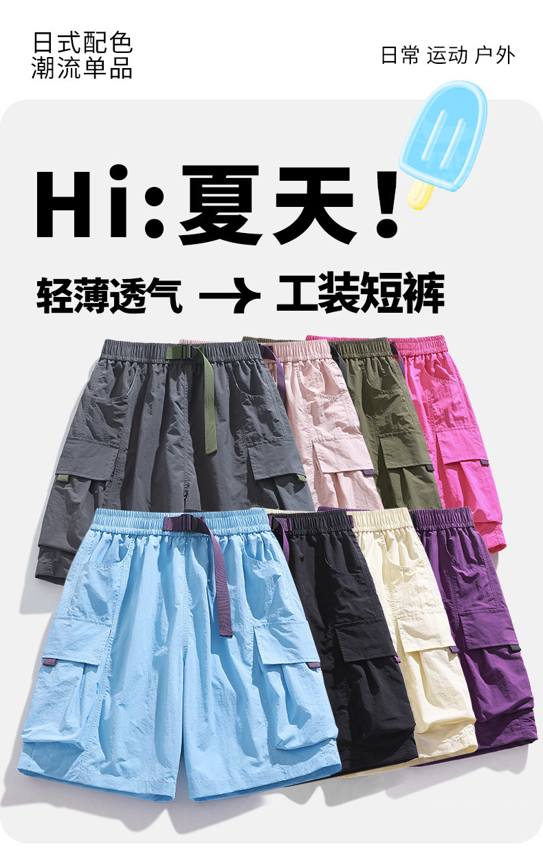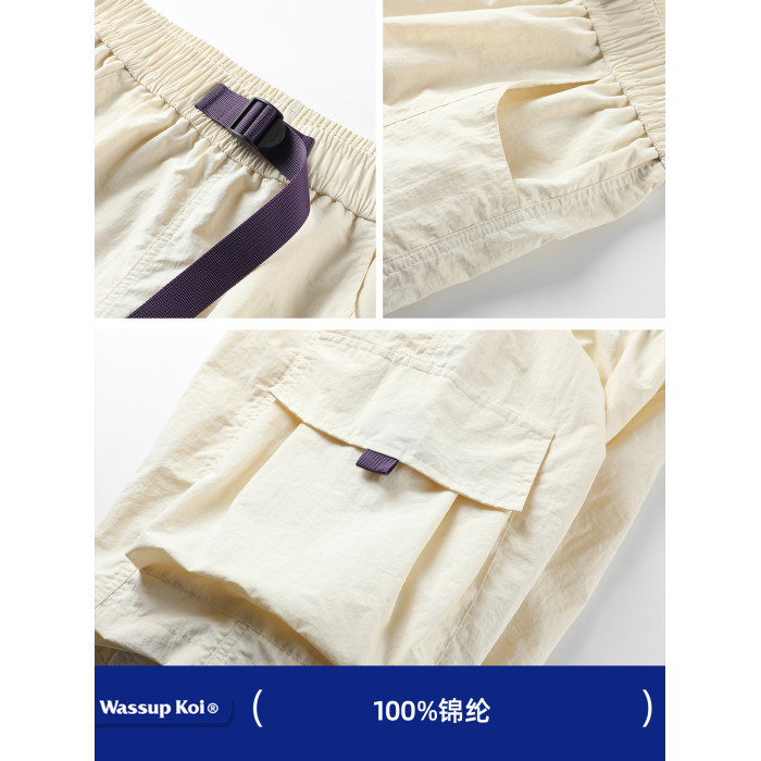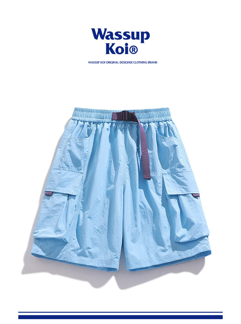 WASSUP KOI聯名冰絲工裝短褲男夏季多巴胺沙灘短褲薄款休閒五分褲