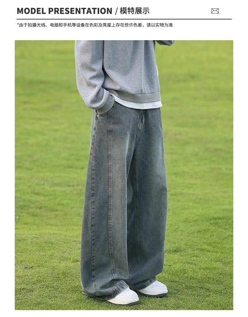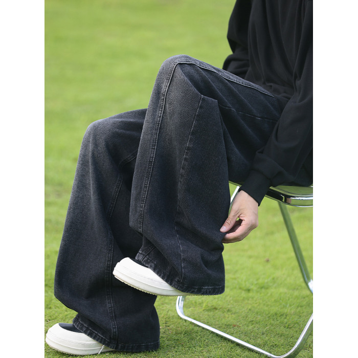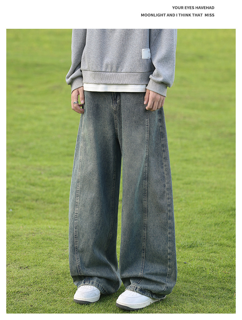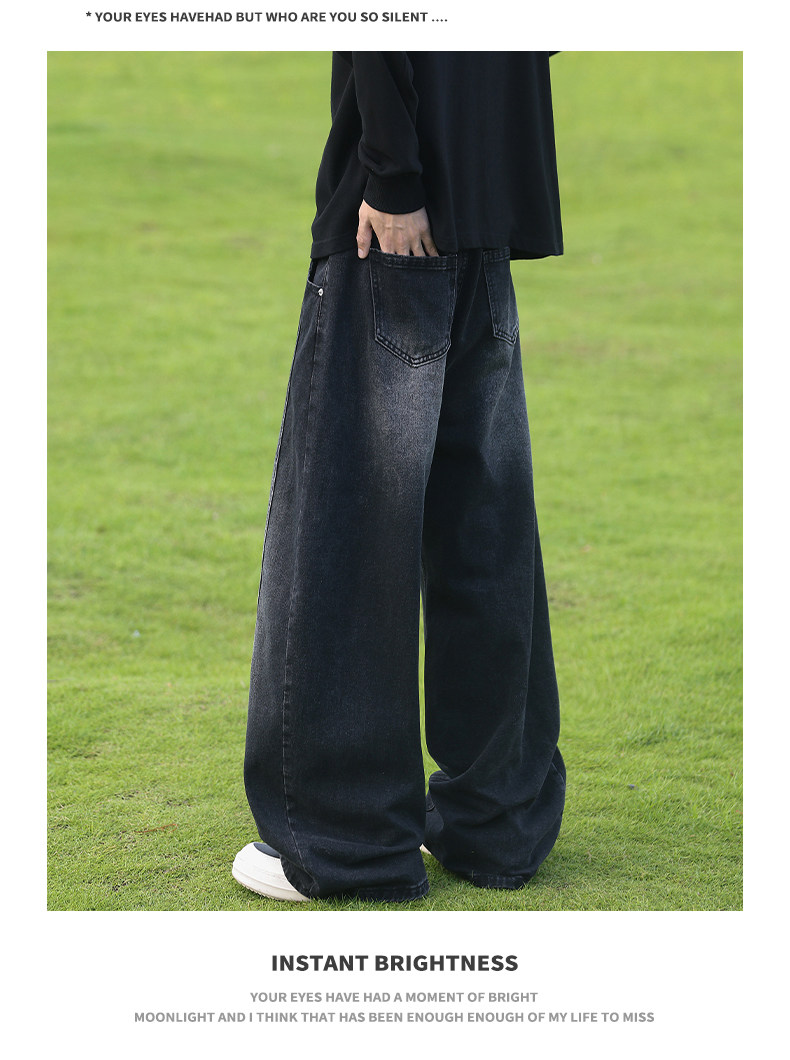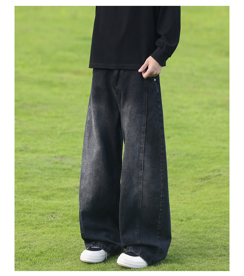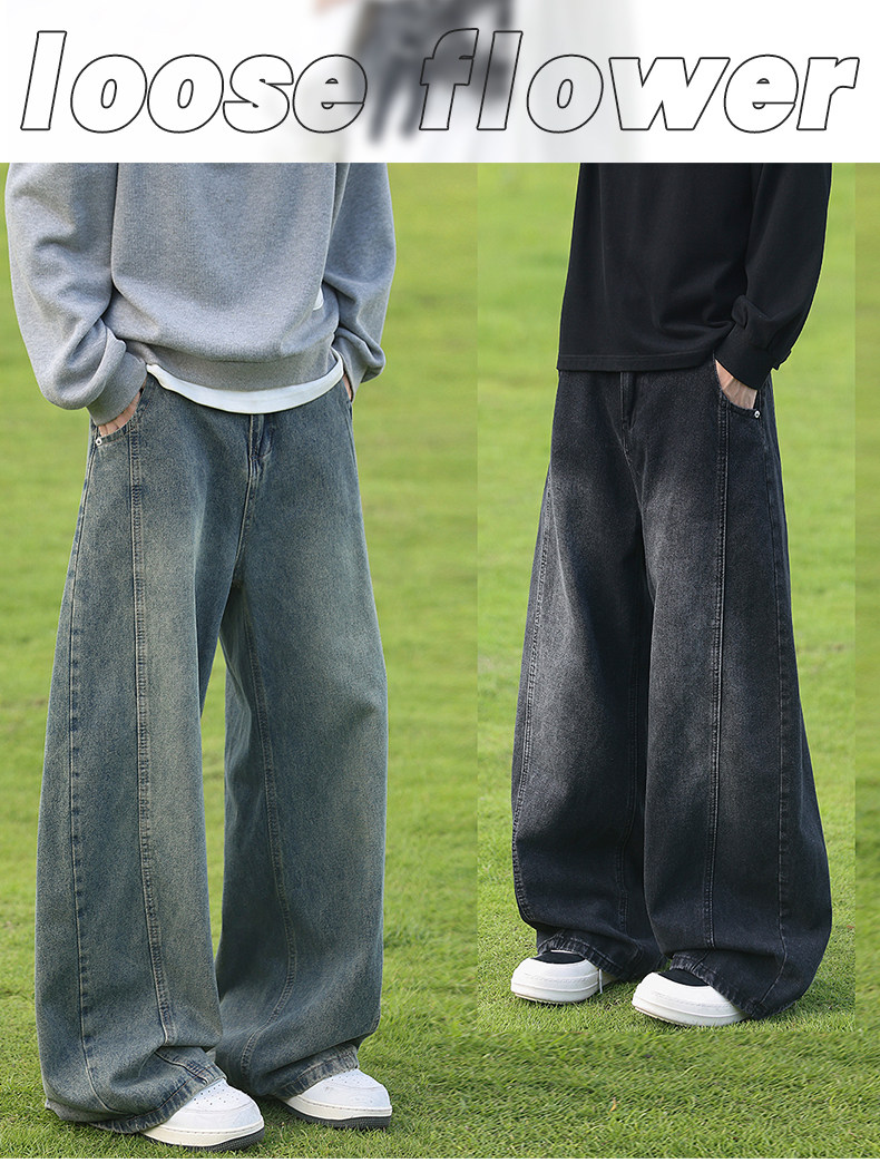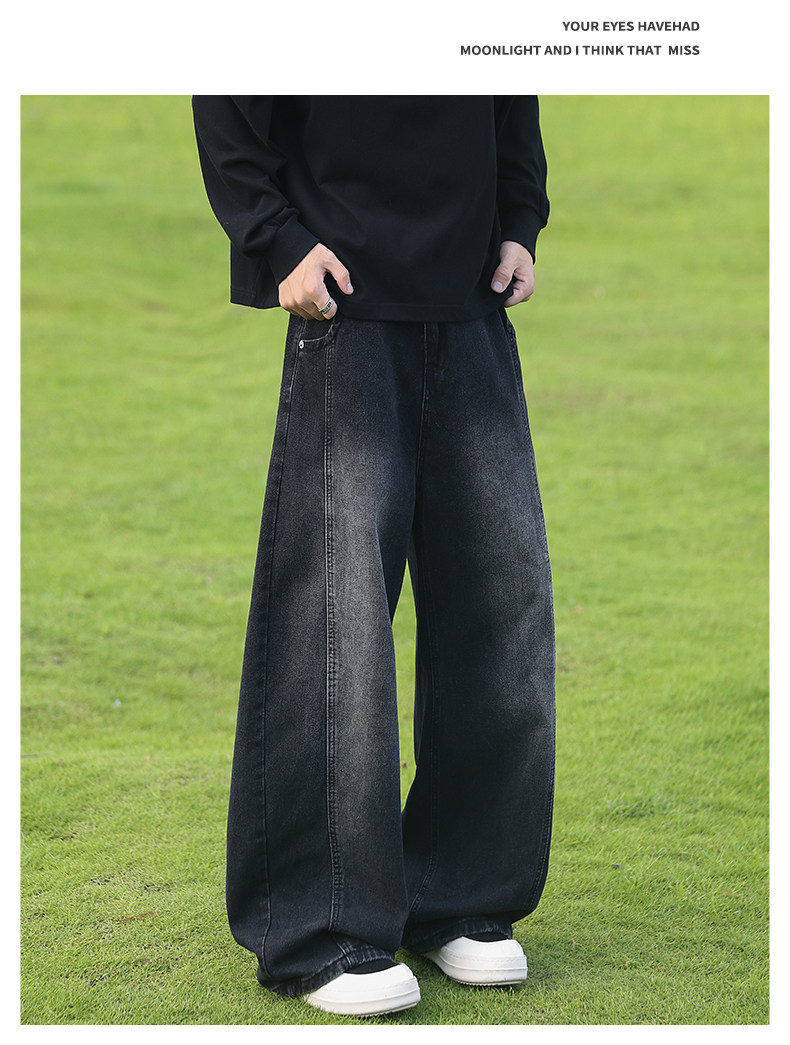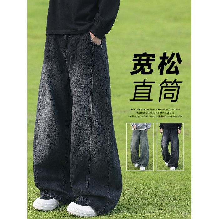 美式高街牛仔褲男秋冬季新款潮牌寬鬆直筒褲男生百搭濶腿長褲子男