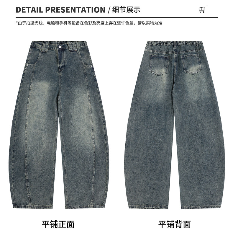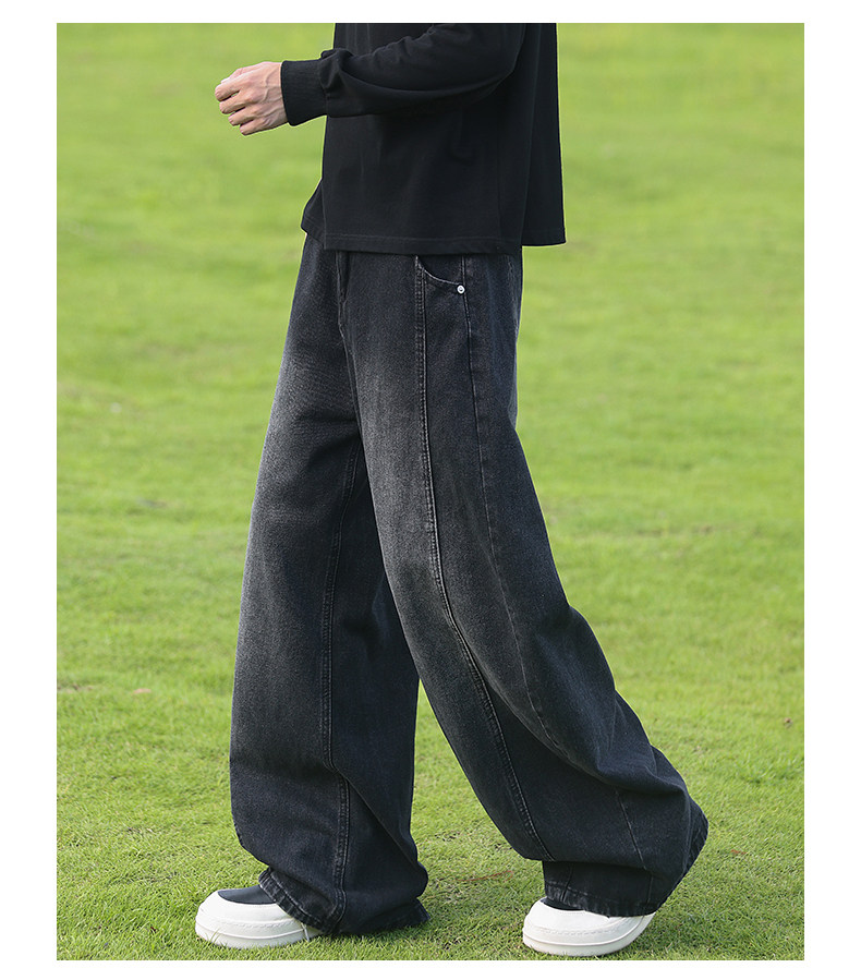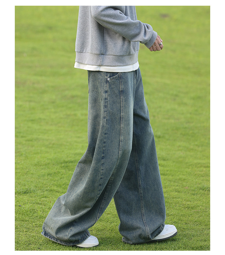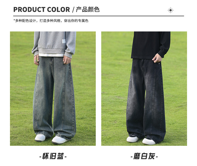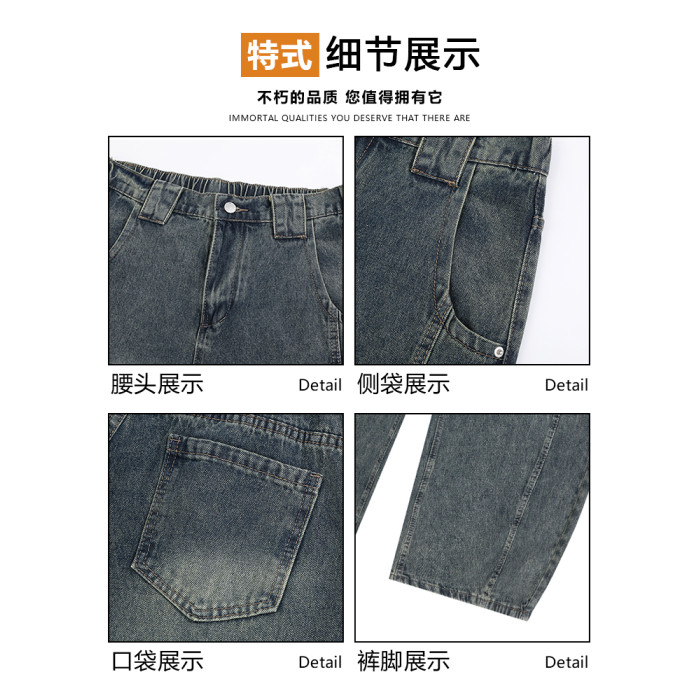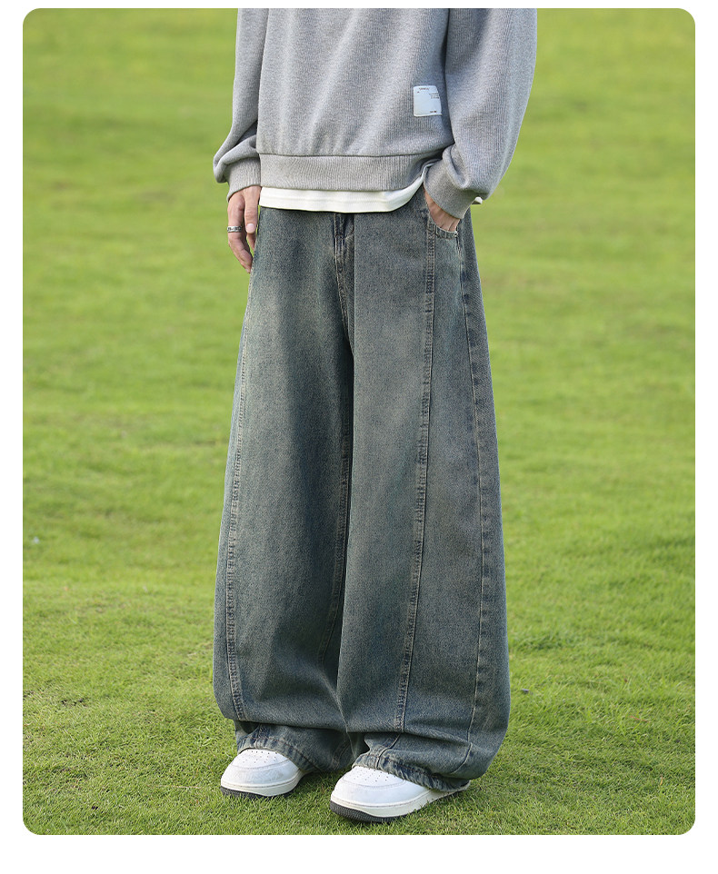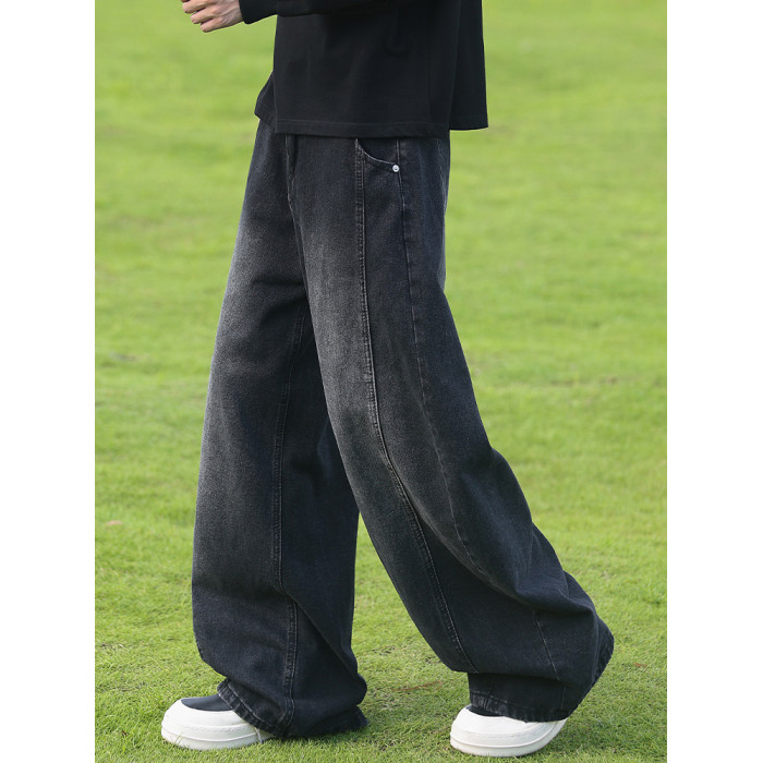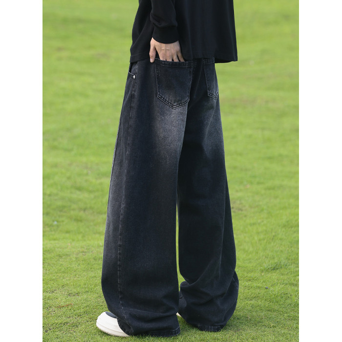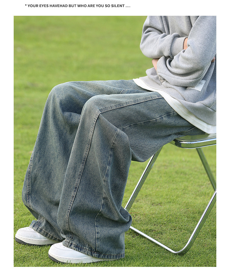 美式高街牛仔褲男秋冬季新款潮牌寬鬆直筒褲男生百搭濶腿長褲子男