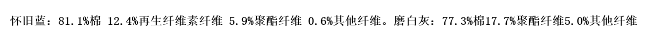 | 材質成分 | 棉77.3% 聚酯纖維17.7% 其他材質5% |