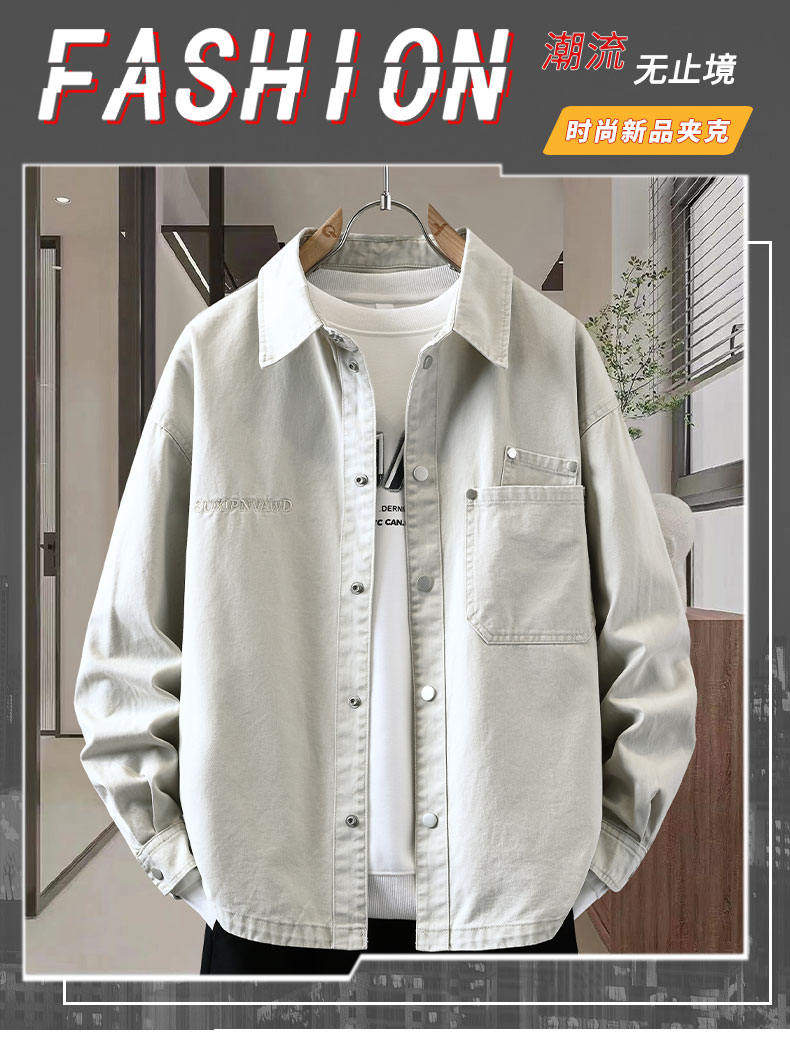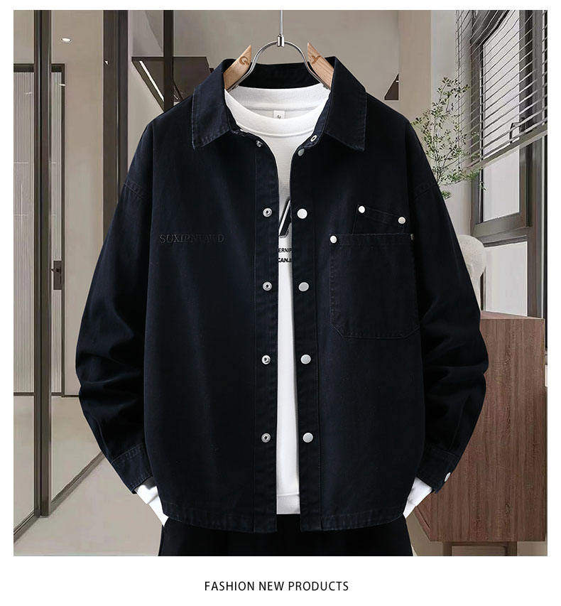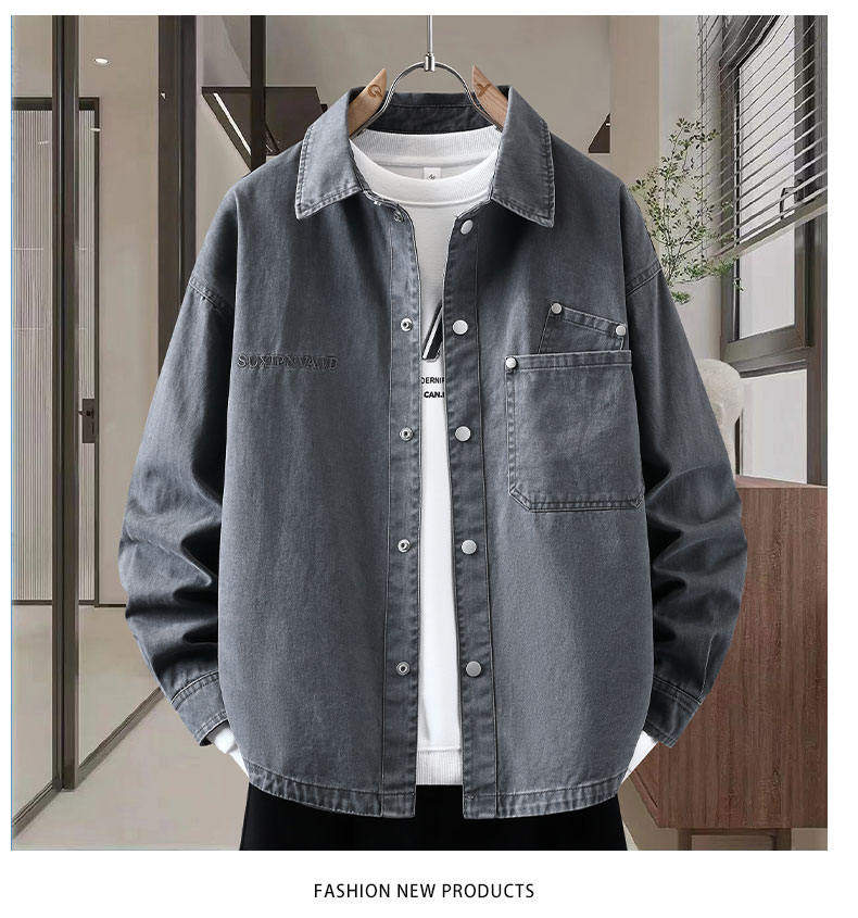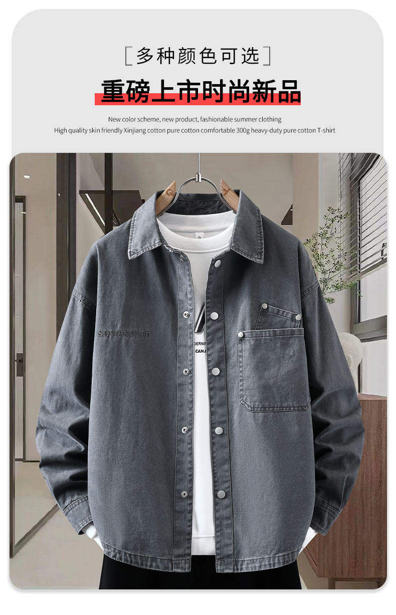 純棉牛仔外套男春秋季2025新款美式復古襯衫式夾克痞帥寬鬆上衣服
