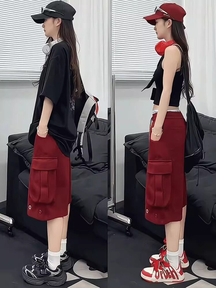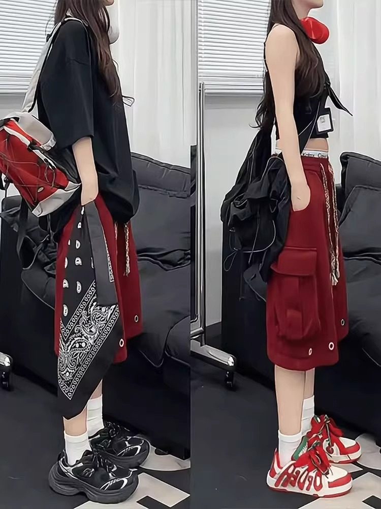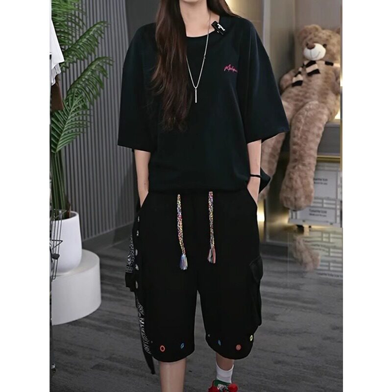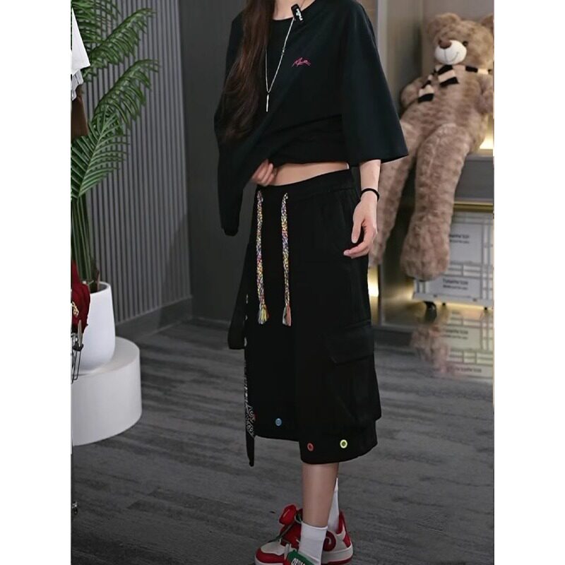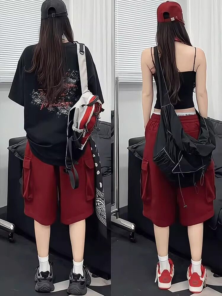 彩色編織抽繩工裝短褲男女款夏季薄款大口袋直筒休閒六分七分褲子