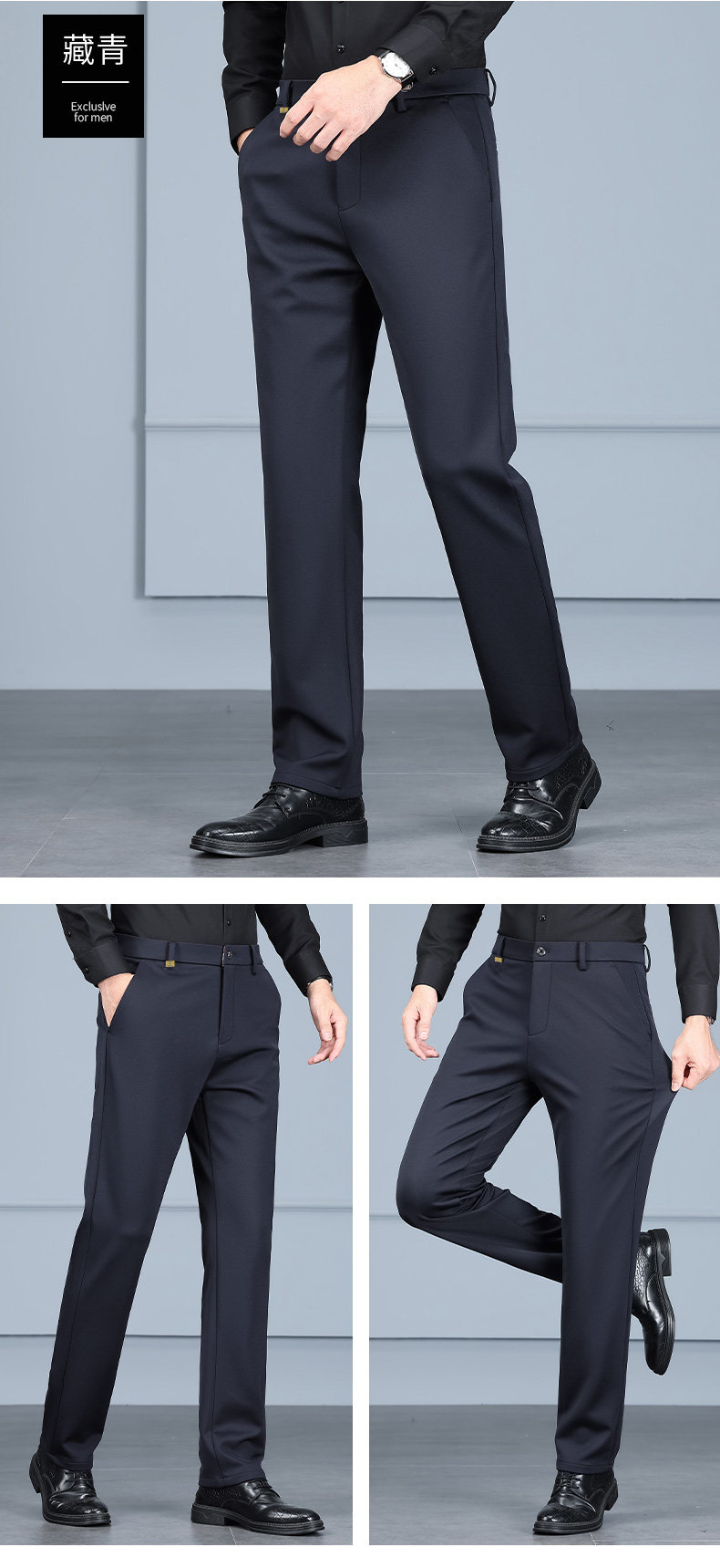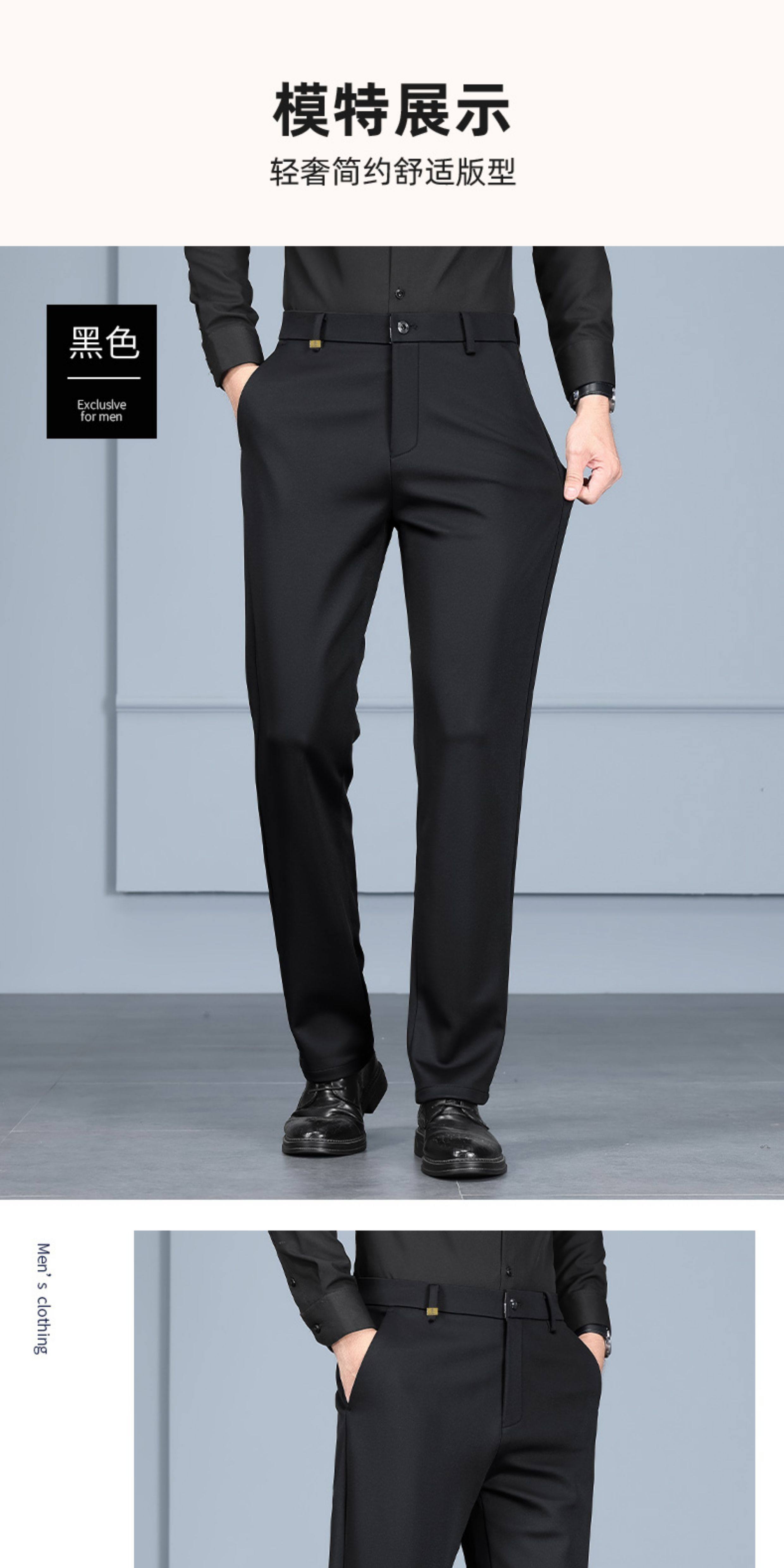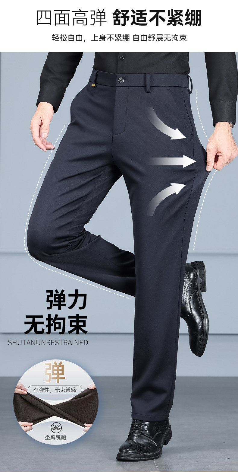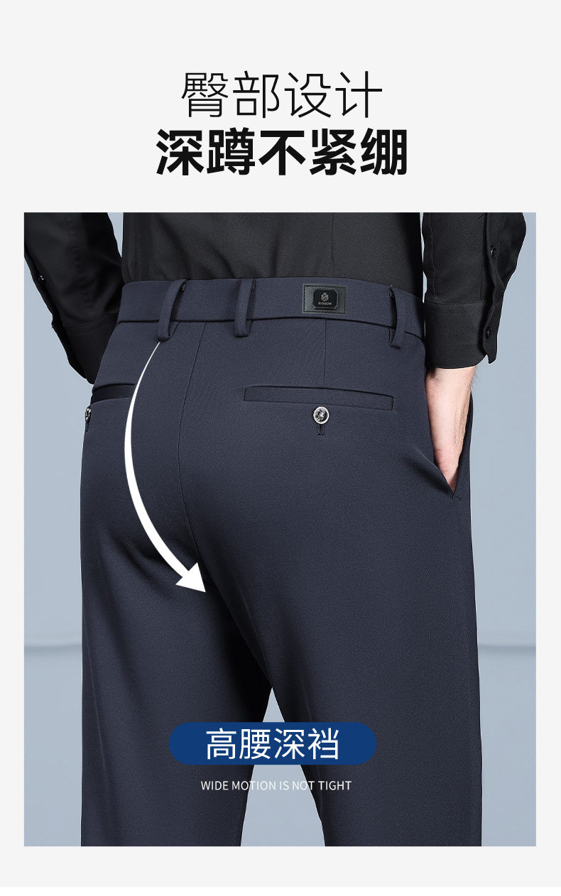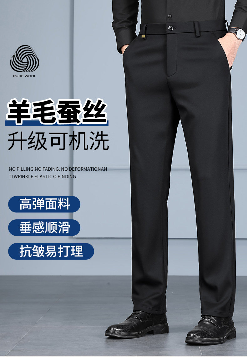 【羊毛+蠶絲】羅矇新款男士休閒褲子春秋冬季厚款直筒彈力西裝褲