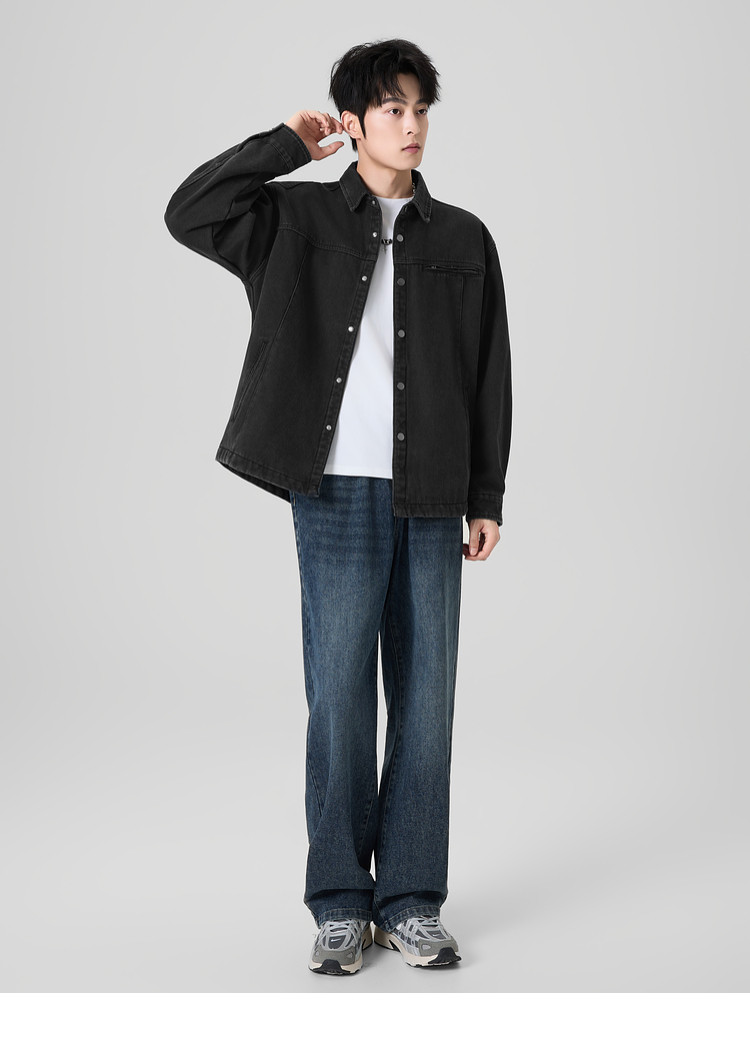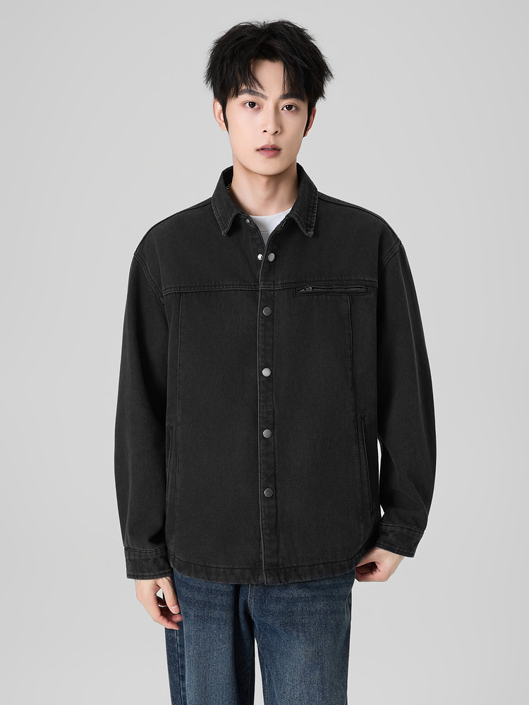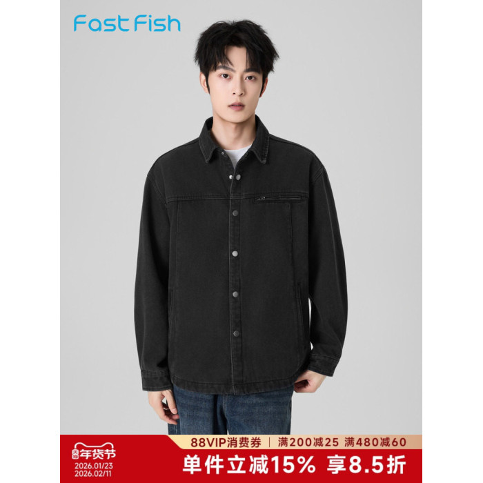 快魚美式復古牛仔外套男2025年冬新款潮流時尚上衣簡約百搭夾克
