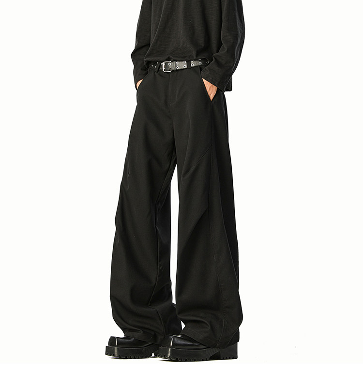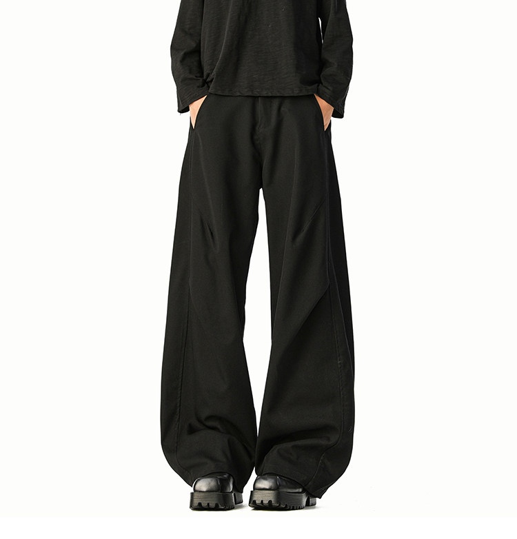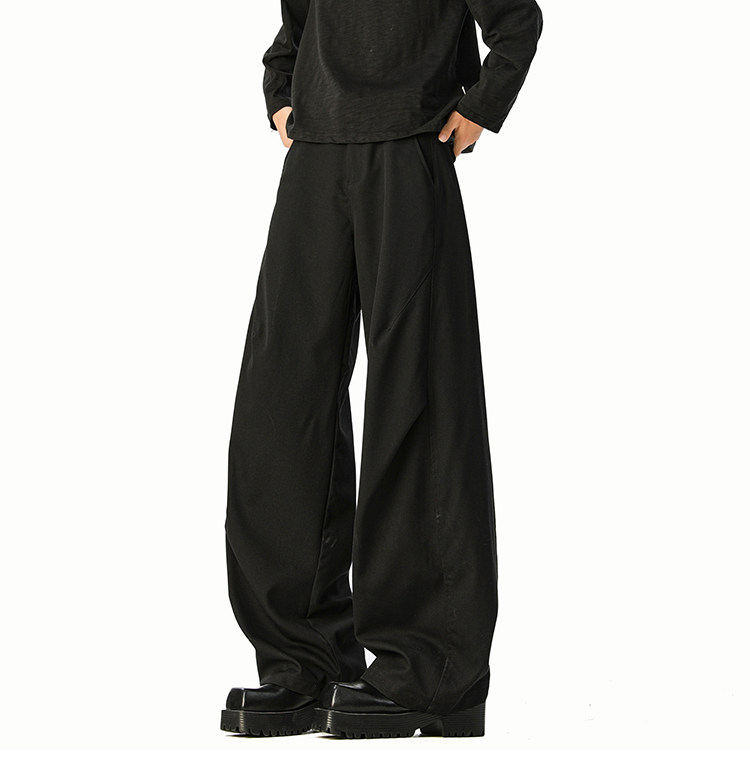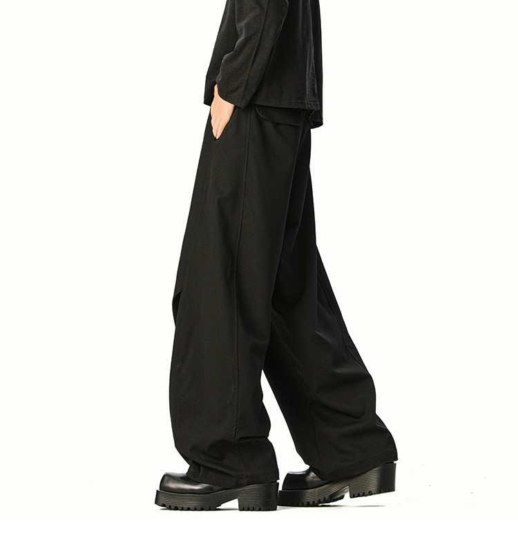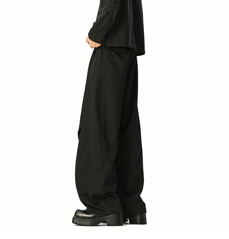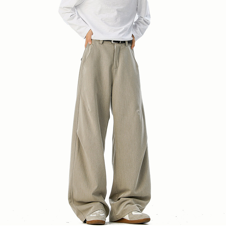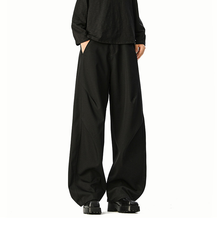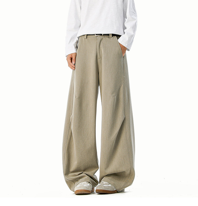 美式cleanfit純色褶皺休閒褲男生春季寬鬆垂感百搭運動濶腿長褲子