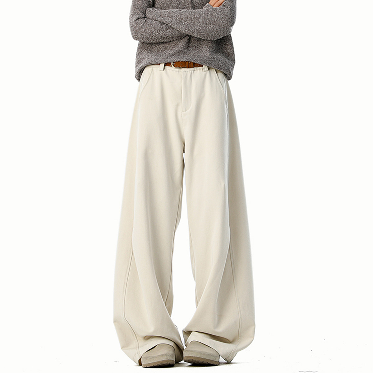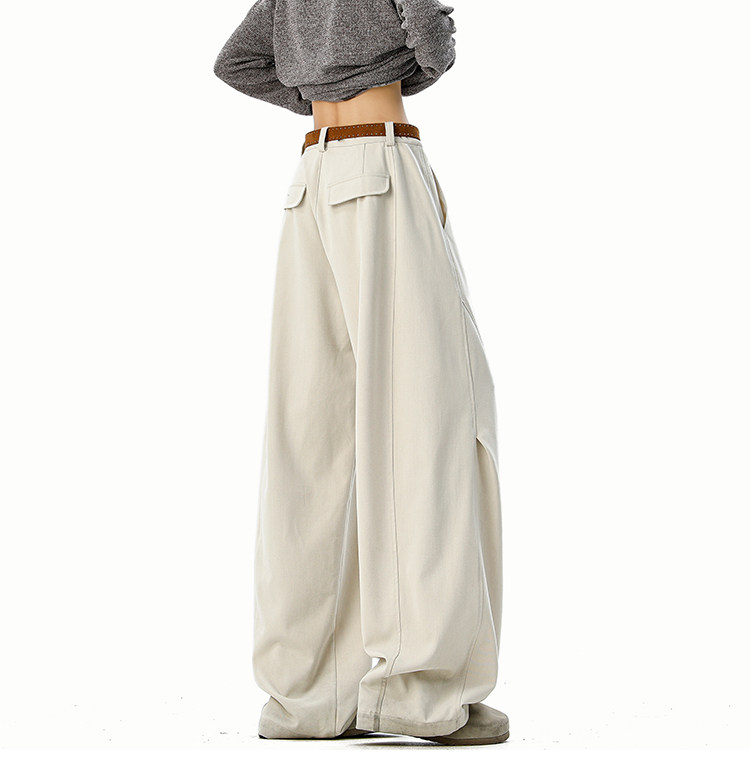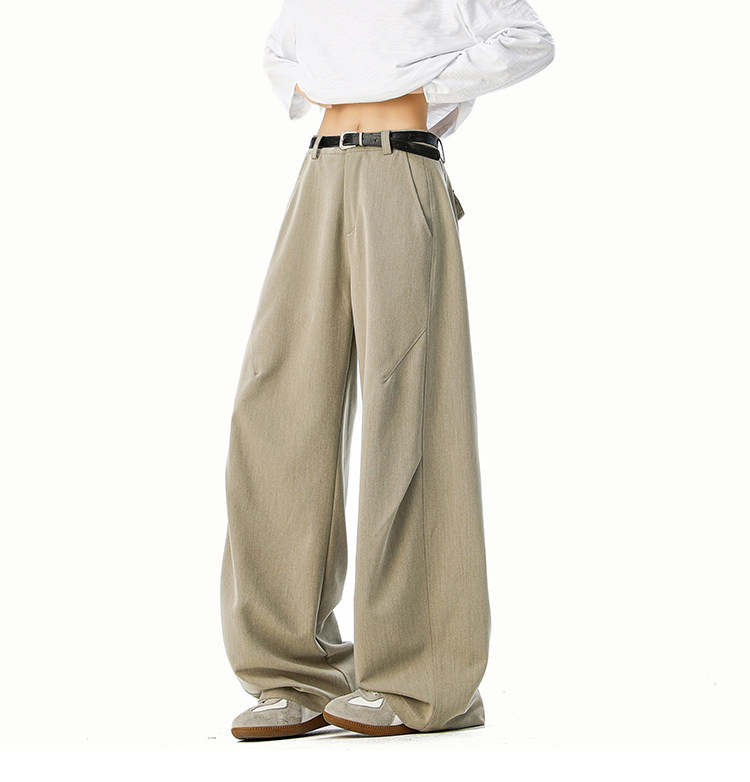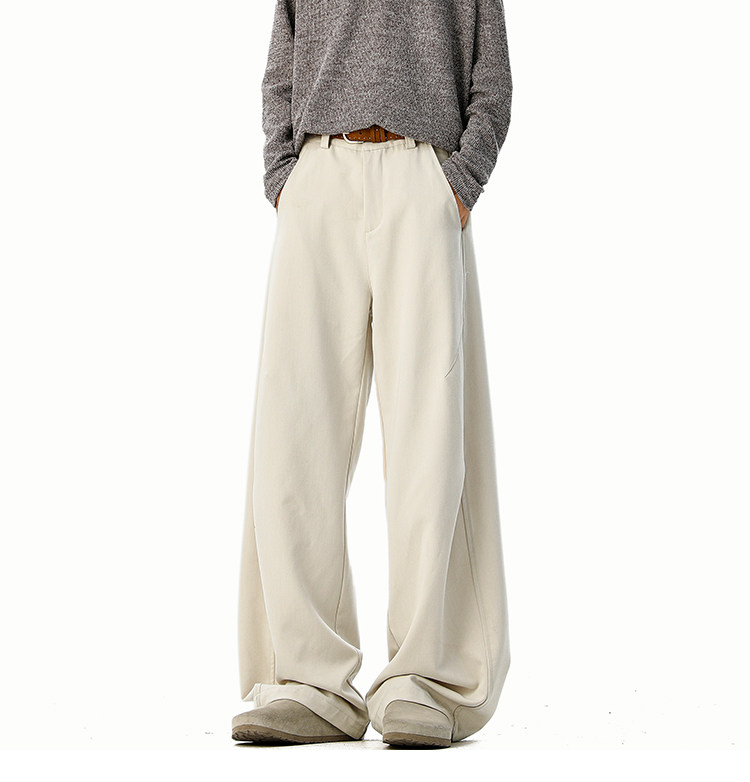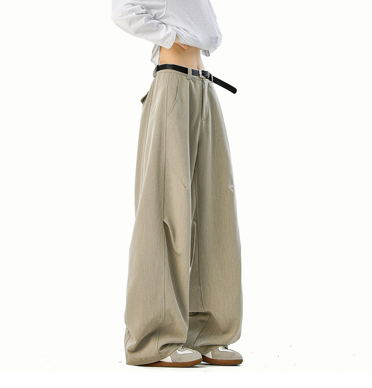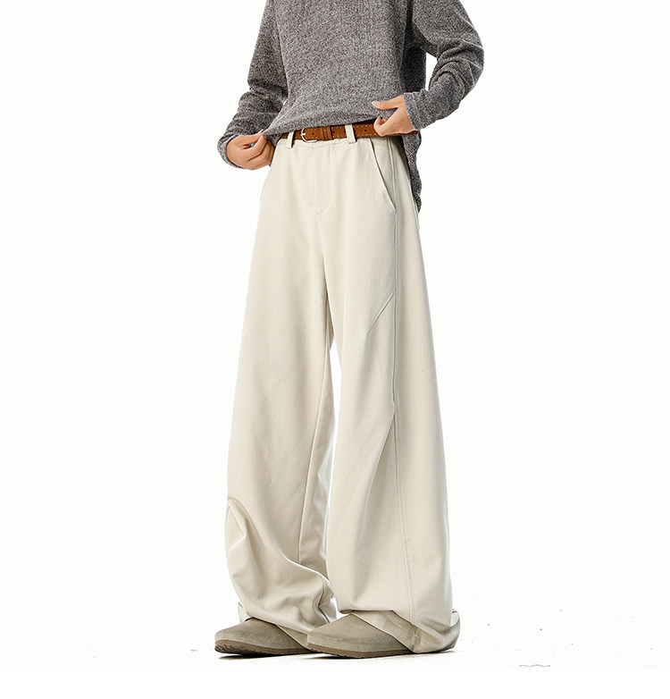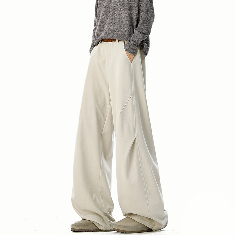 美式cleanfit純色褶皺休閒褲男生春季寬鬆垂感百搭運動濶腿長褲子
