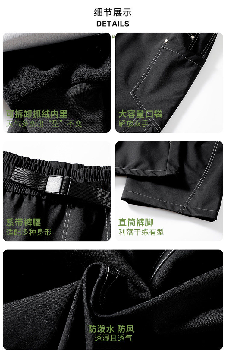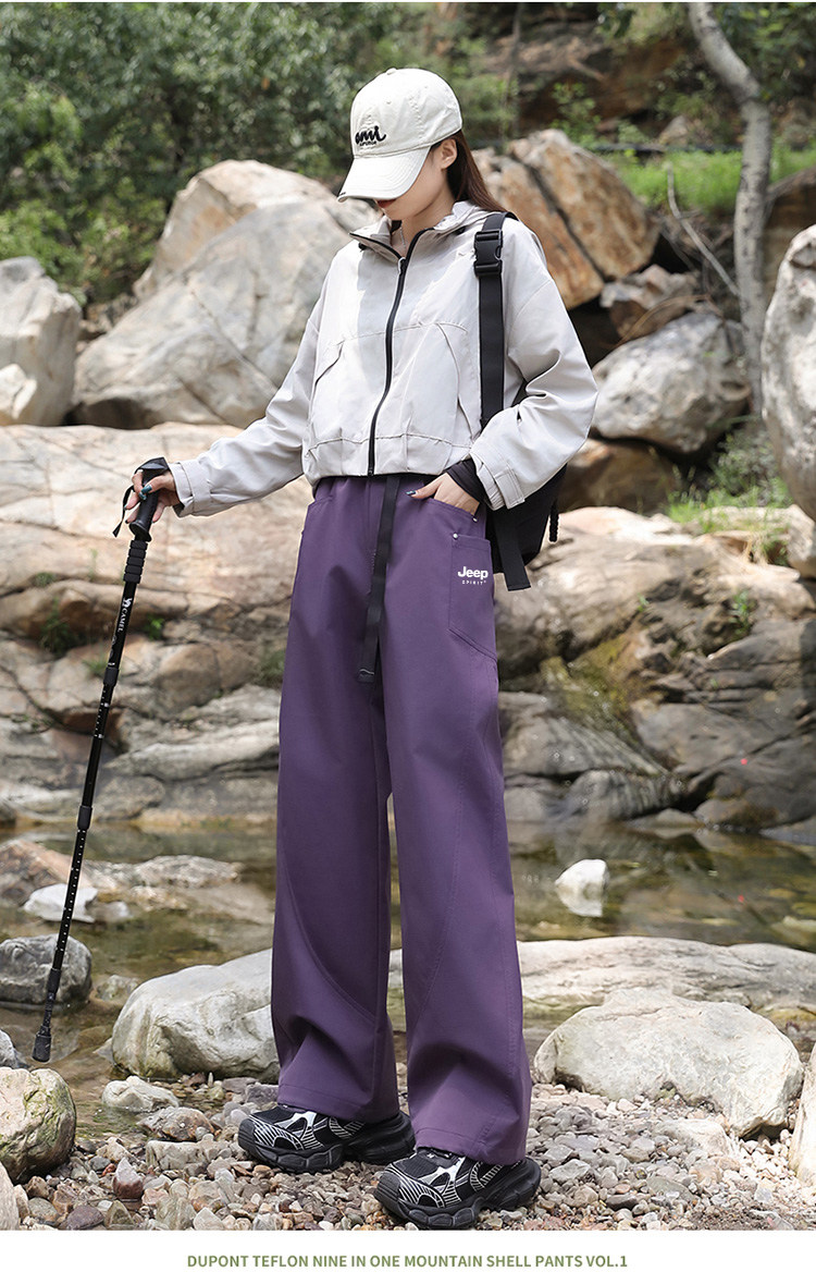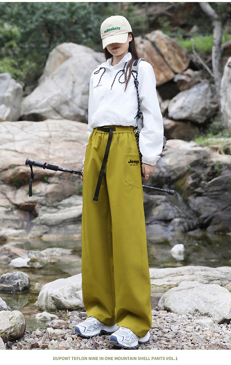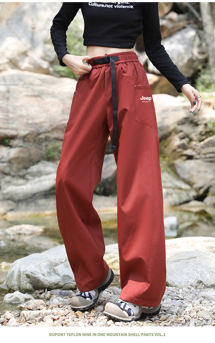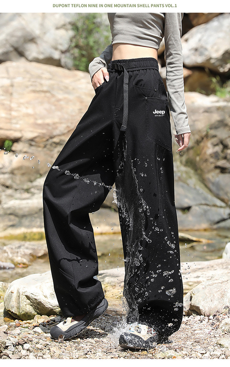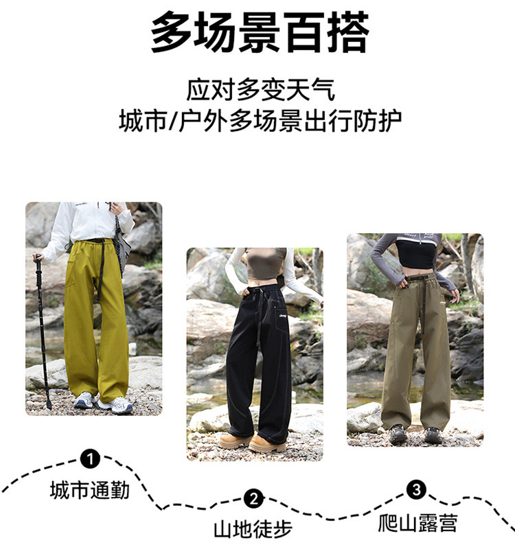 JEEP橙色軟殼沖鋒褲女防水防風三合一戶外登山褲工裝大口袋長褲男
