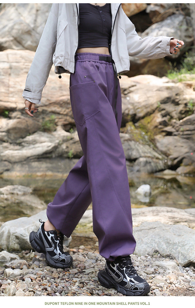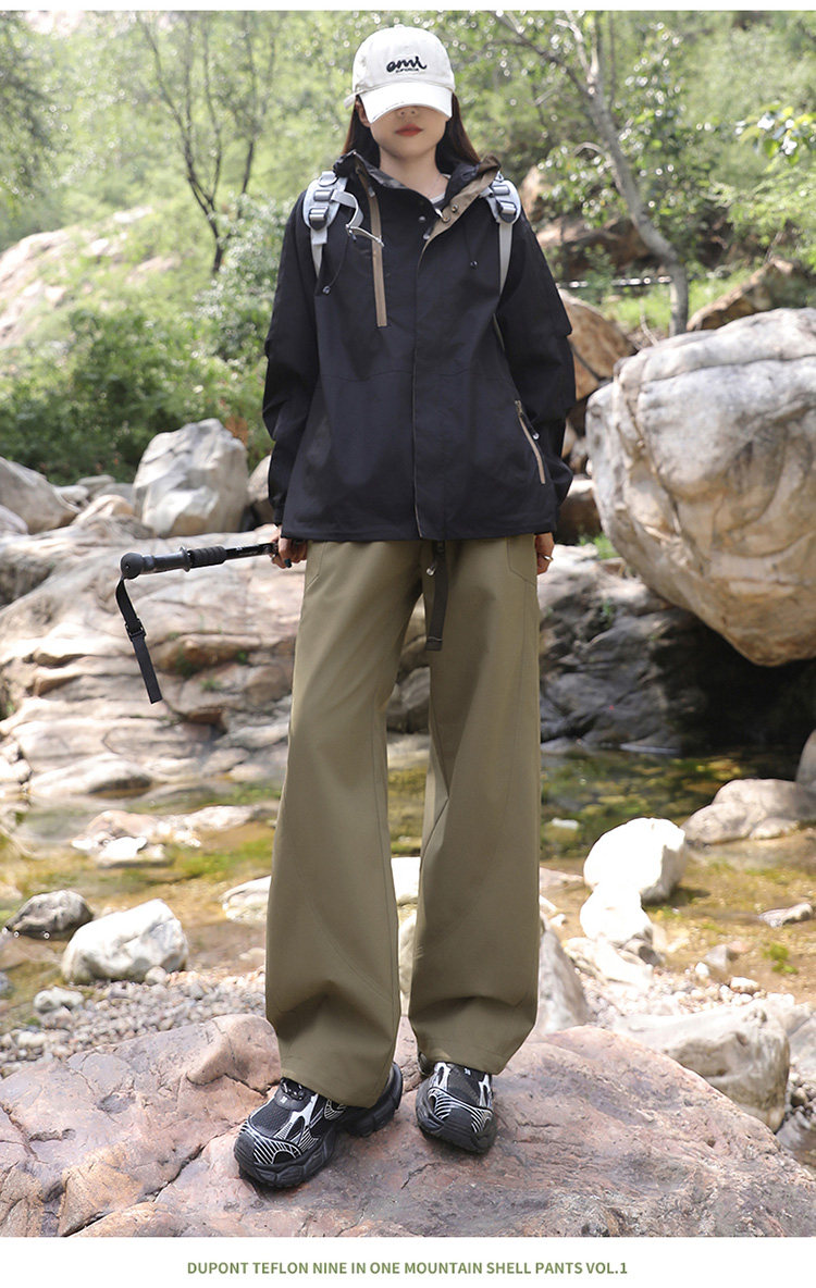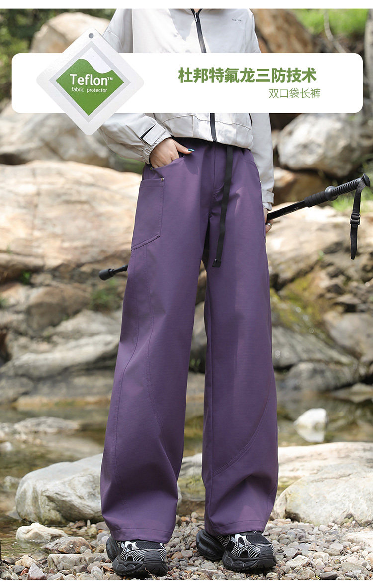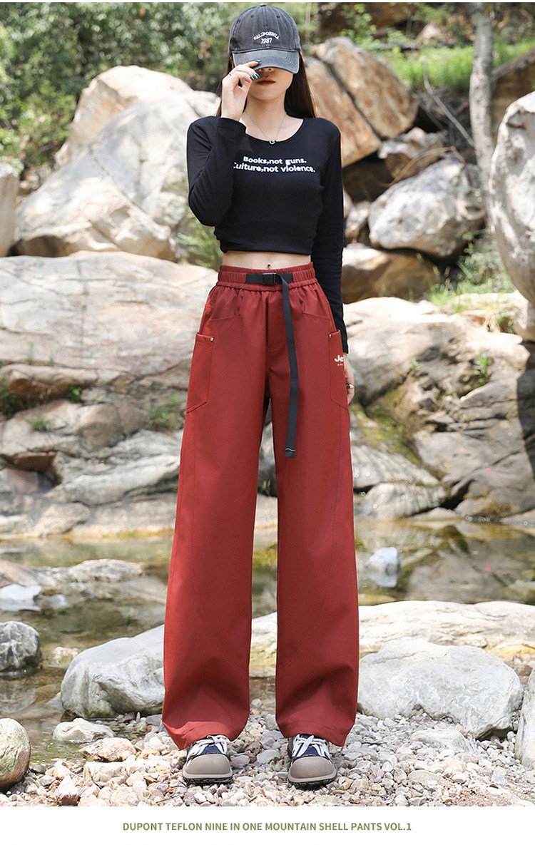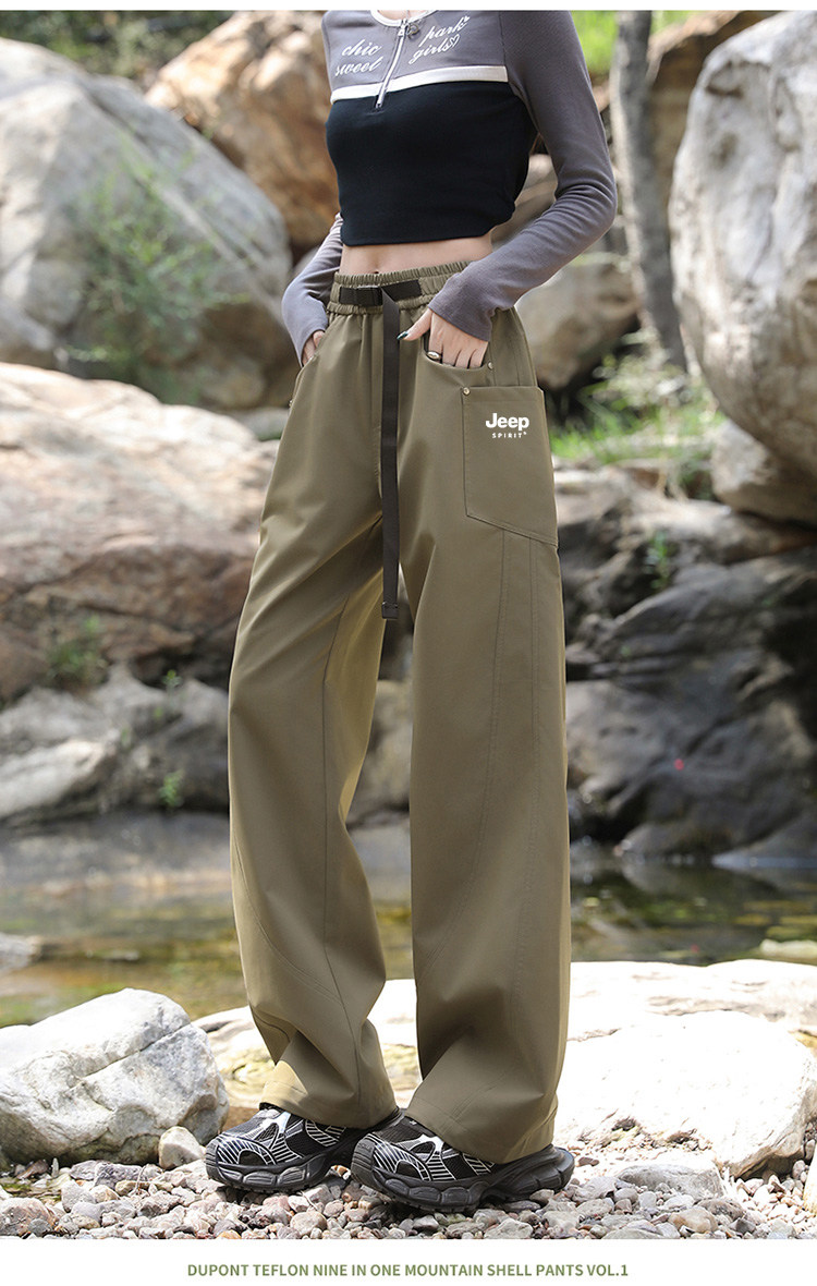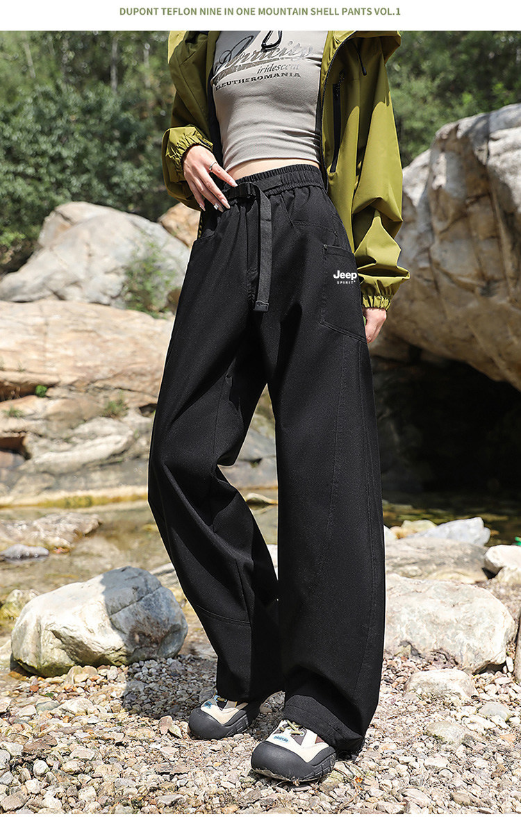 JEEP橙色軟殼沖鋒褲女防水防風三合一戶外登山褲工裝大口袋長褲男