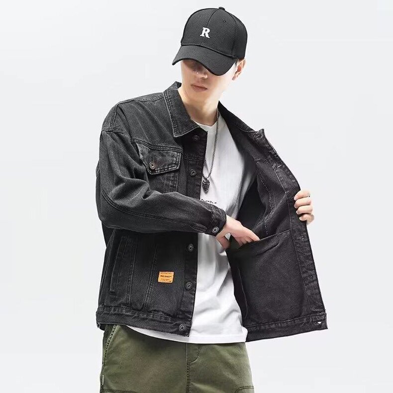 潮流工裝牛仔外套男士秋冬季新款青年百搭痞帥高街寬鬆繙領夾克