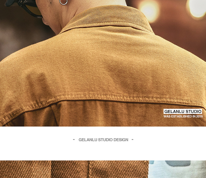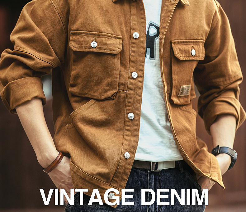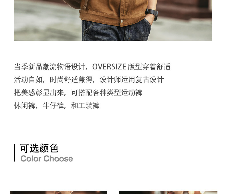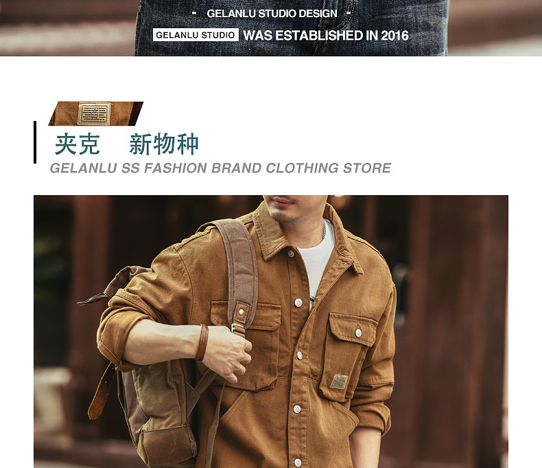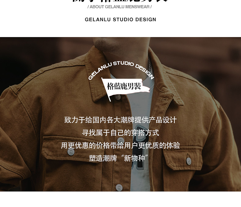 格藍鹿美式重磅復古牛仔外套男士秋季加絨寬鬆硬漢獵裝工裝夾克男