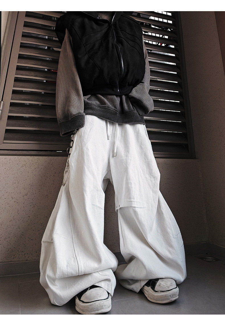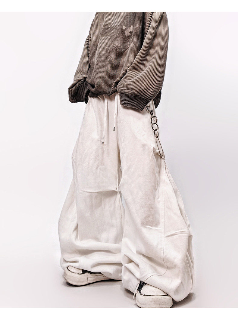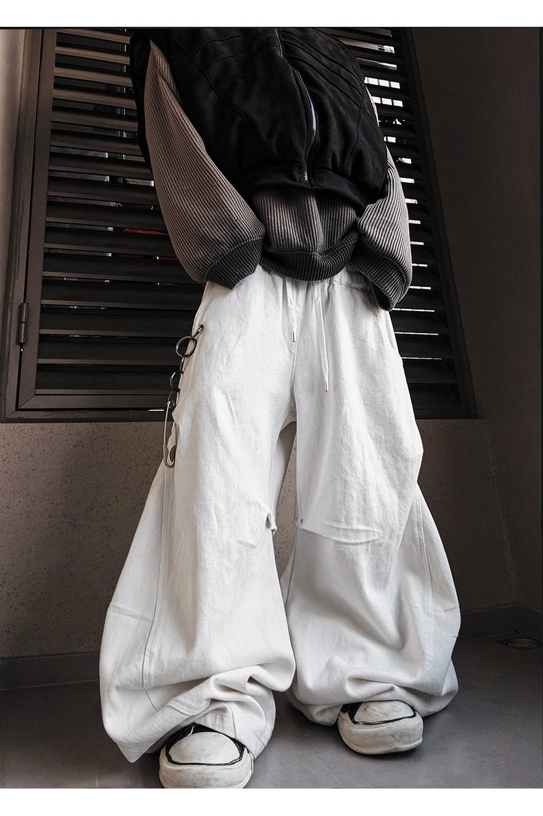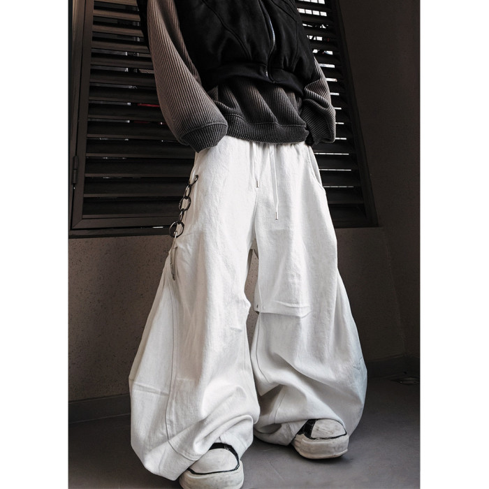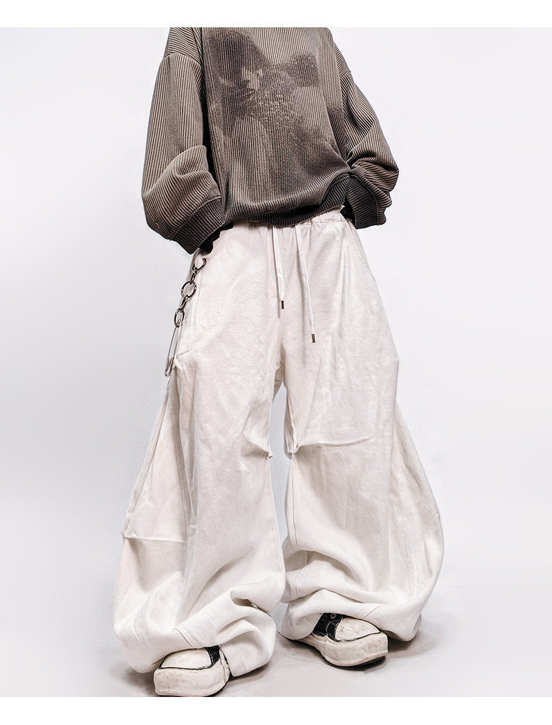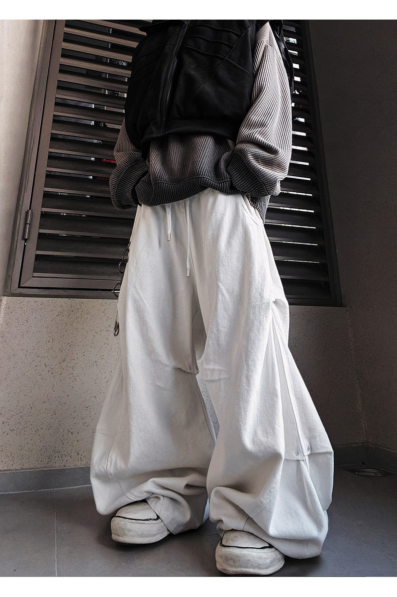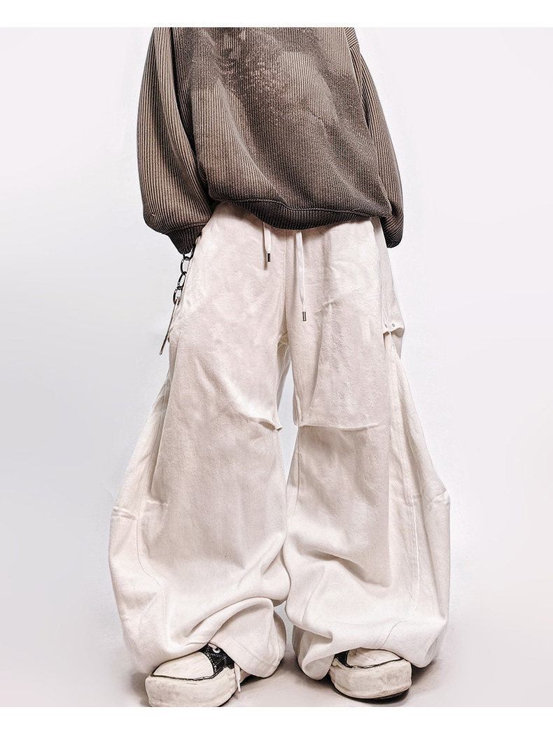 UUCSCC嘻哈美式復古濶腿微喇叭拖地褲潮牌vintage褶皺彎刀牛仔褲