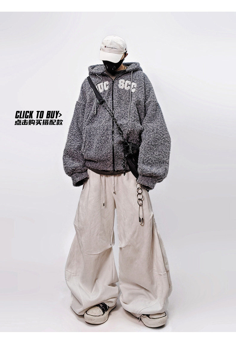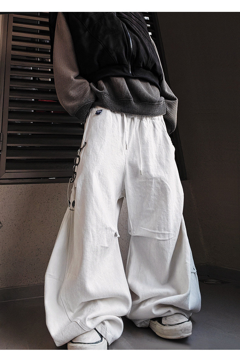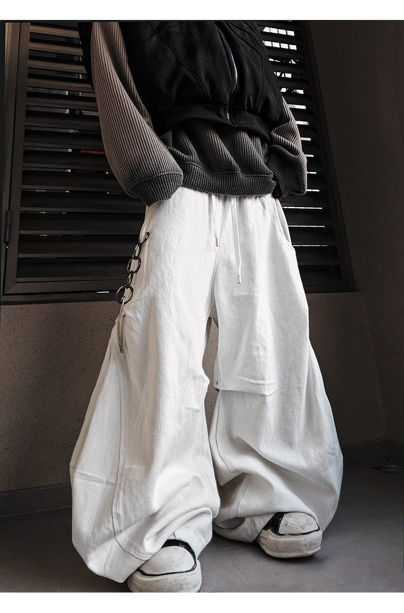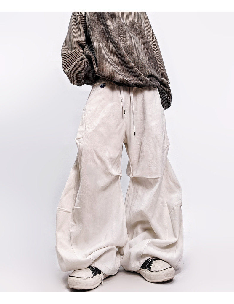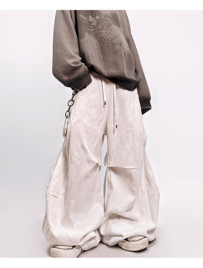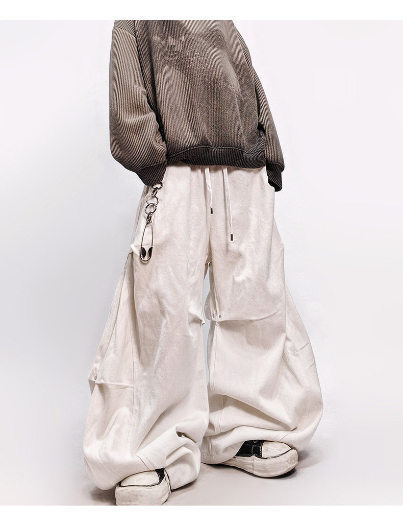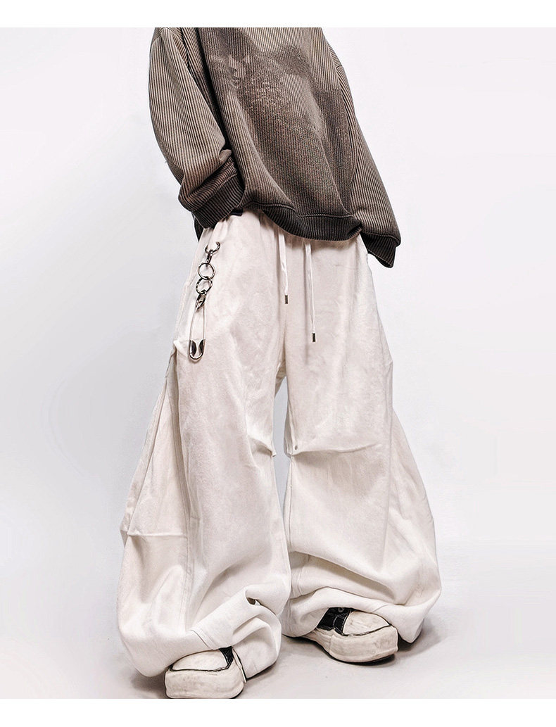UUCSCC嘻哈美式復古濶腿微喇叭拖地褲潮牌vintage褶皺彎刀牛仔褲