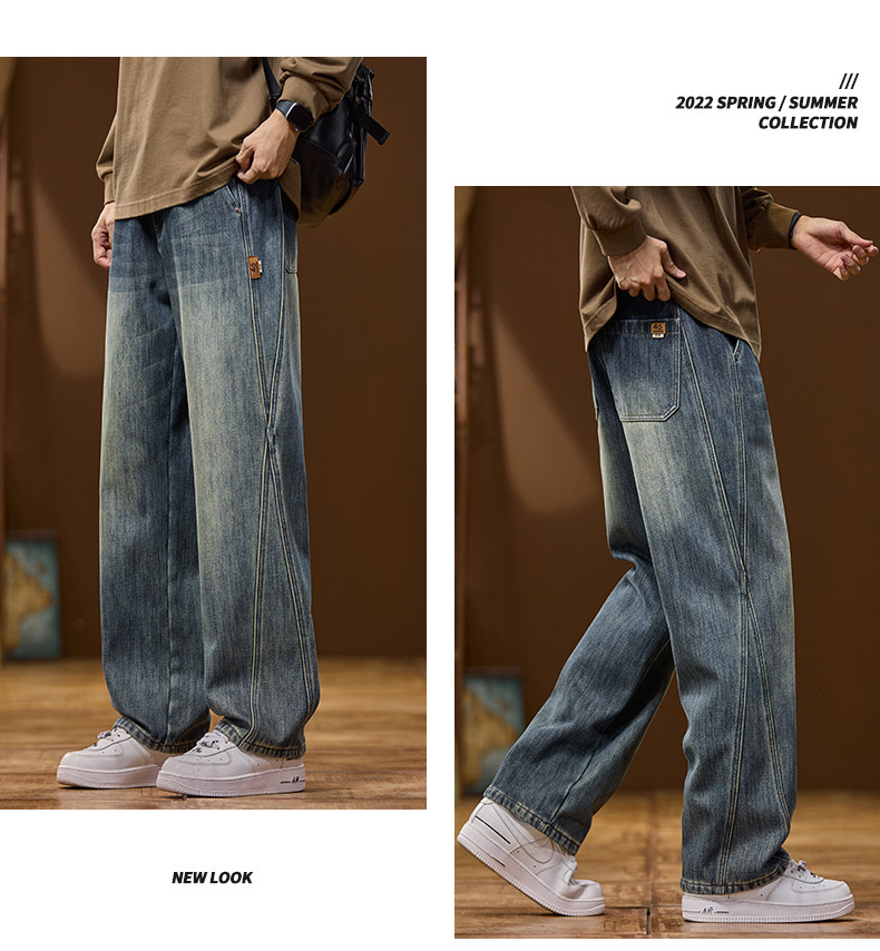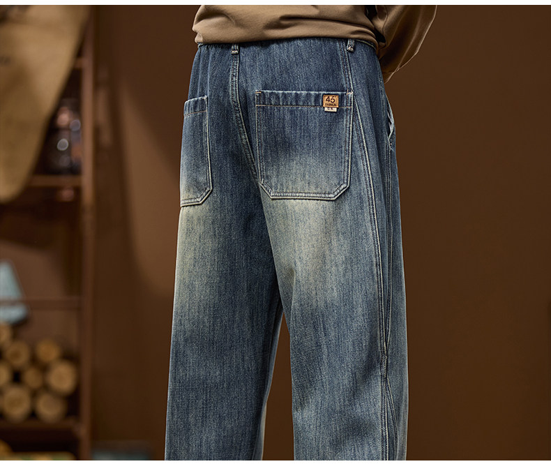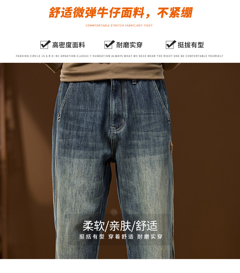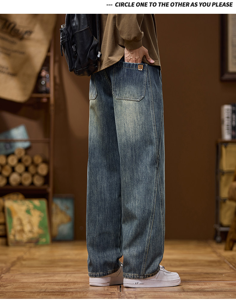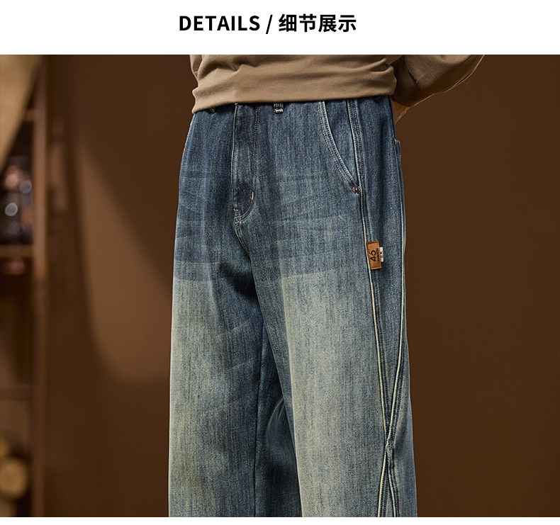 加絨加厚牛仔褲男士潮牌2025秋冬新款美式寬鬆直筒休閒濶腿長褲子