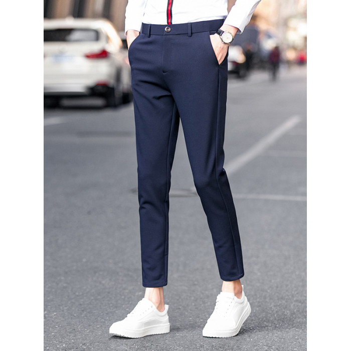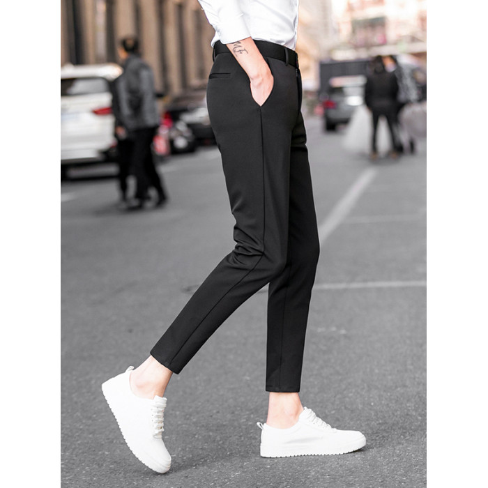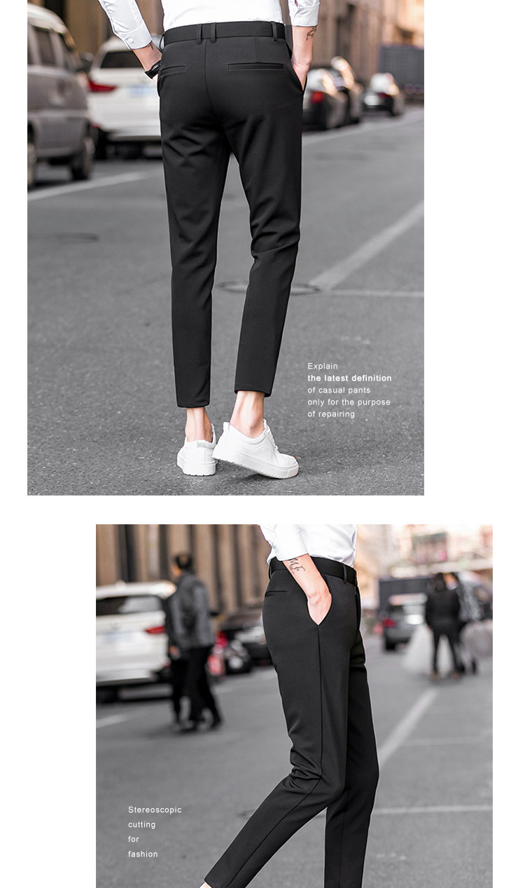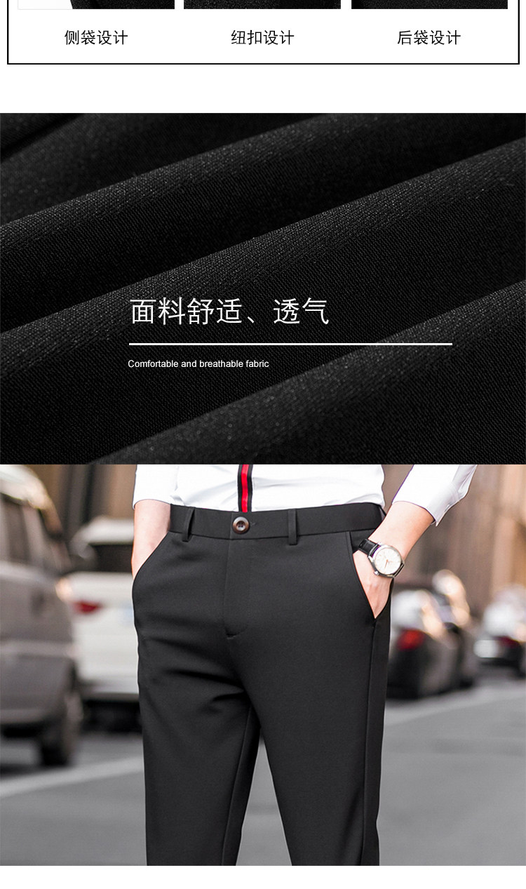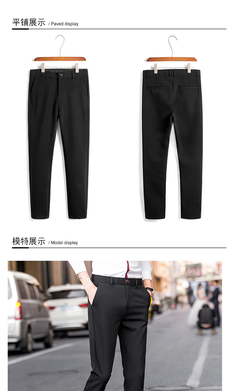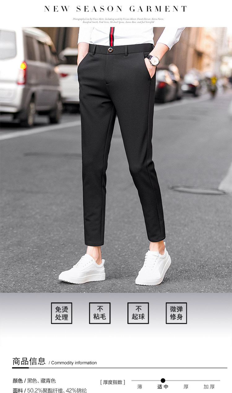 秋冬加絨九分褲子男彈力修身小腳伴郎西裝褲男士休閒長褲商務百搭