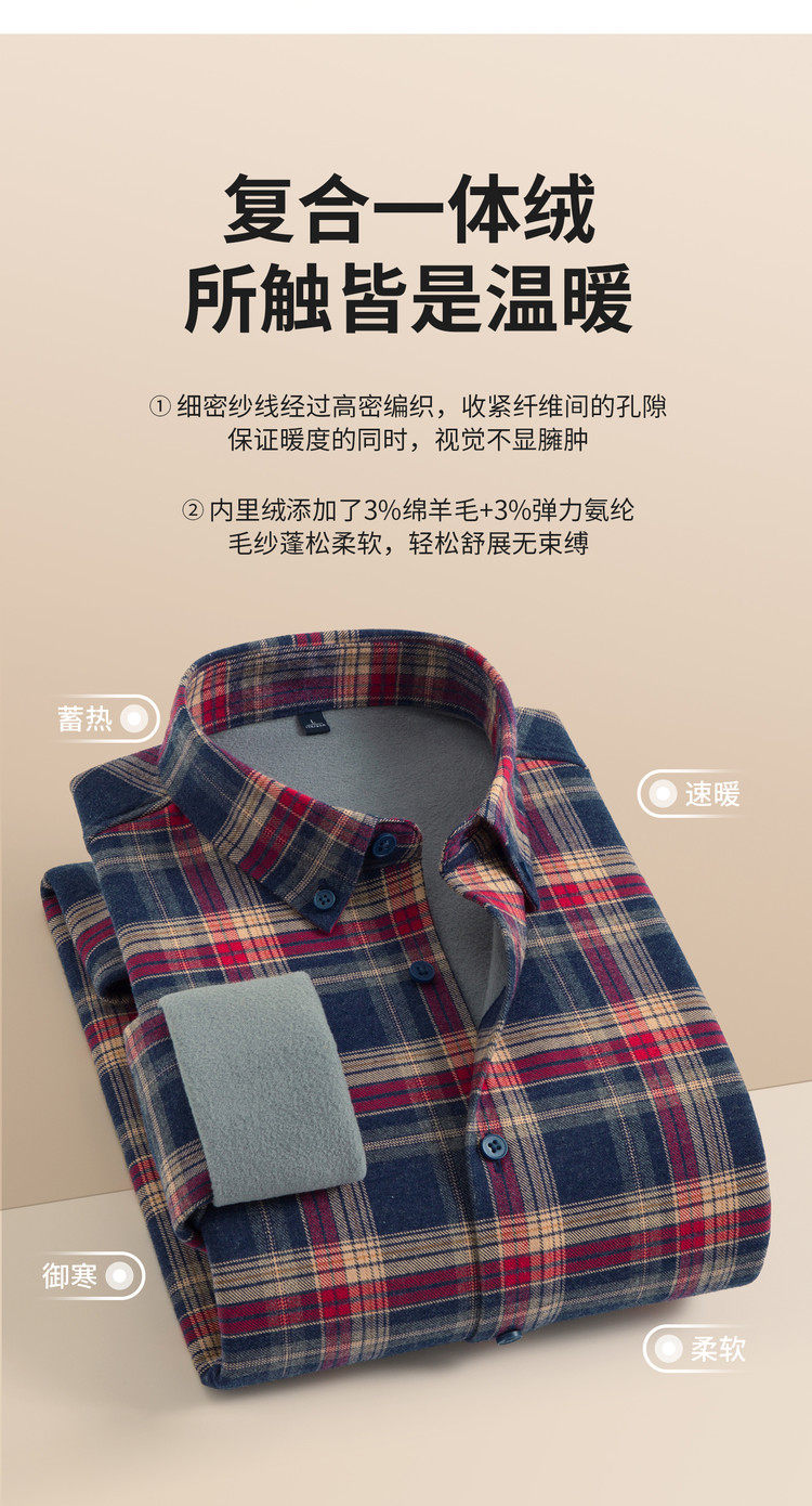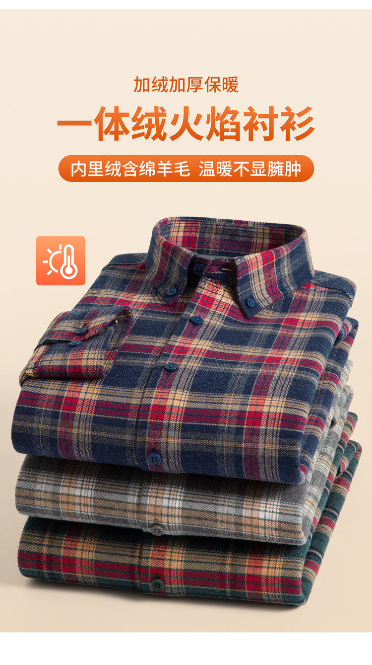 爸爸裝秋冬季新款襯衫中年男士長袖保暖襯衣磨毛外套加絨男裝上衣