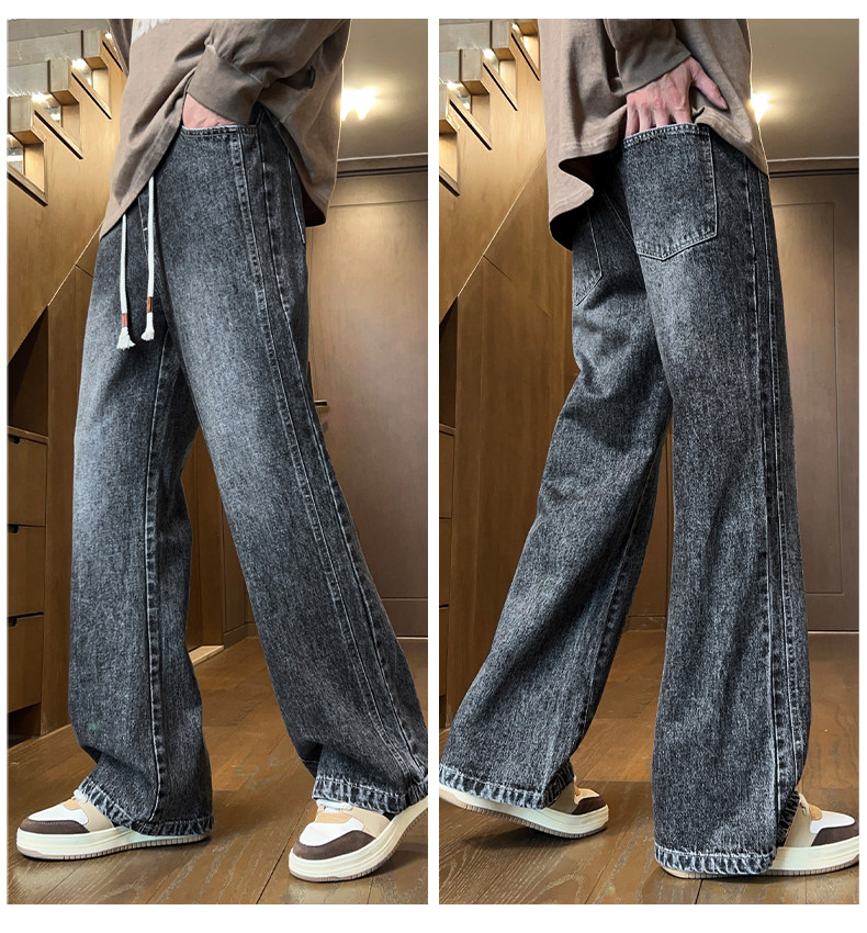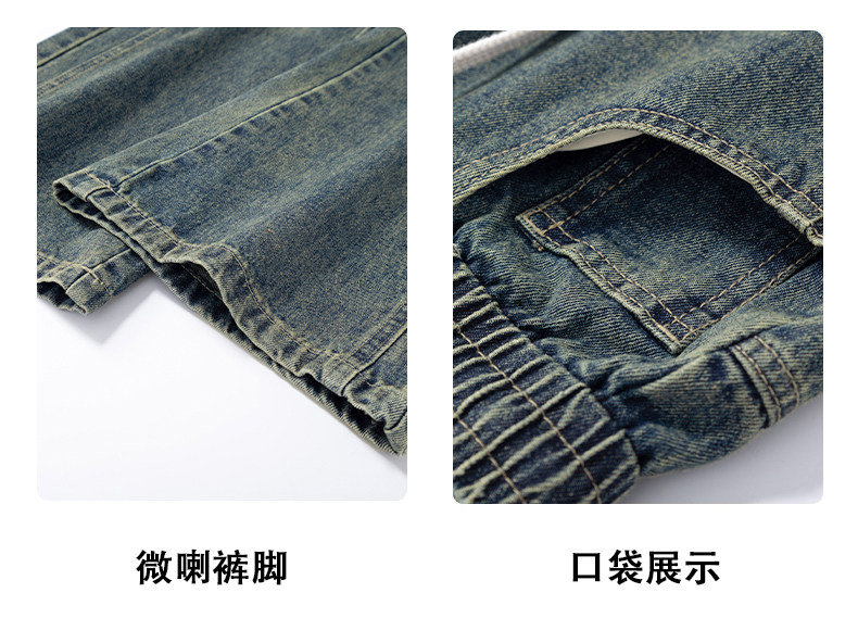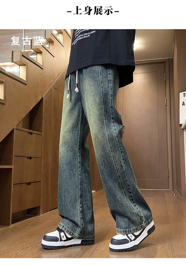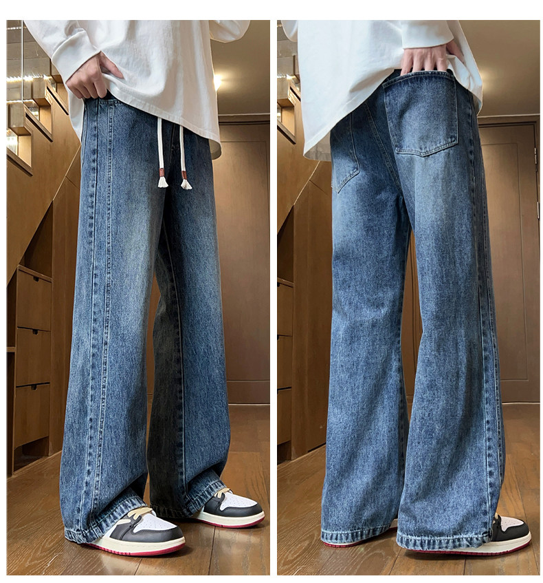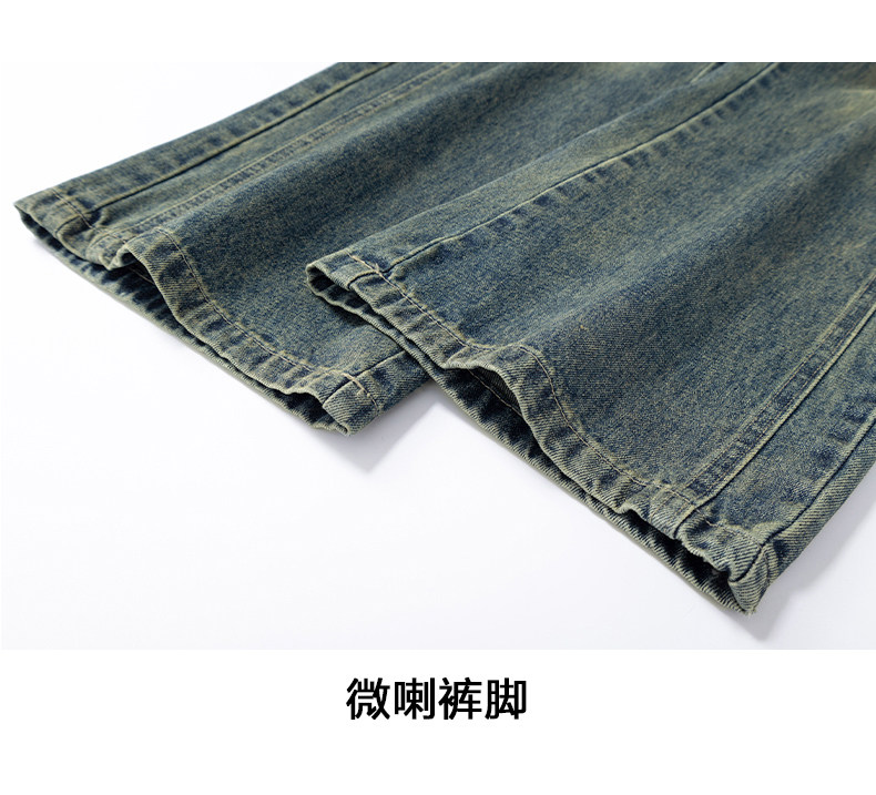 獵璞美式褲子男冬季新款寬鬆牛仔褲男士復古彎刀男生修身微喇長褲