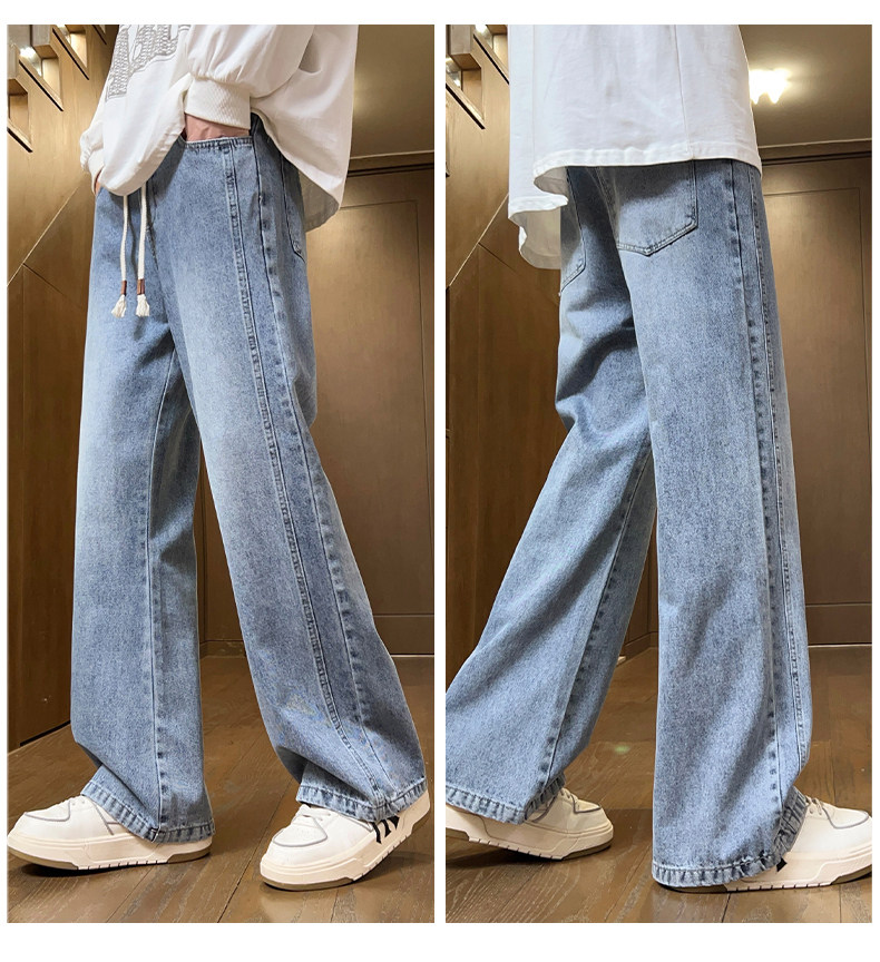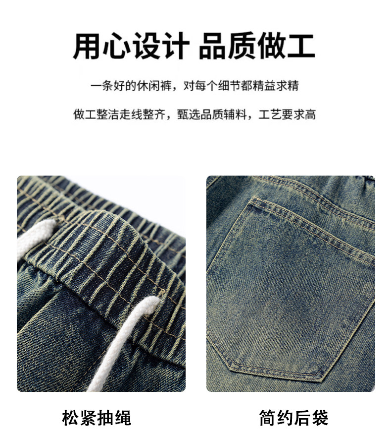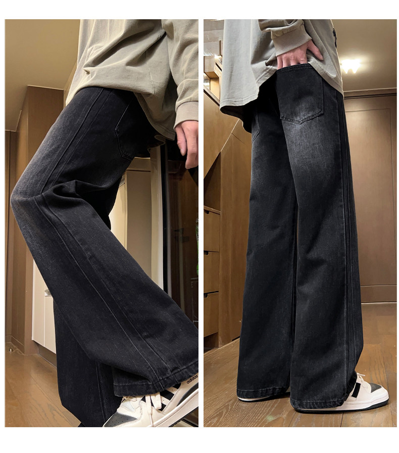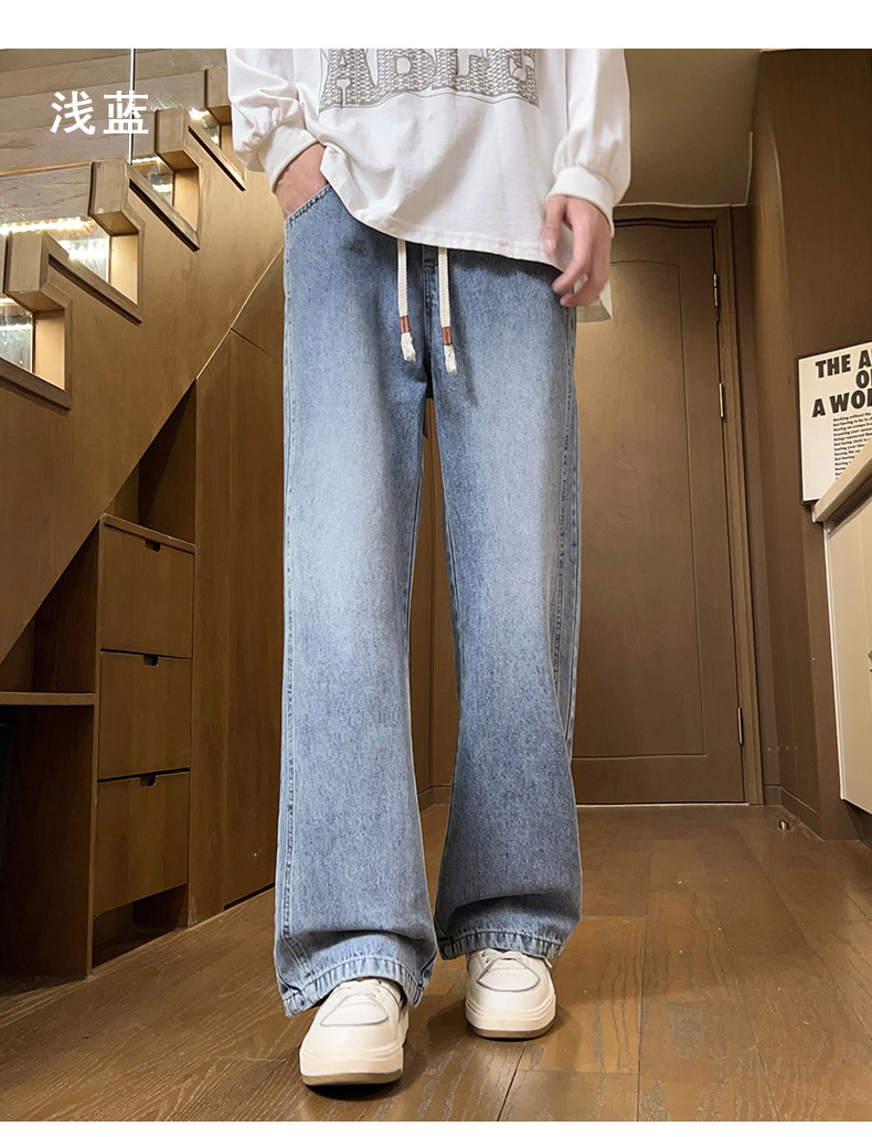 獵璞美式褲子男冬季新款寬鬆牛仔褲男士復古彎刀男生修身微喇長褲