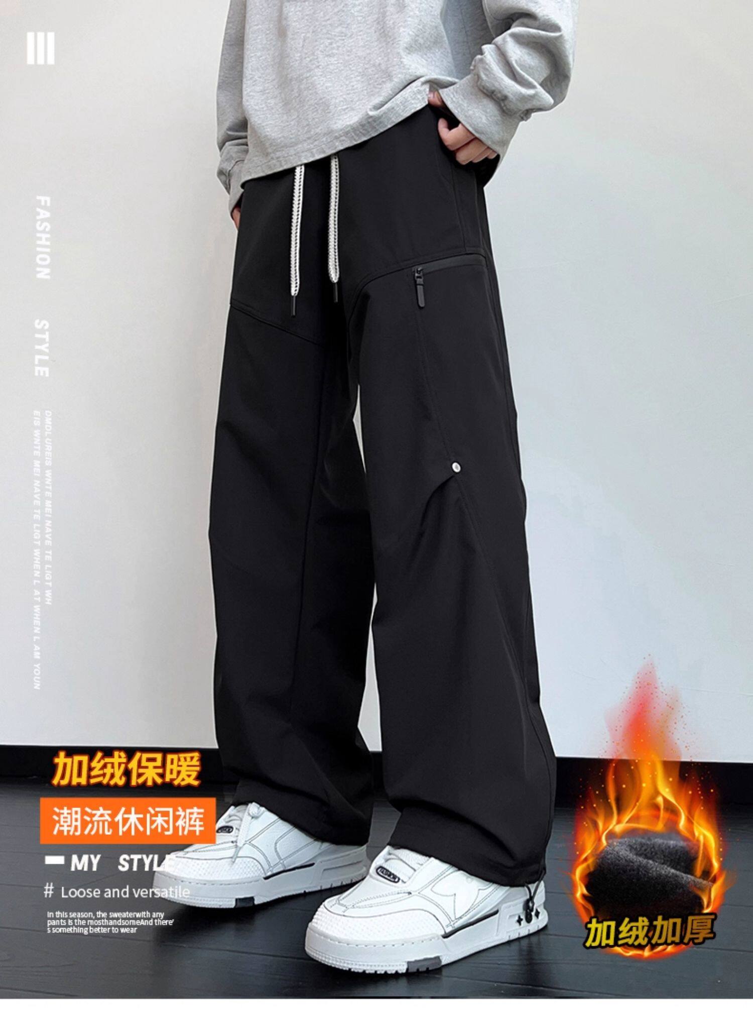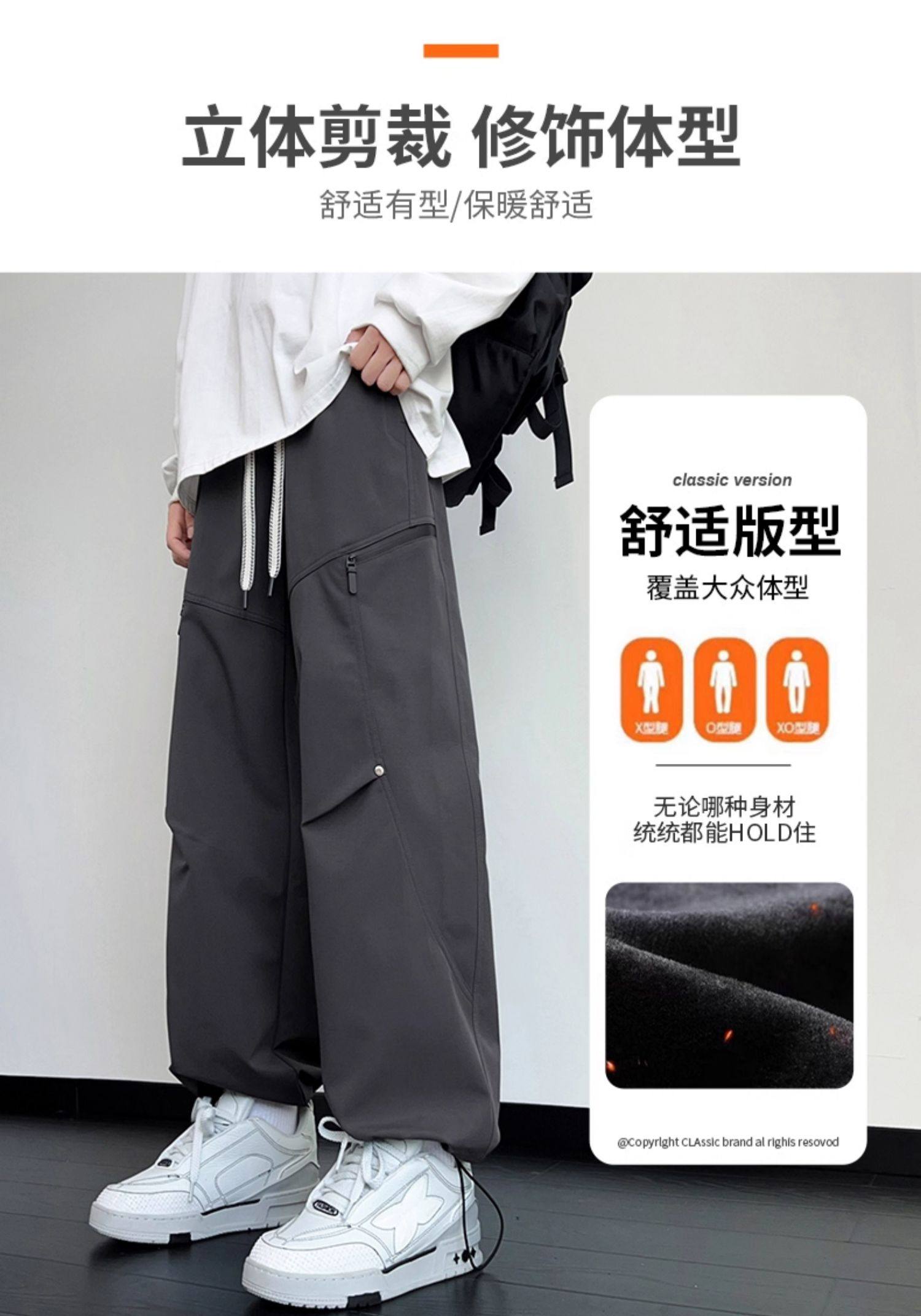 工裝褲子男款秋冬季美式潮牌沖鋒加絨加厚長褲寬鬆直筒男士休閒褲