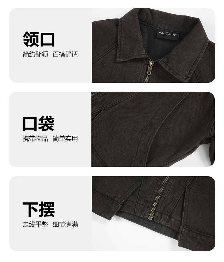 GPstudio美式復古解搆cleanfit工裝夾克男高級設計感拉鍊短寬外套