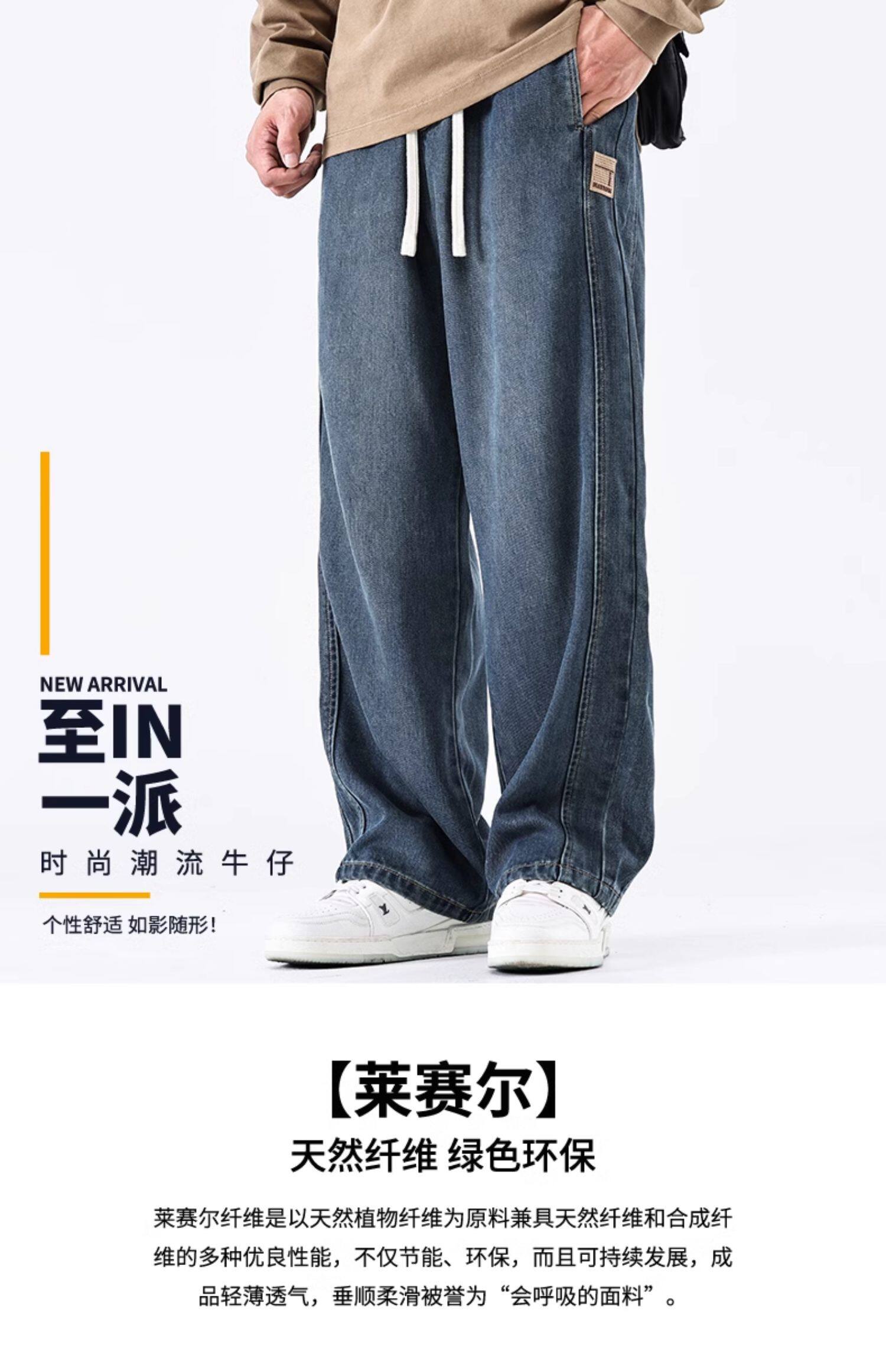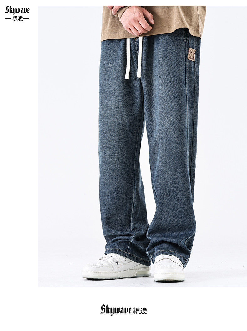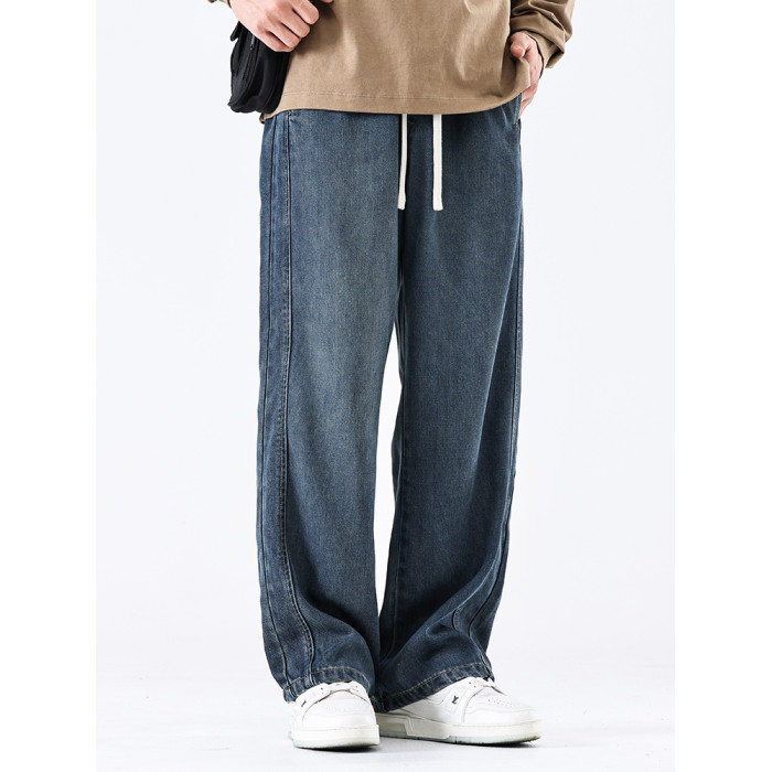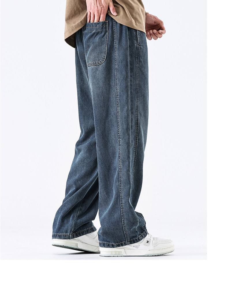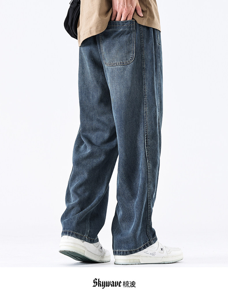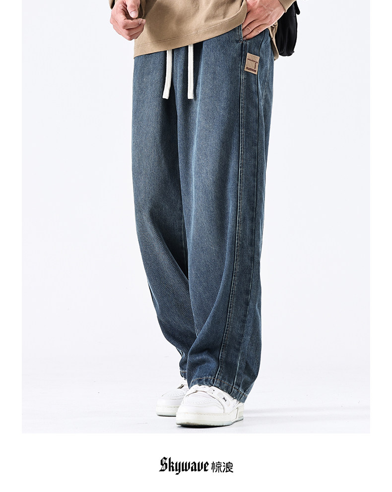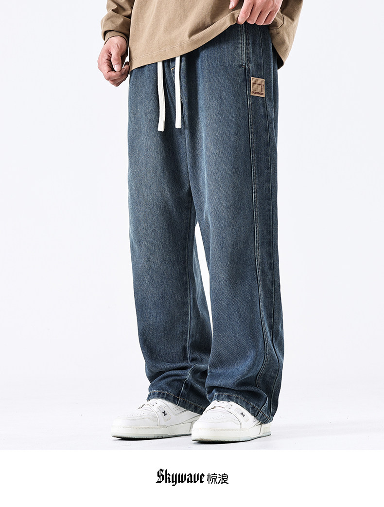驚浪天絲牛仔褲男士直筒寬鬆大碼胖子加大休閒褲子秋冬新款加絨褲