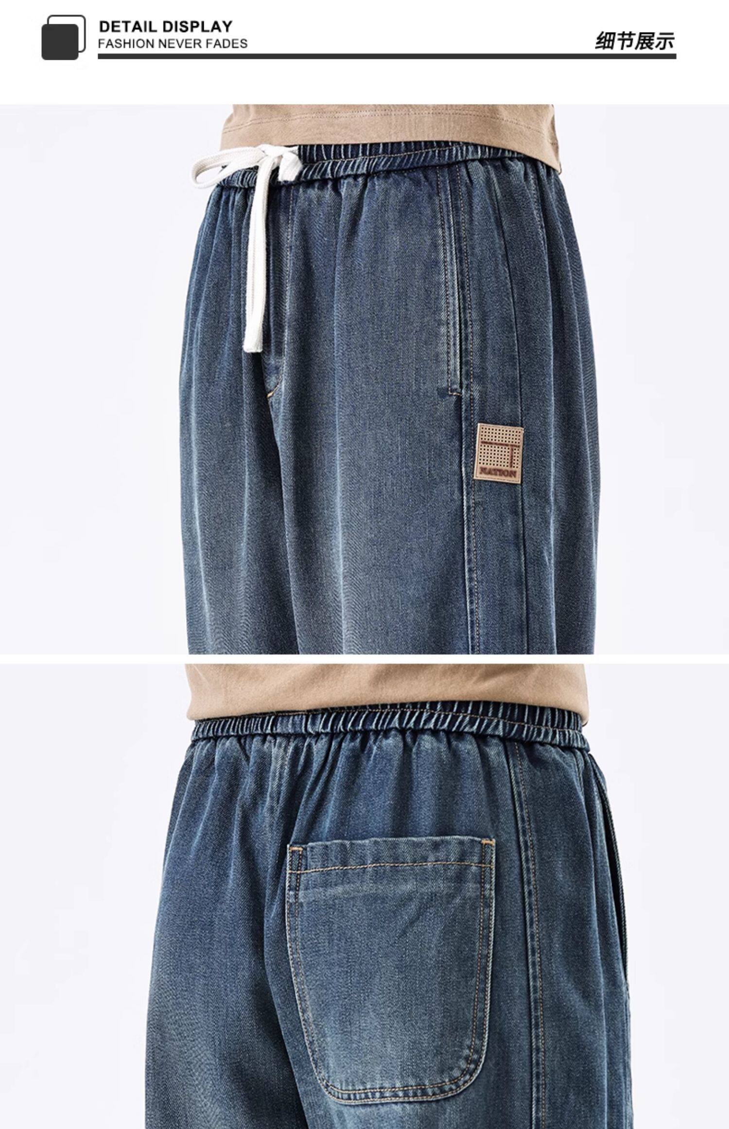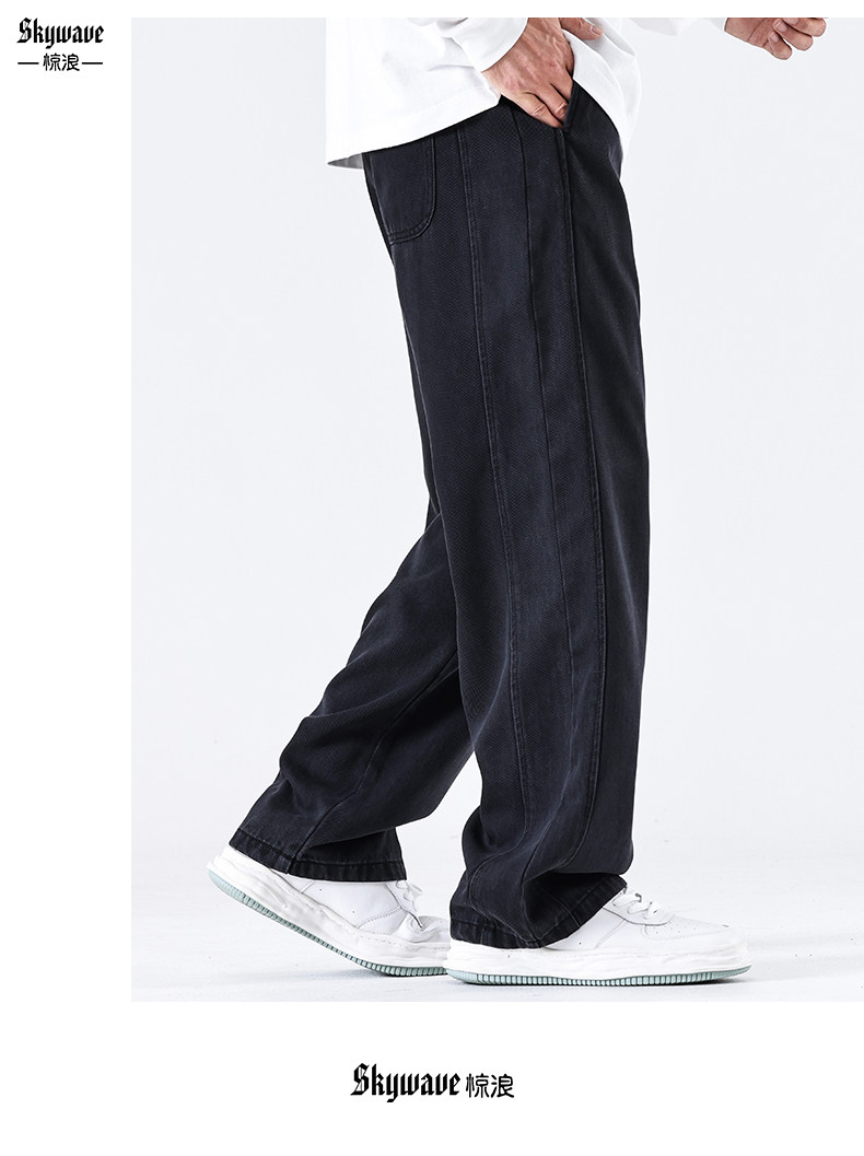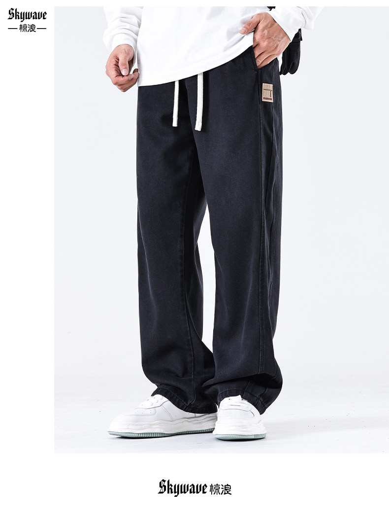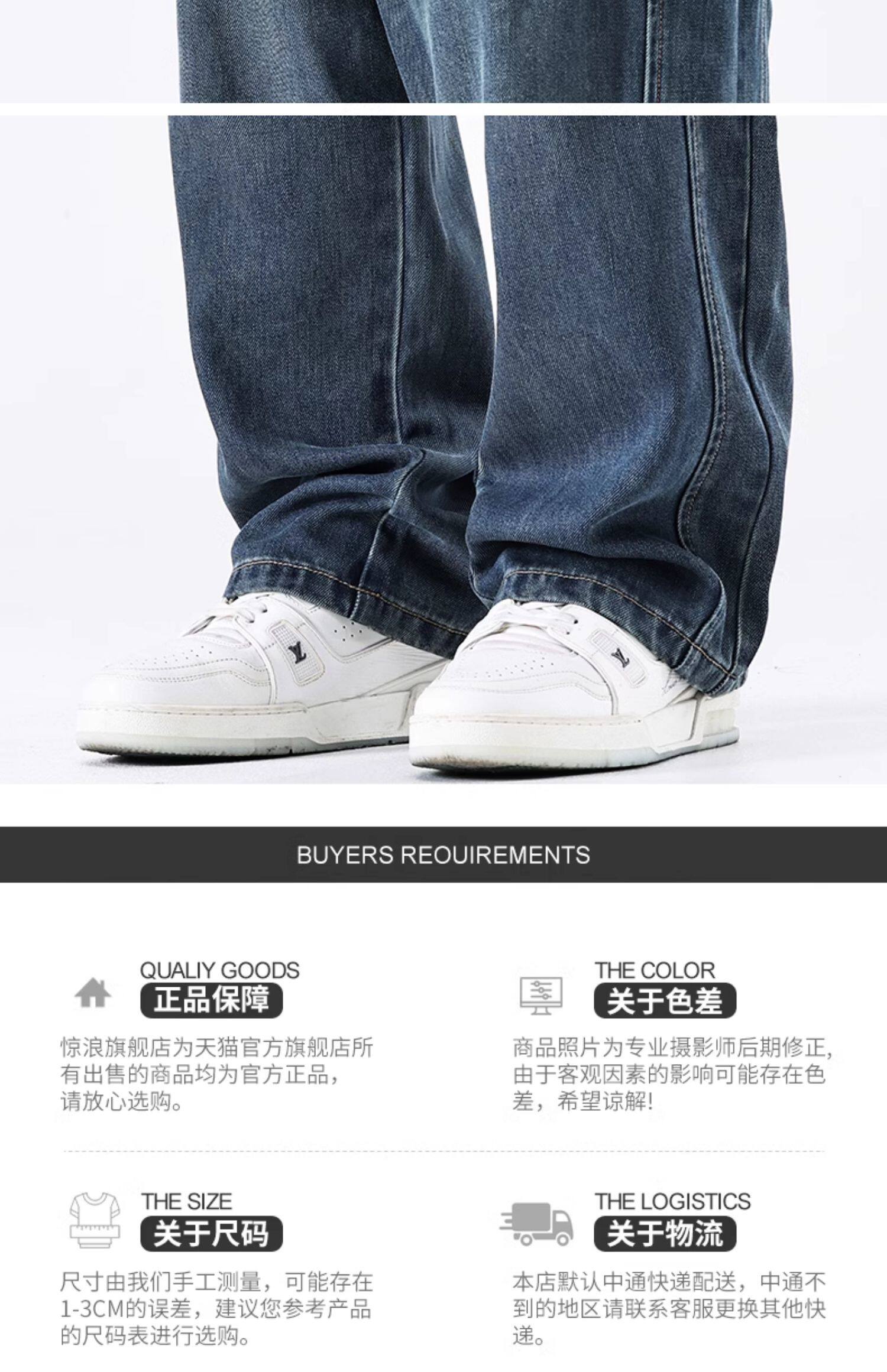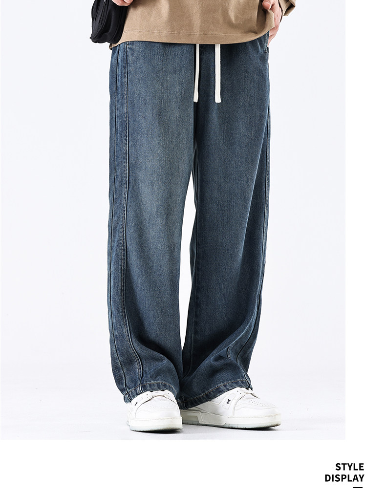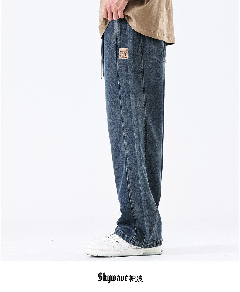 驚浪天絲牛仔褲男士直筒寬鬆大碼胖子加大休閒褲子秋冬新款加絨褲