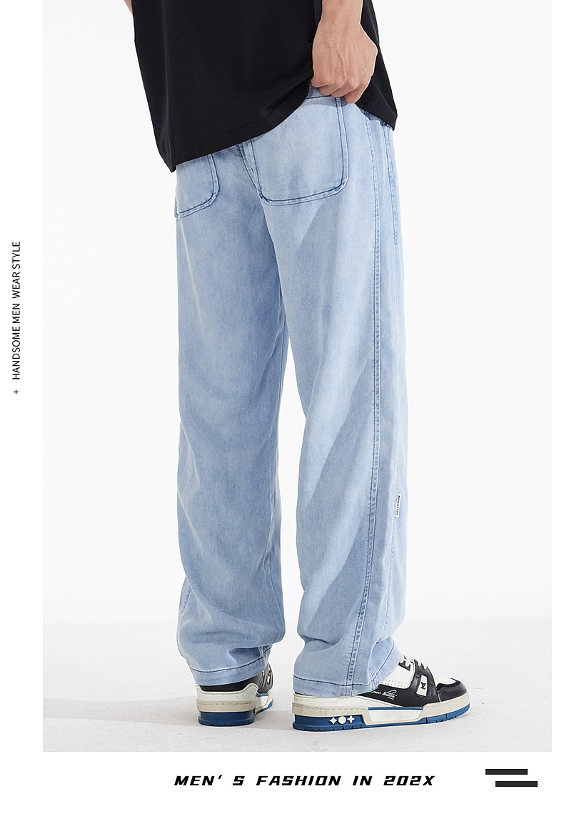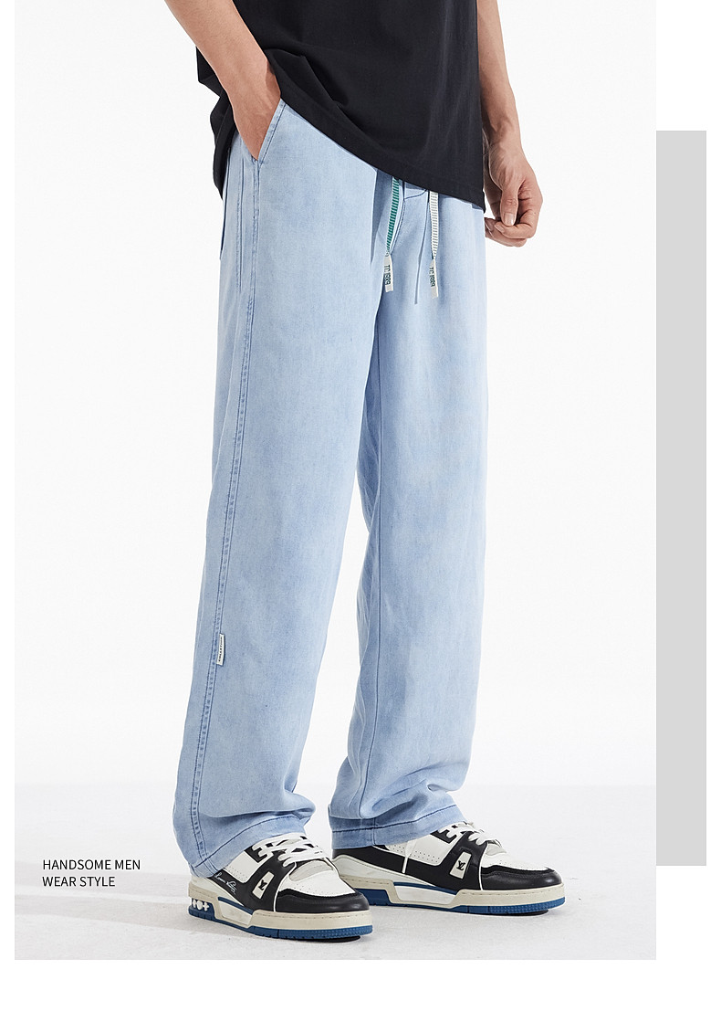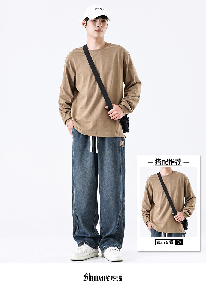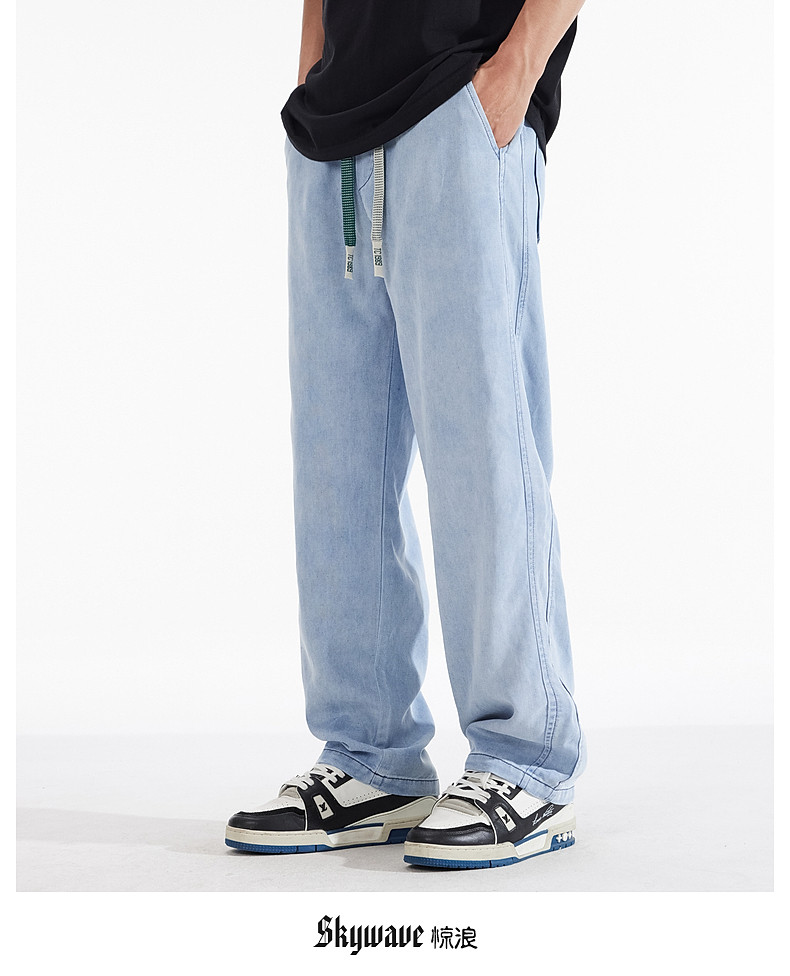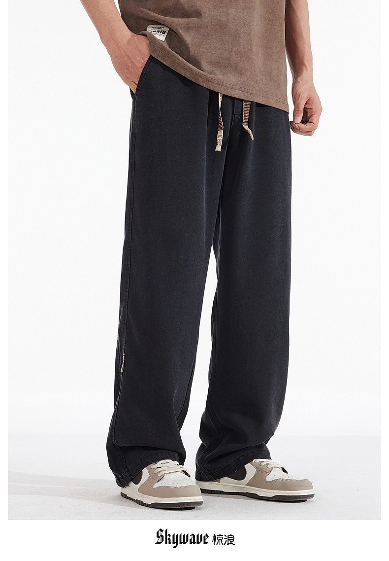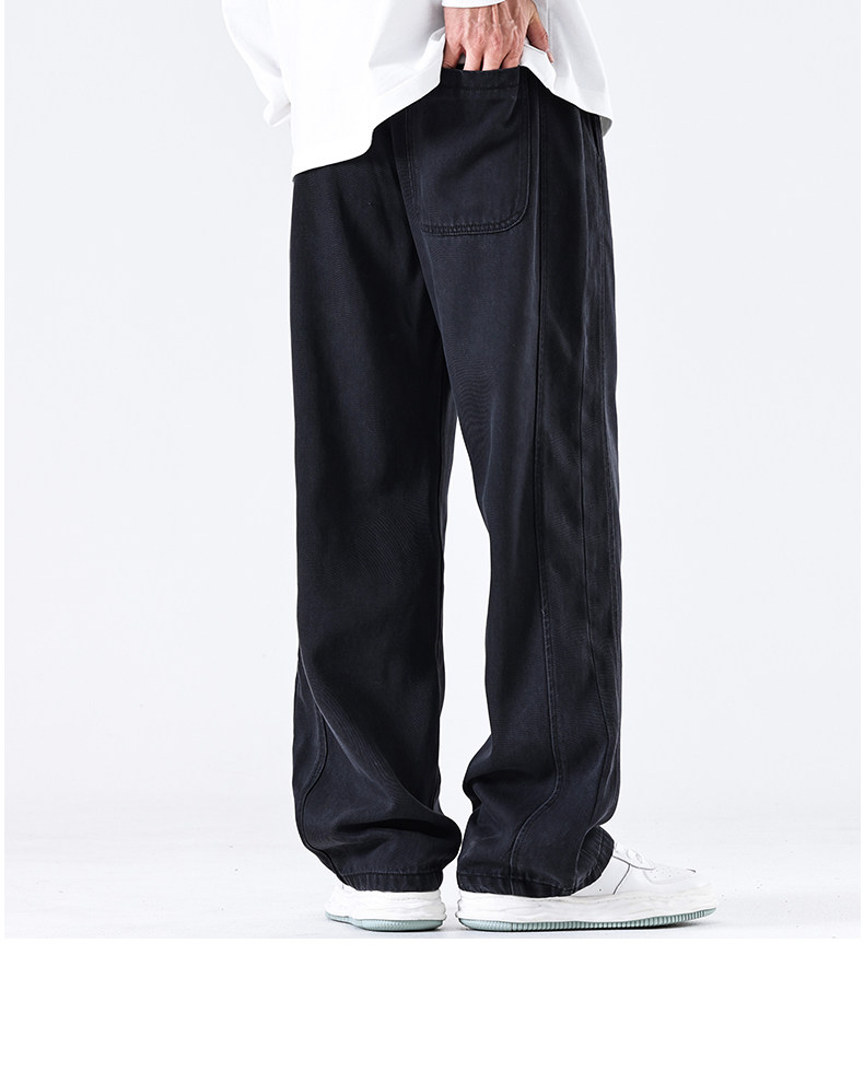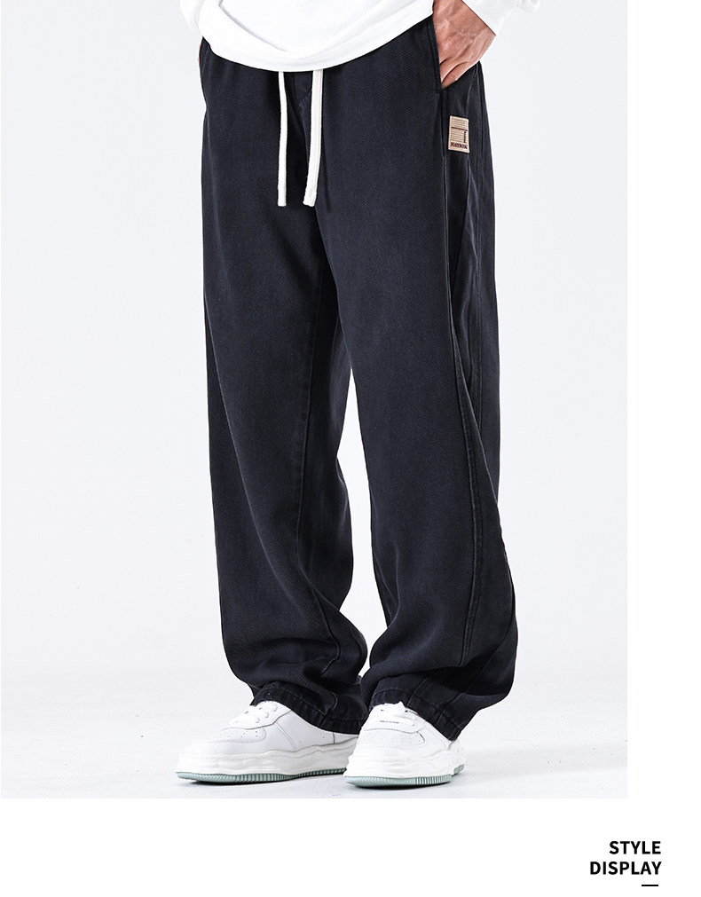 驚浪天絲牛仔褲男士直筒寬鬆大碼胖子加大休閒褲子秋冬新款加絨褲