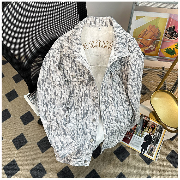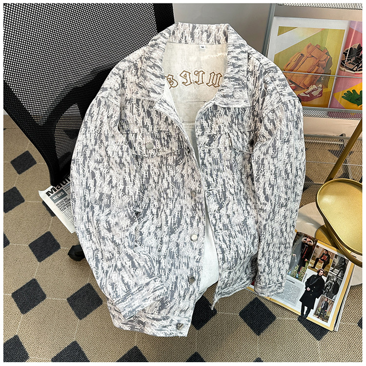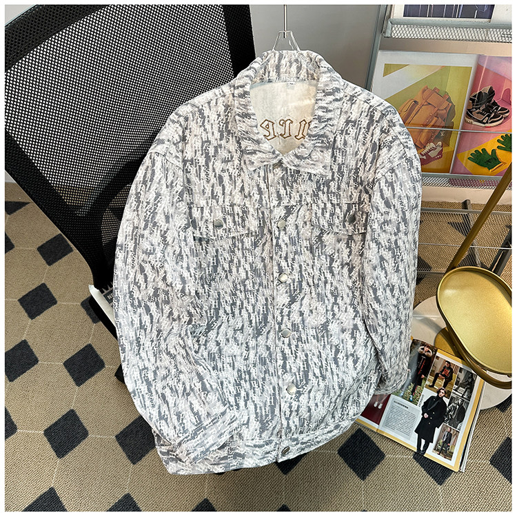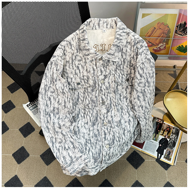 小香風牛仔外套男款秋冬季美式vibe刺綉痞帥上衣潮牌寬鬆繙領夾克