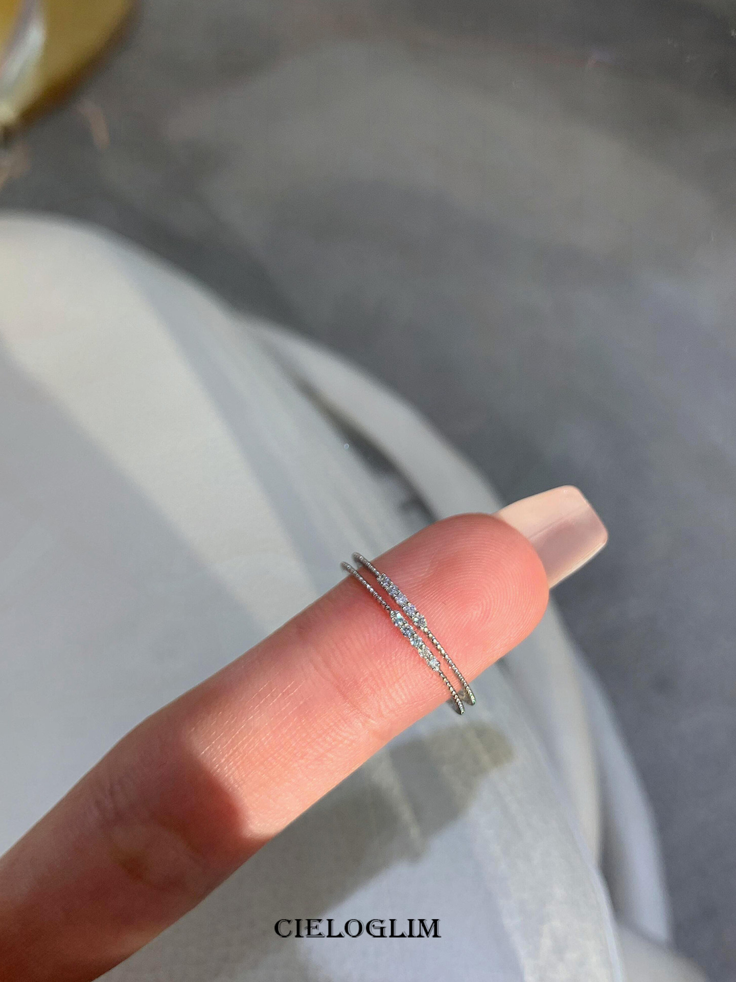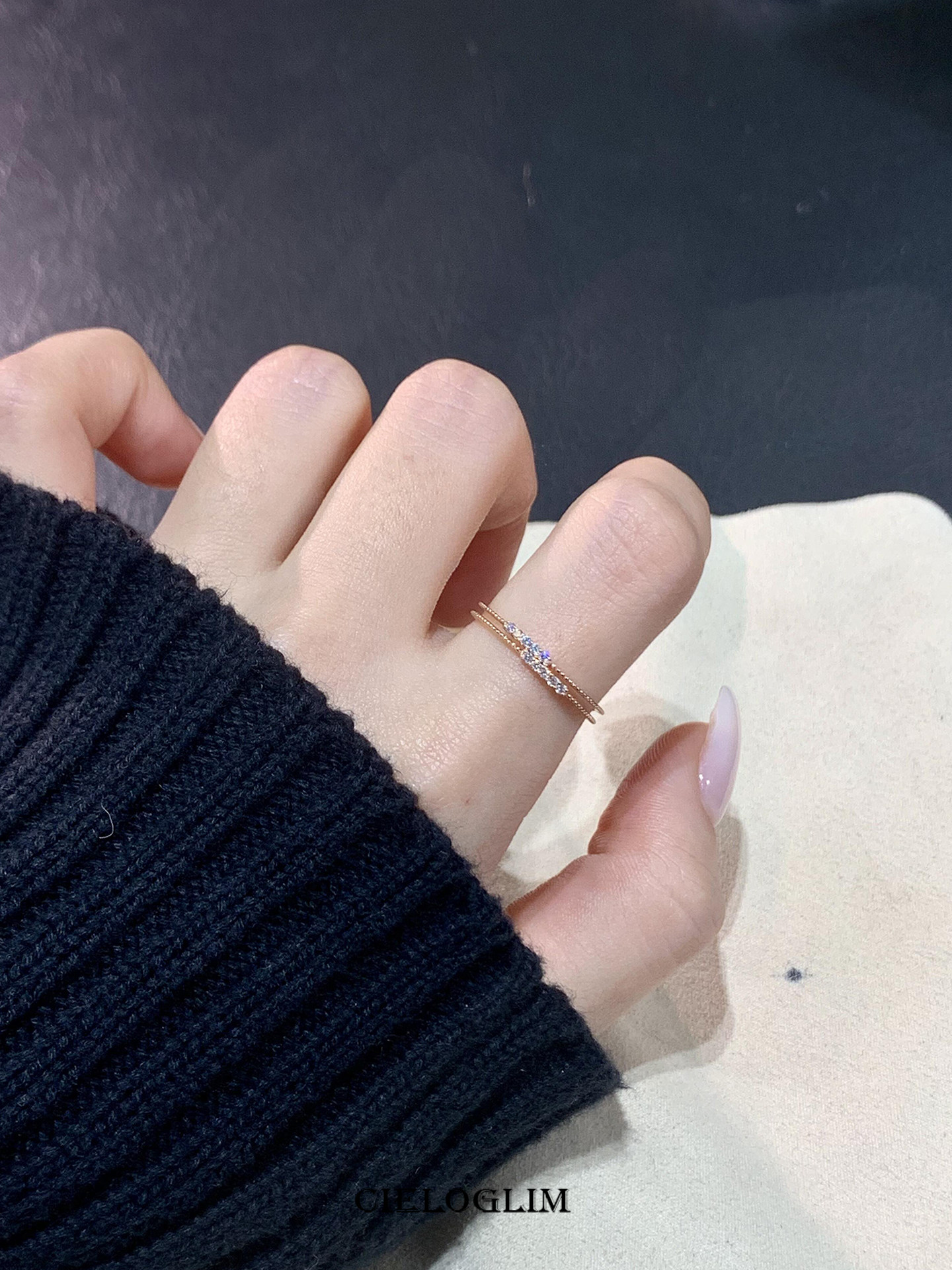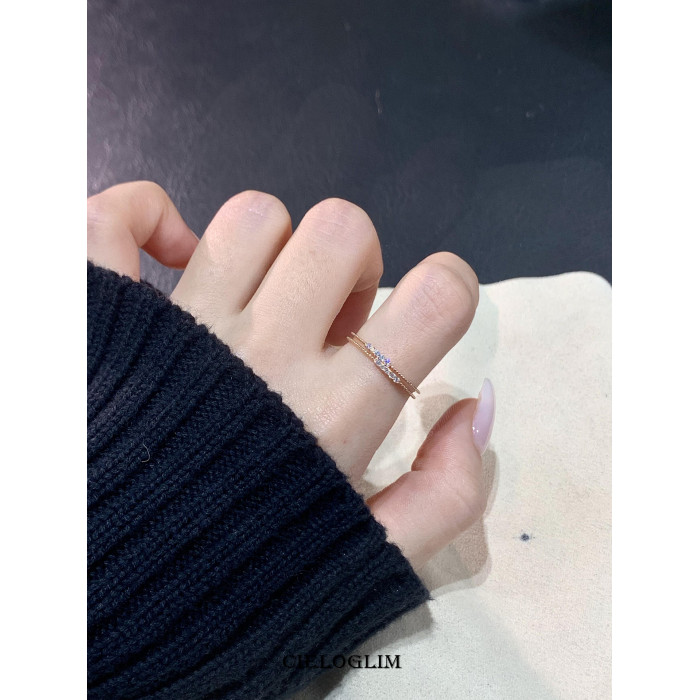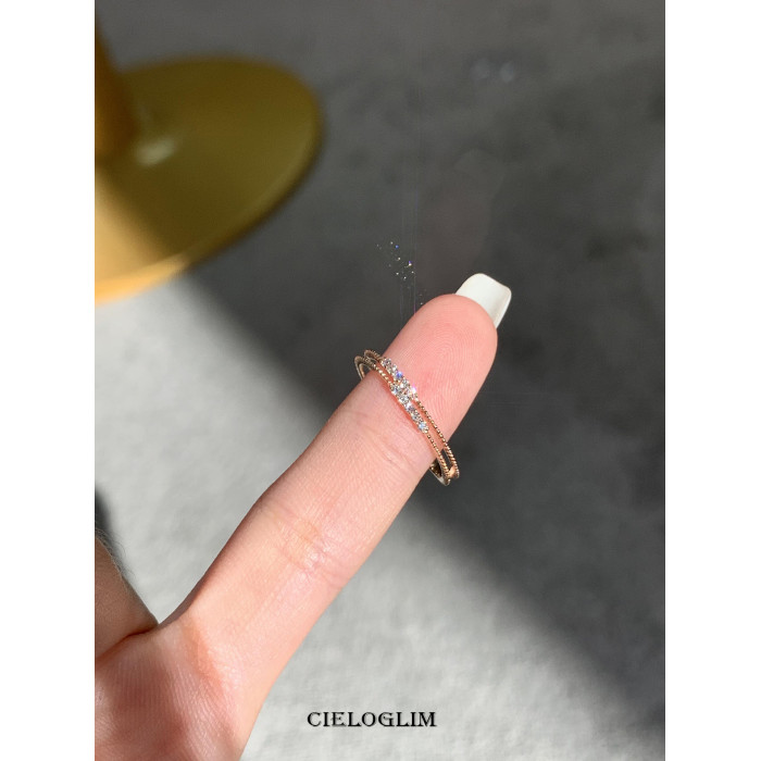 CieloGlim 碎閃細戒 10分鑽石火彩小排鑽戒指女925銀簡約百搭曡戴