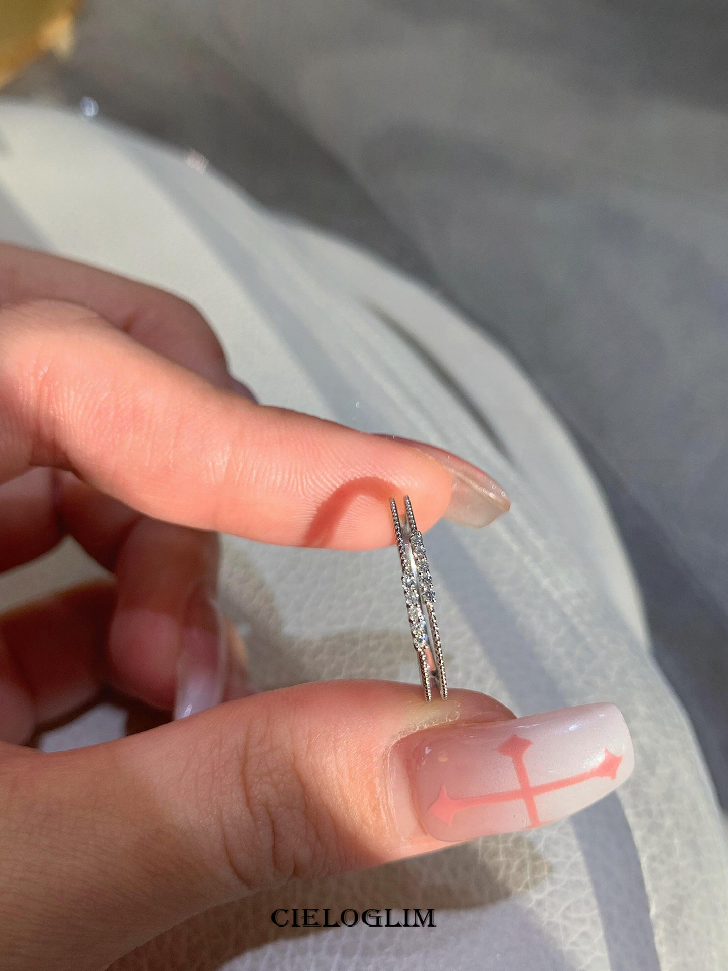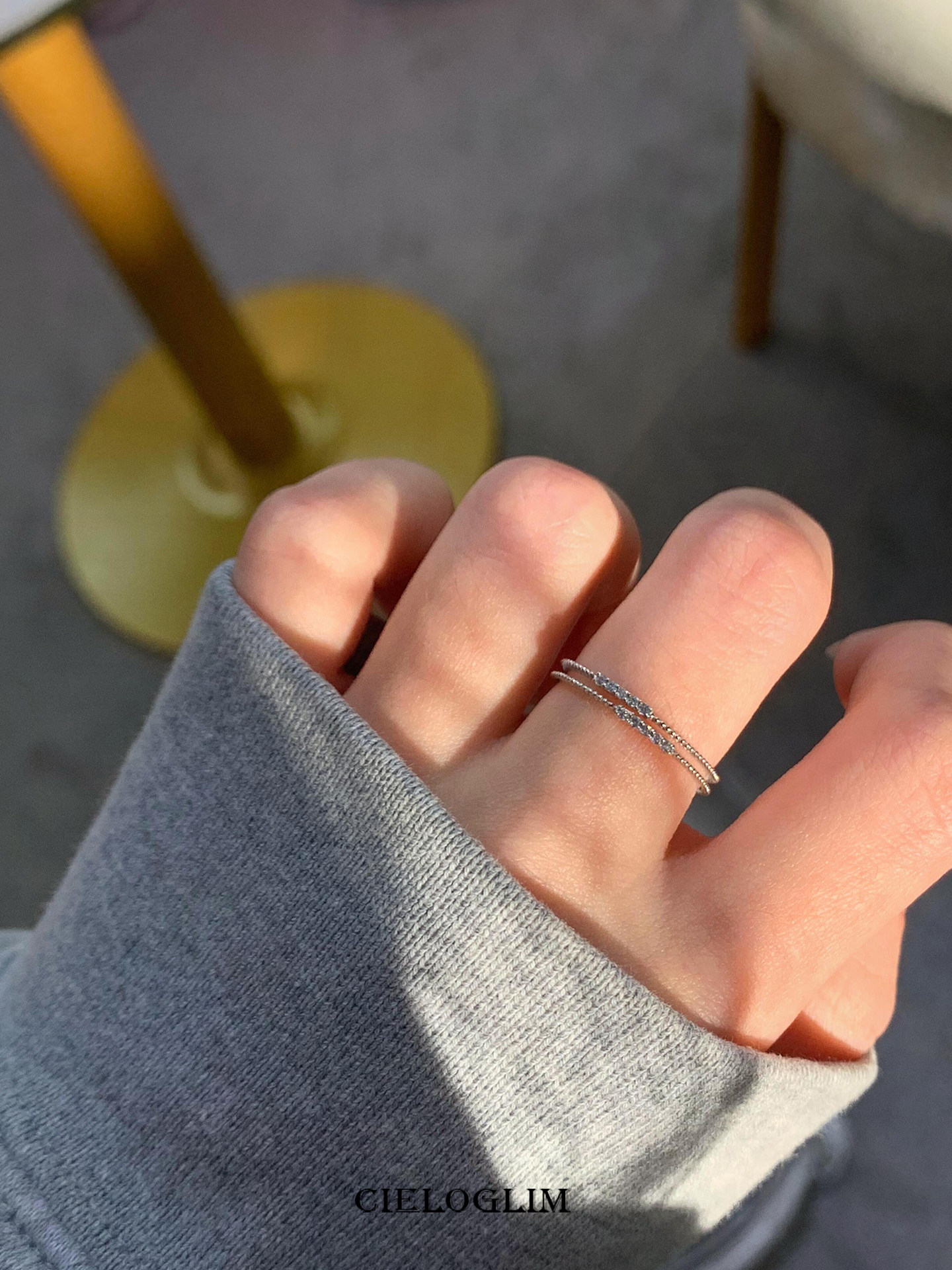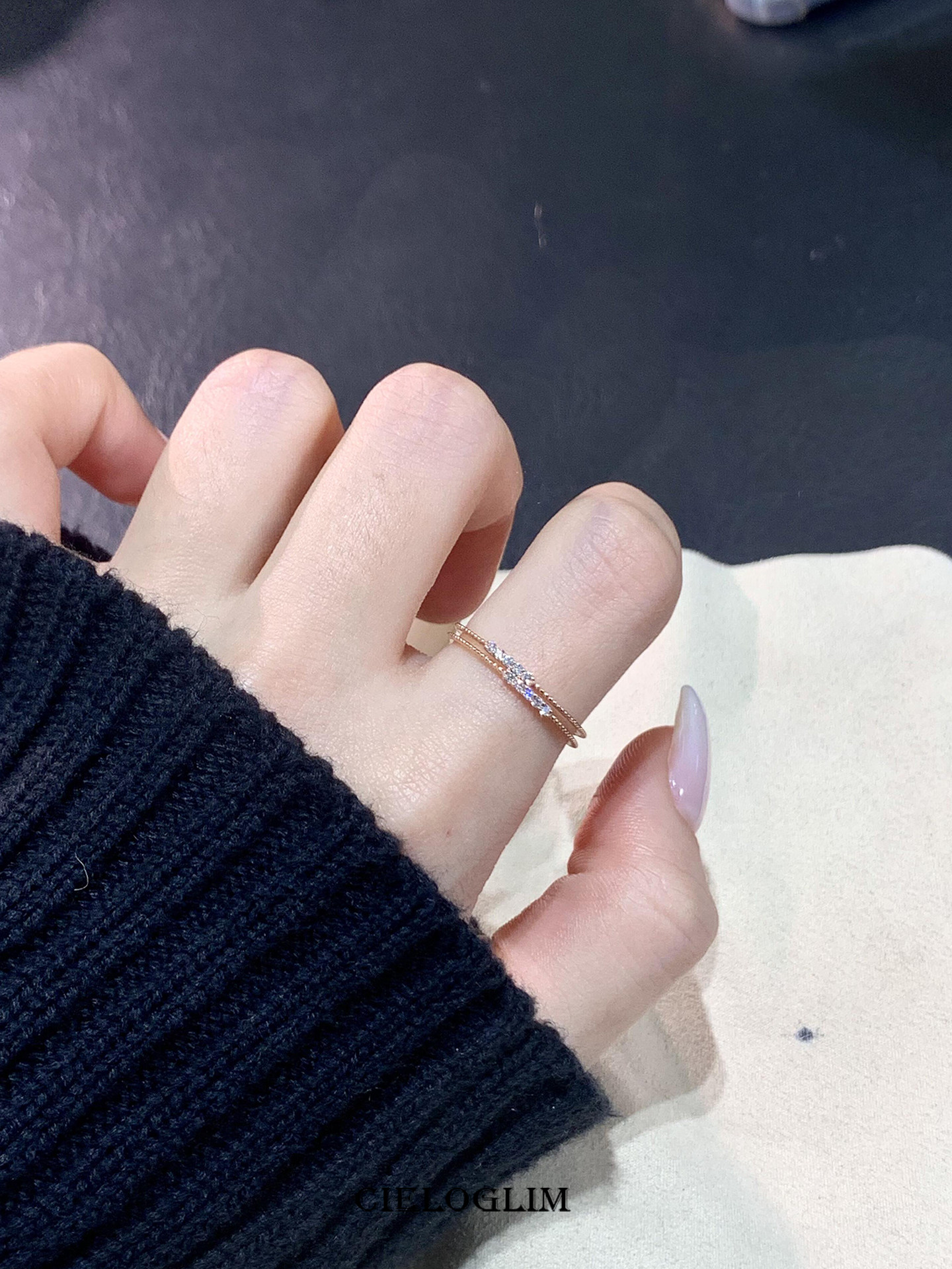 CieloGlim 碎閃細戒 10分鑽石火彩小排鑽戒指女925銀簡約百搭曡戴