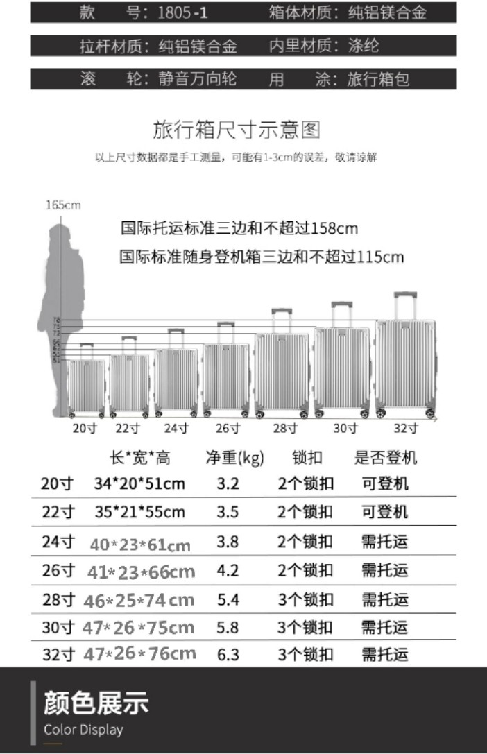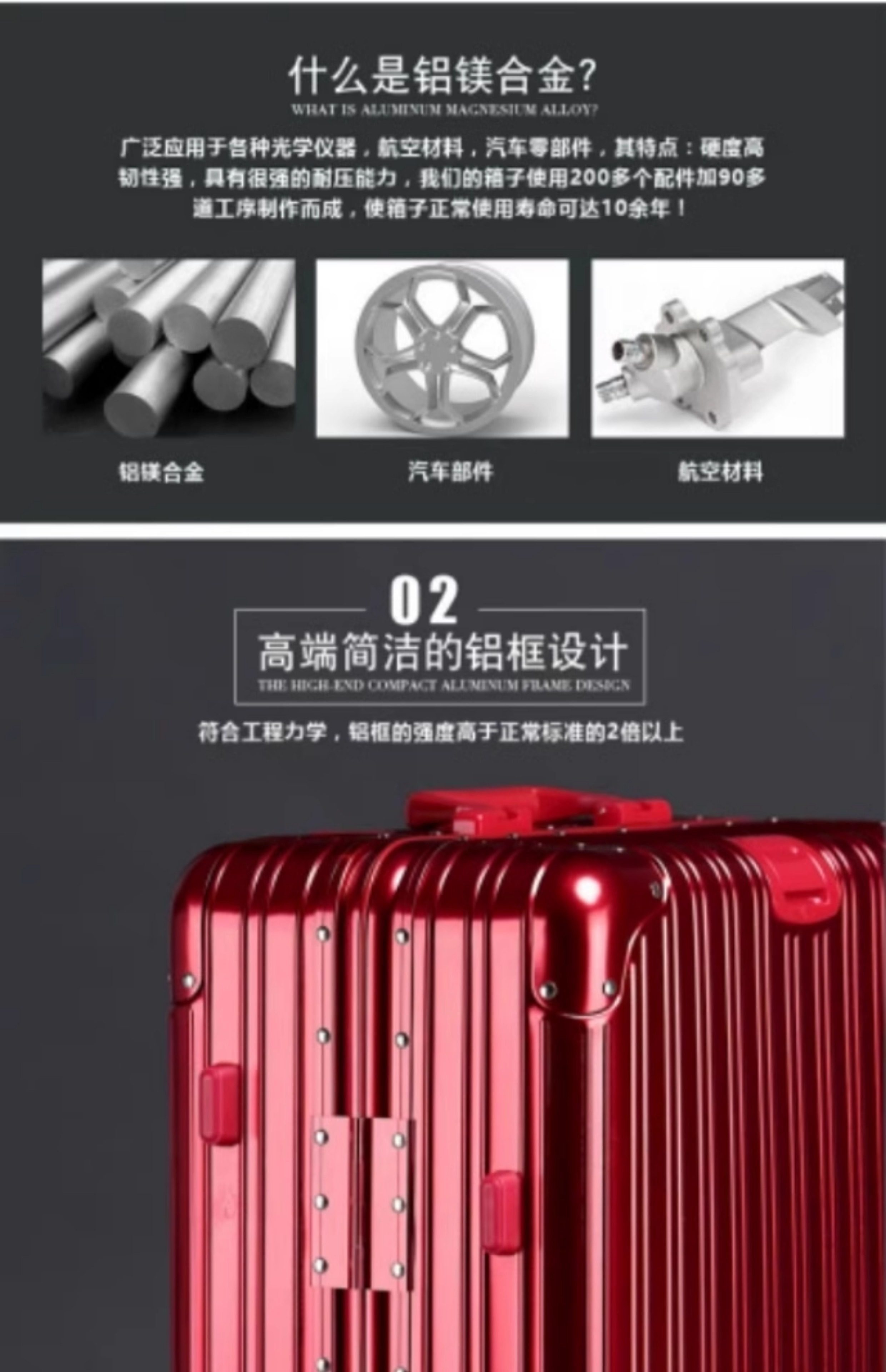 德國全金屬鋁鎂合金拉桿箱萬向輪硬旅行箱行李箱30男女22/26/32寸