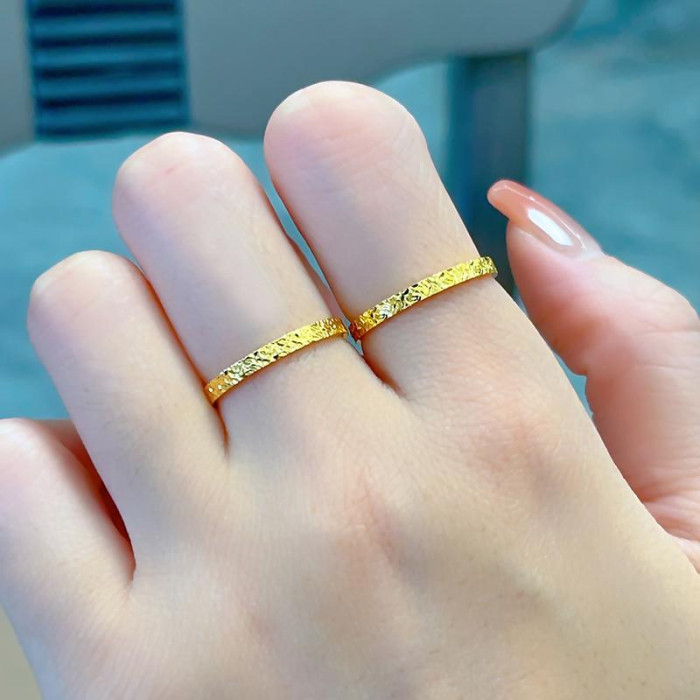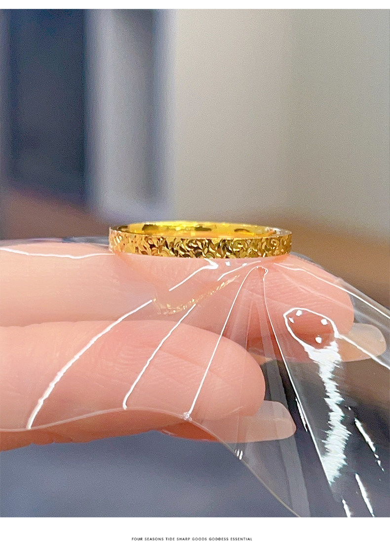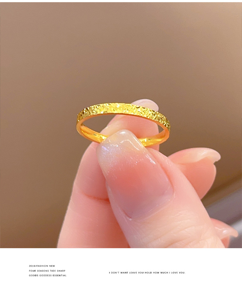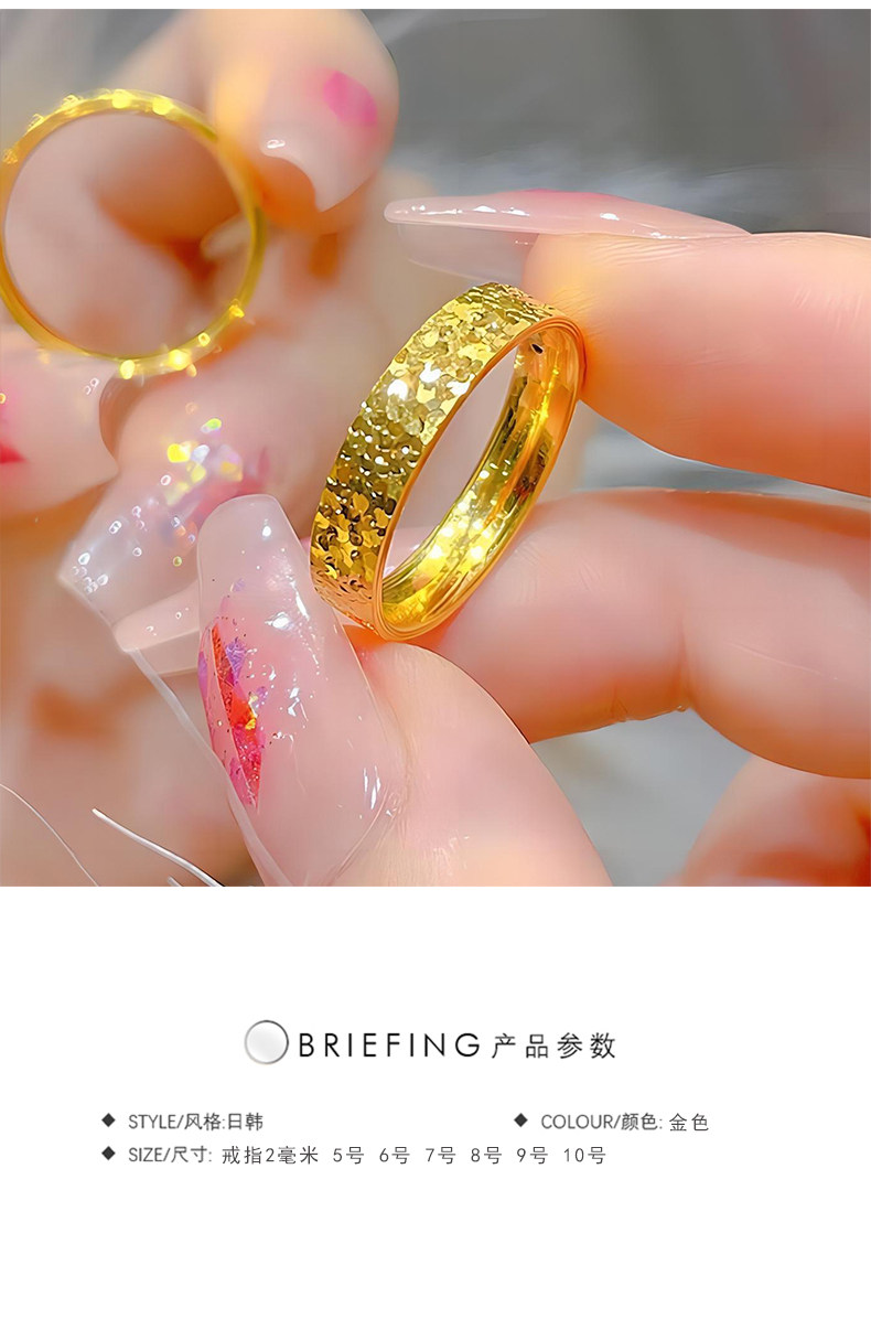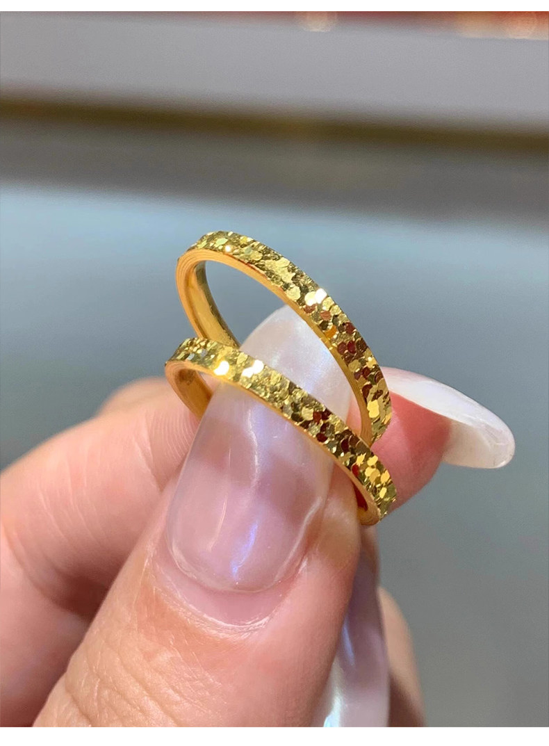 爆款輕奢碎碎冰戒指女小衆設計網紅滿天星鈦鋼鍍18k金素圈食指環