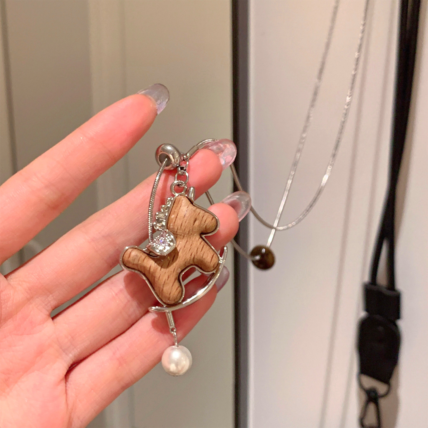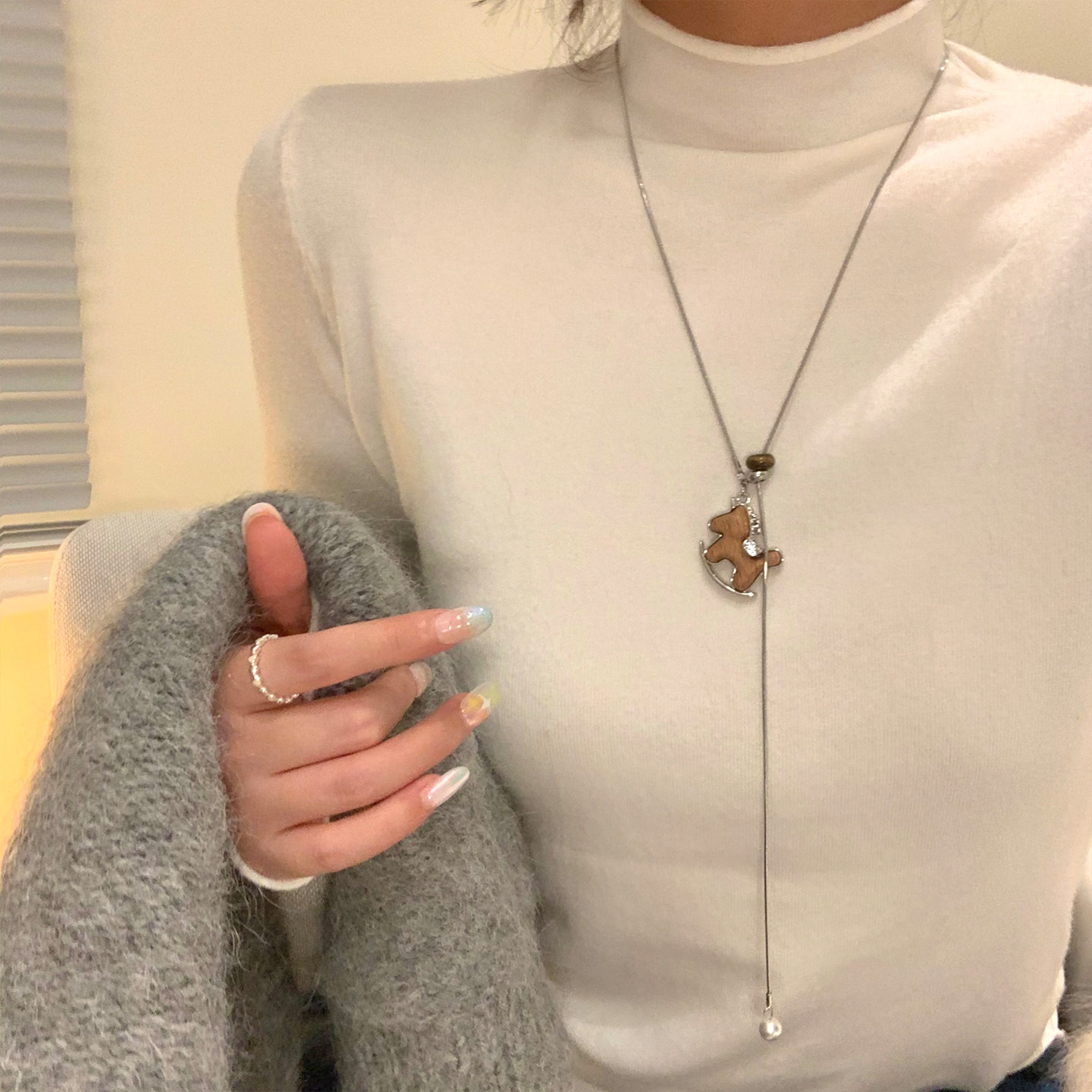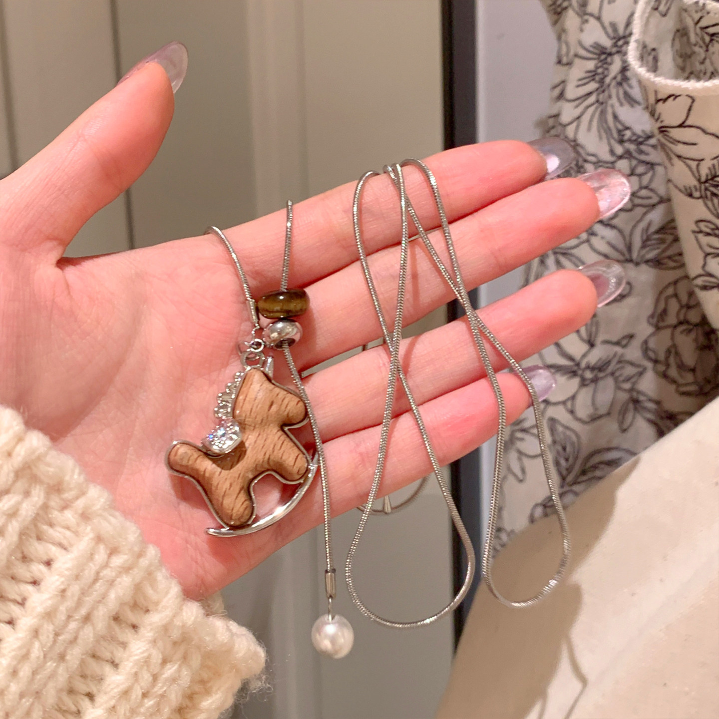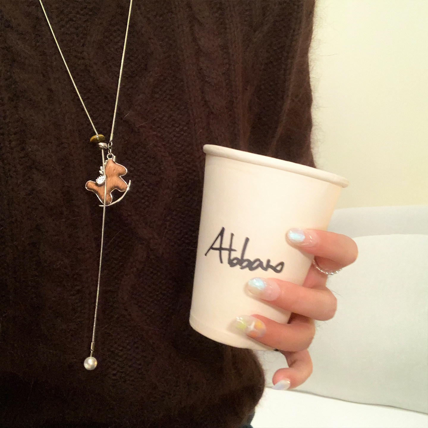 閃鋯咖色木馬吊墜可抽拉項鍊女小衆設計長款頸鏈高級感毛衣鏈配飾