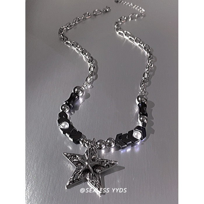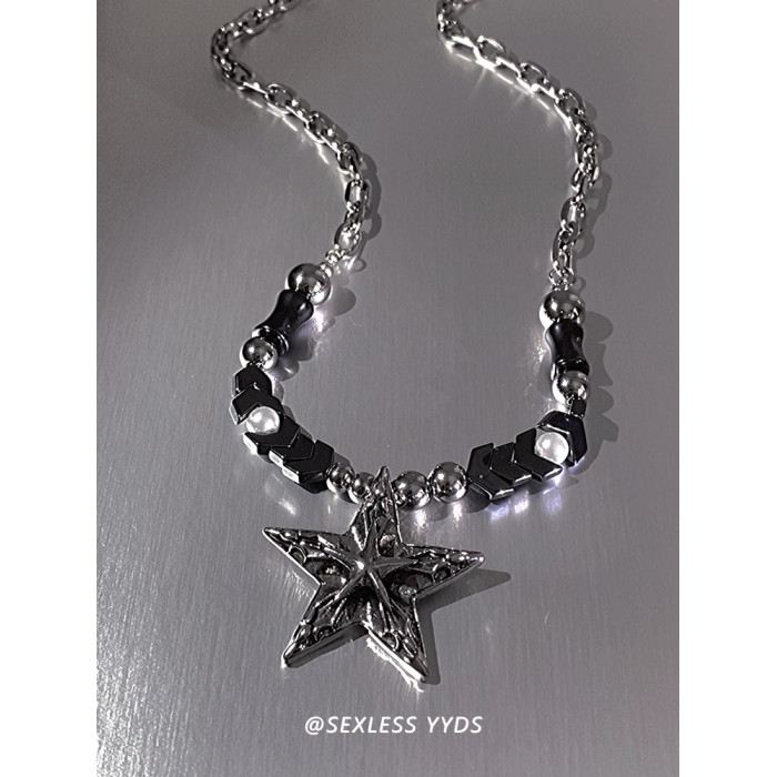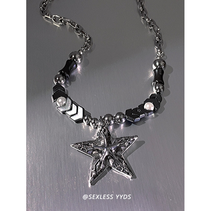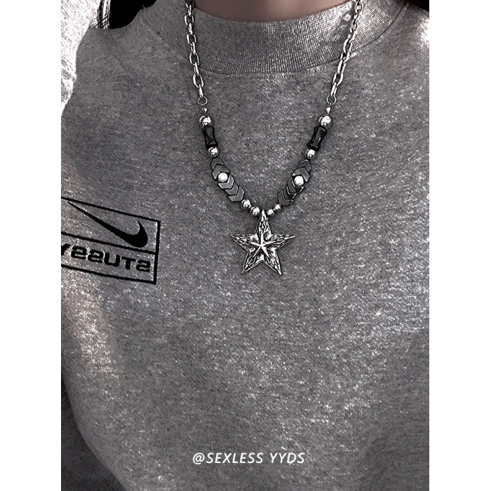 劃過星空!yyds重工五角星串珠項鍊女小衆設計龐克風嘻哈男亞文化