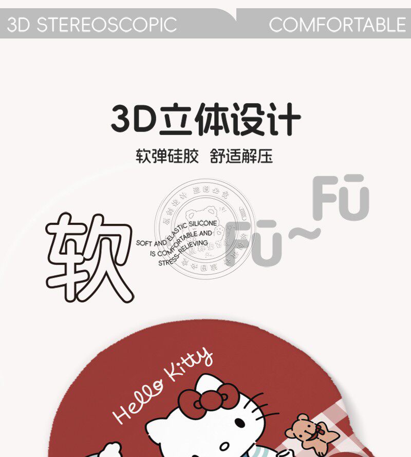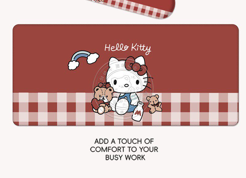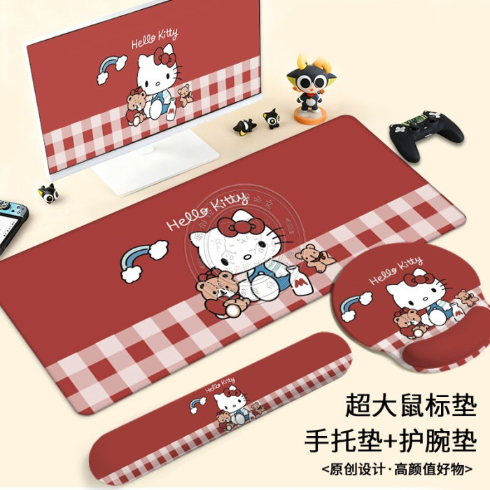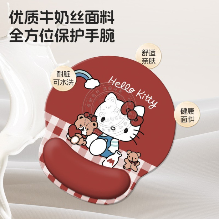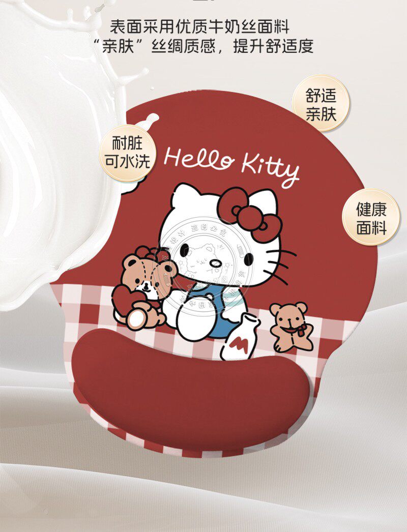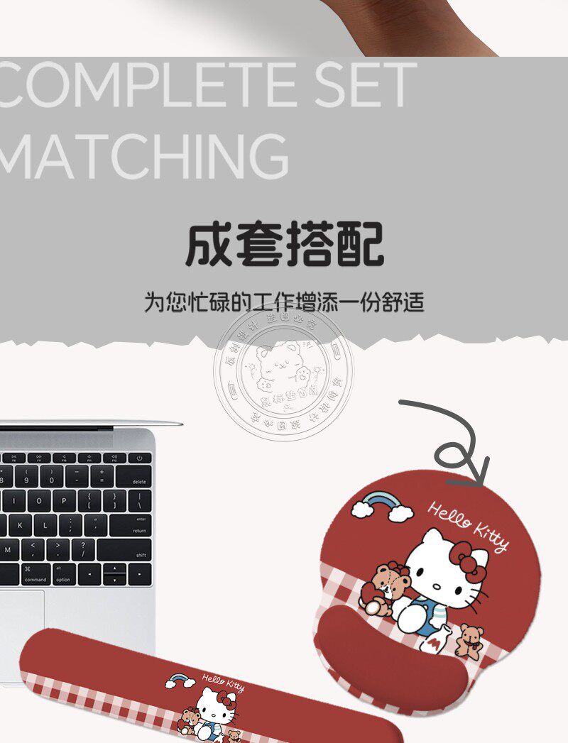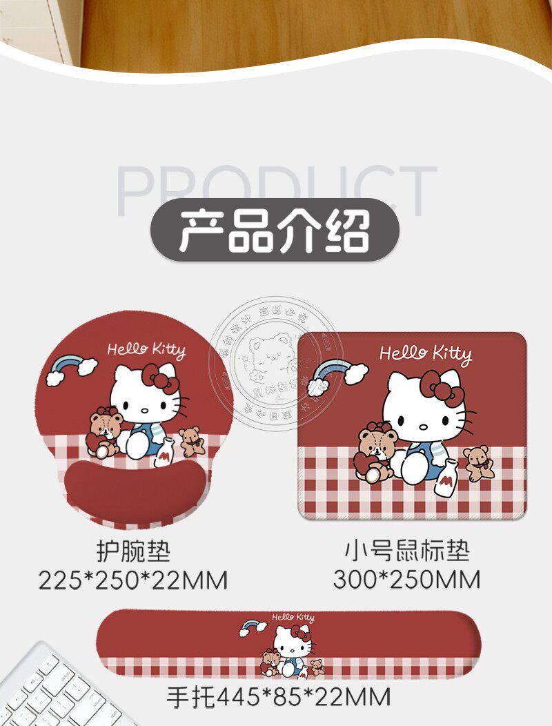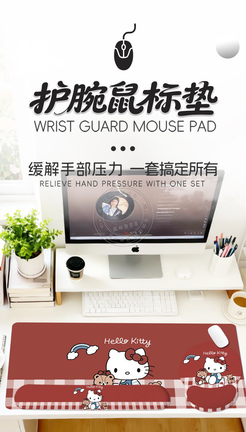 可愛凱蒂貓簡約滑鼠墊整套辦公神器—創意矽膠護腕墊鍵盤手托桌墊