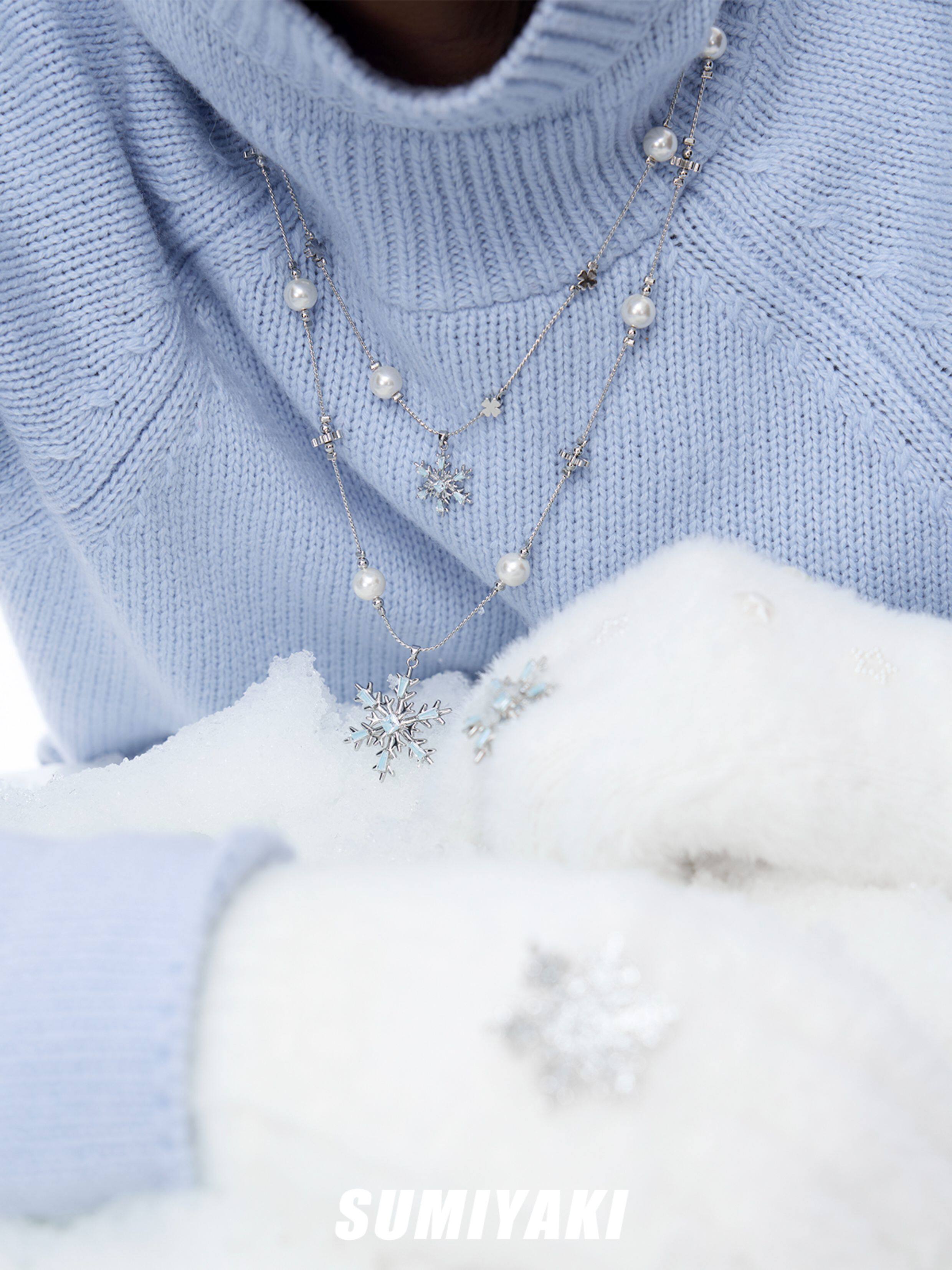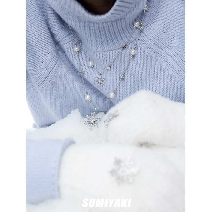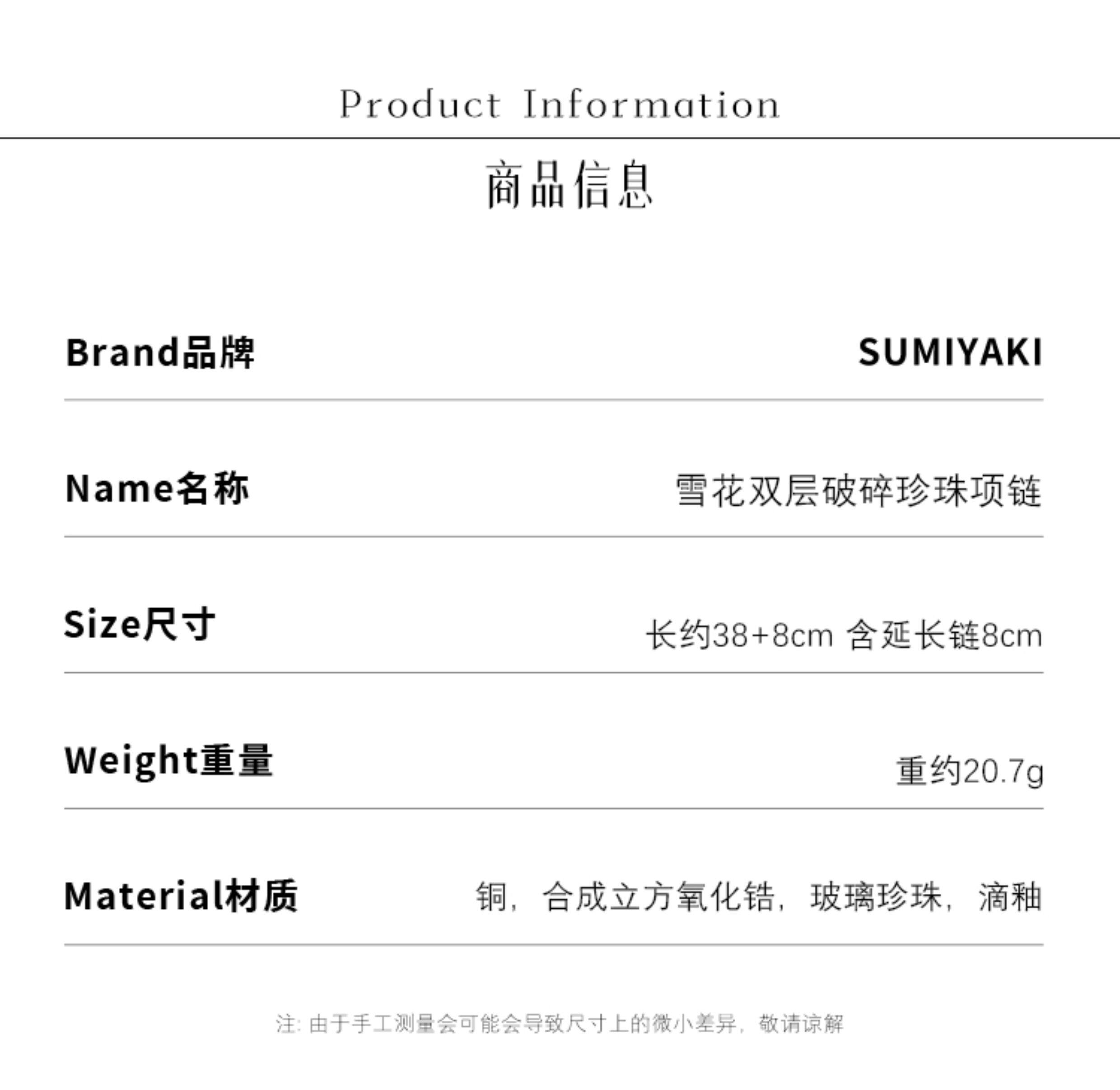 SUMIYAKI 給春夏降降溫 雪花系列雙層破碎珍珠項鍊小衆設計頸鏈