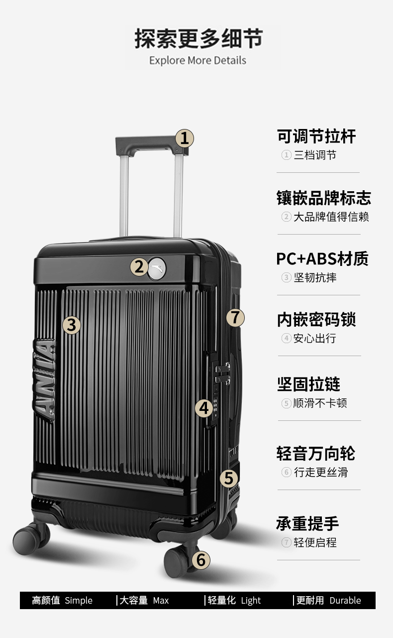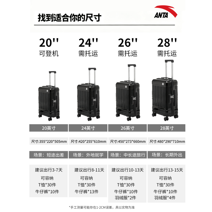 安踏旅行行李箱20寸2025年新款拉桿箱男生24密碼箱萬向輪可登機箱