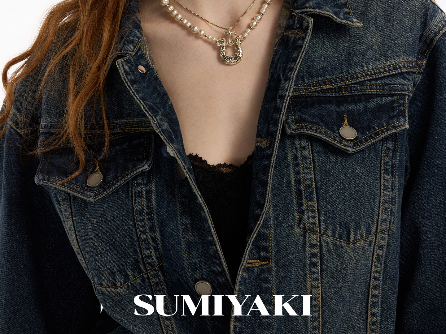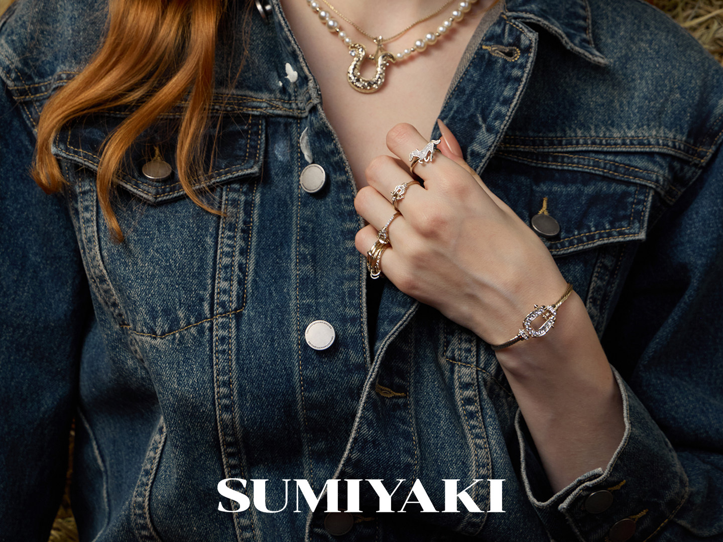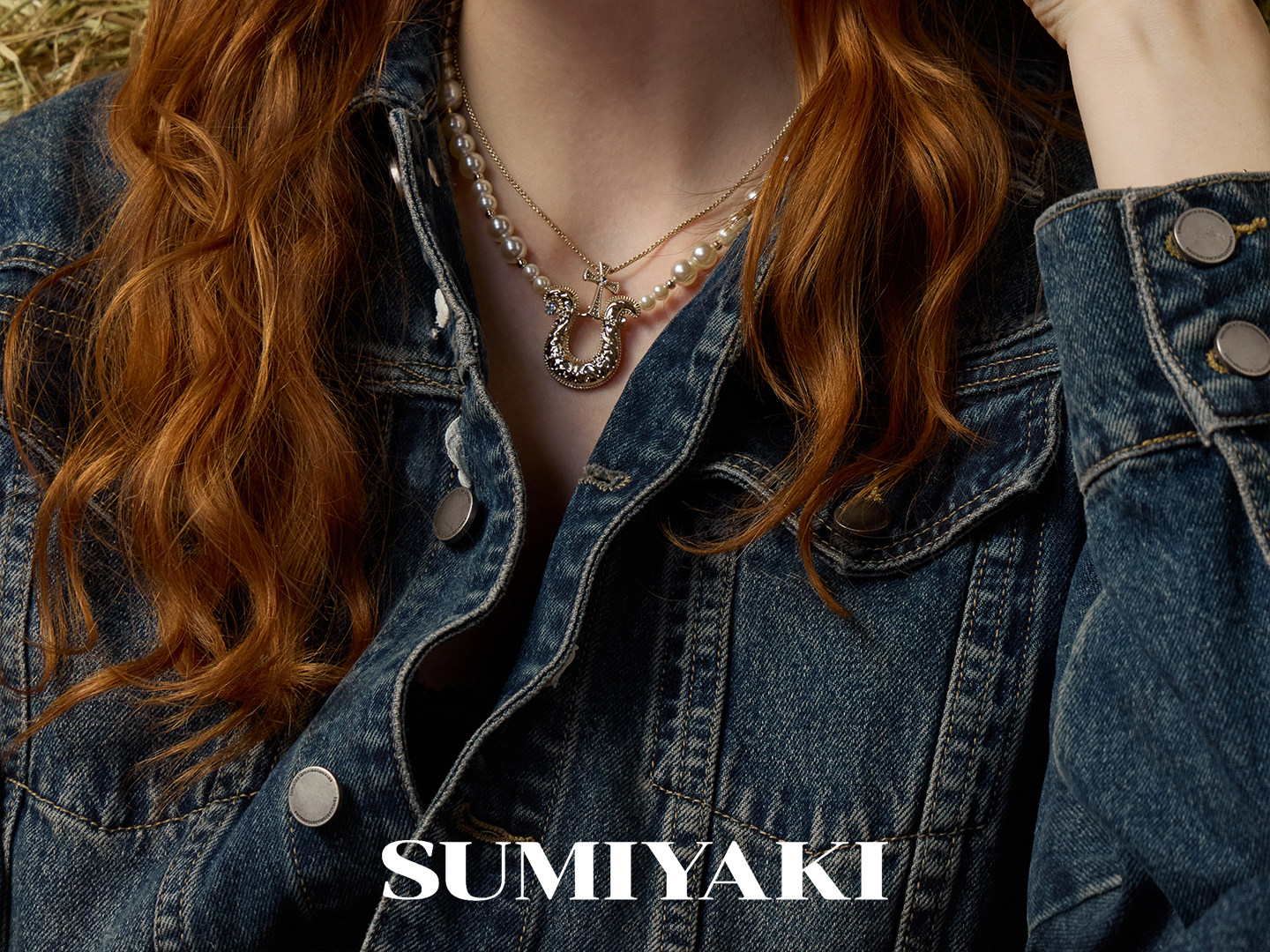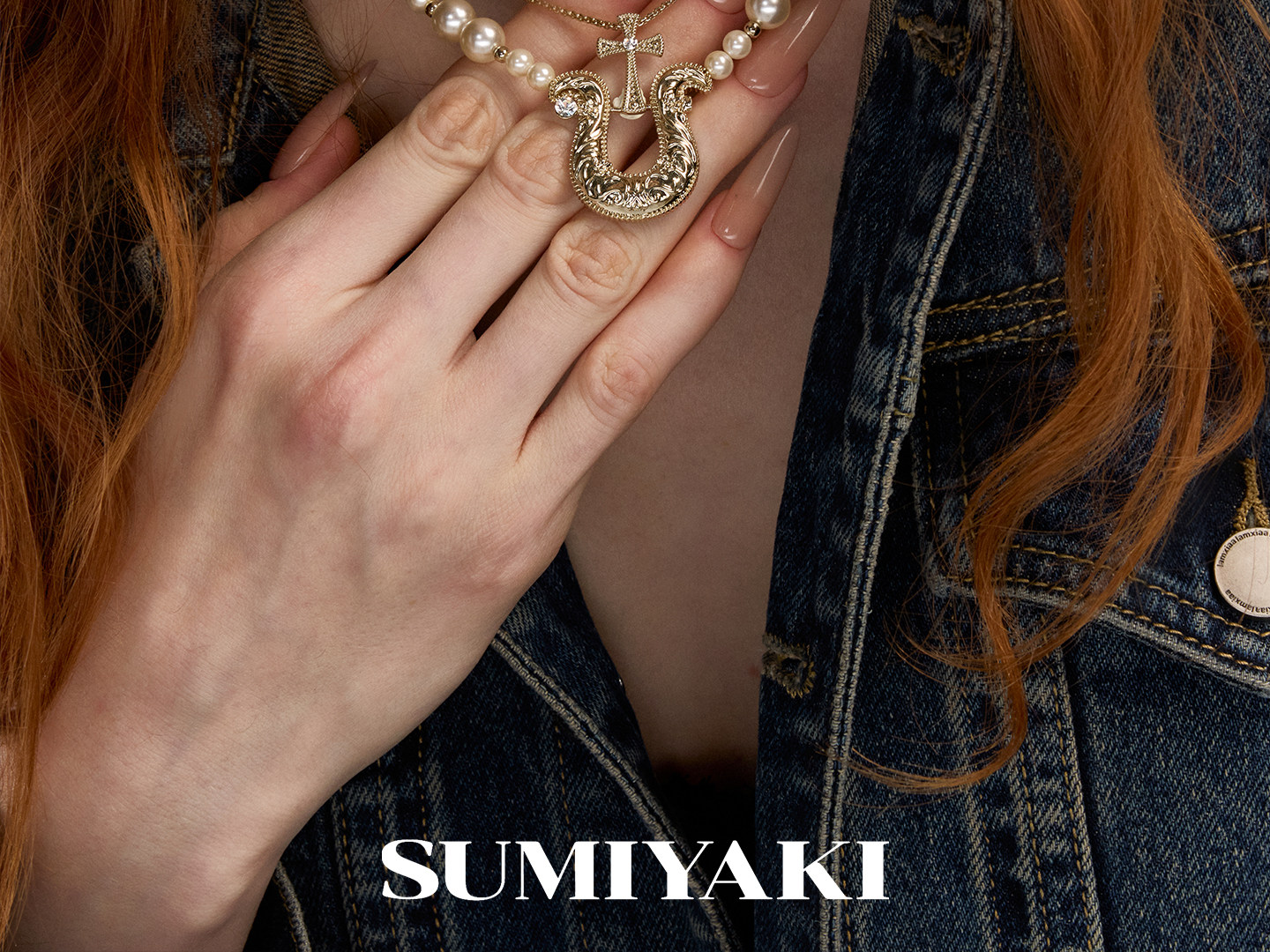 SUMIYAKI 馬年系列浮雕花紋馬蹄釦雙層珍珠項鍊十字架曡戴鎖骨鍊
