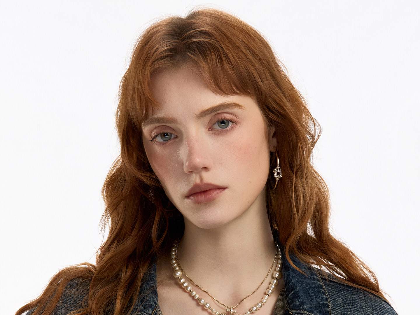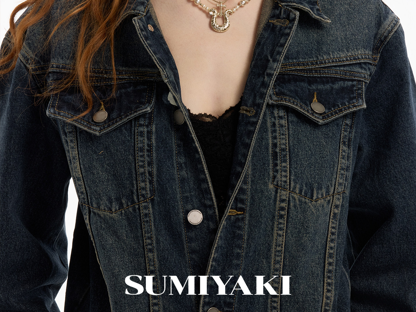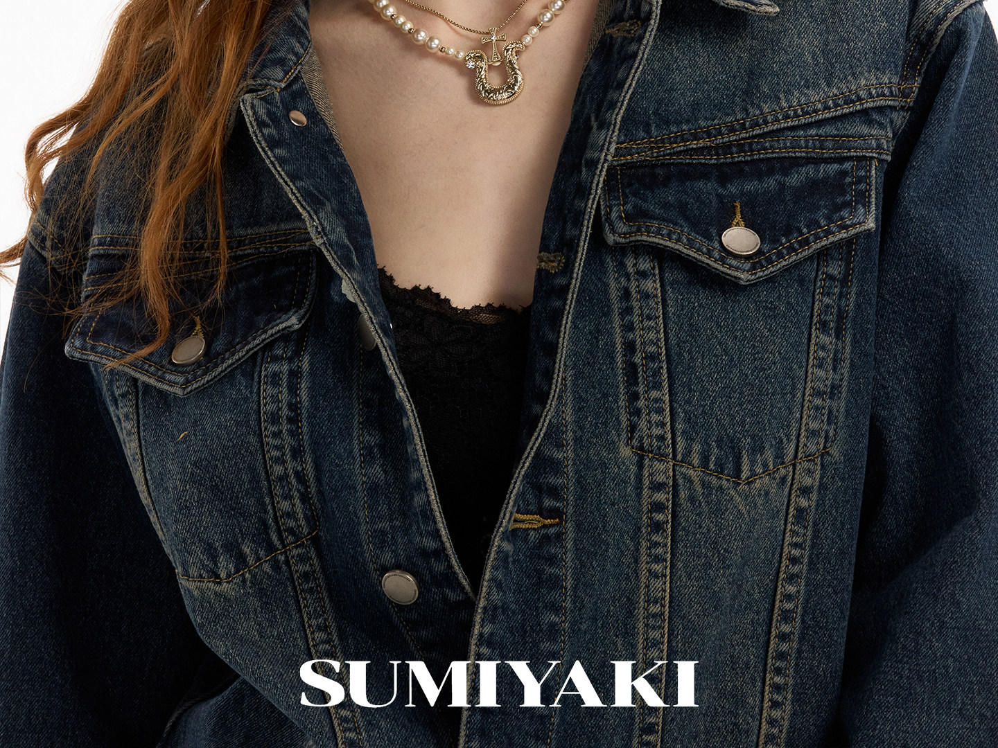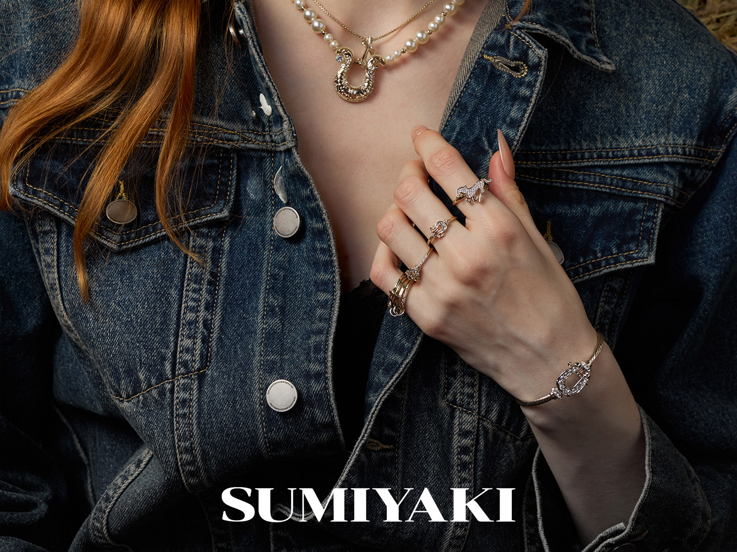 SUMIYAKI 馬年系列浮雕花紋馬蹄釦雙層珍珠項鍊十字架曡戴鎖骨鍊