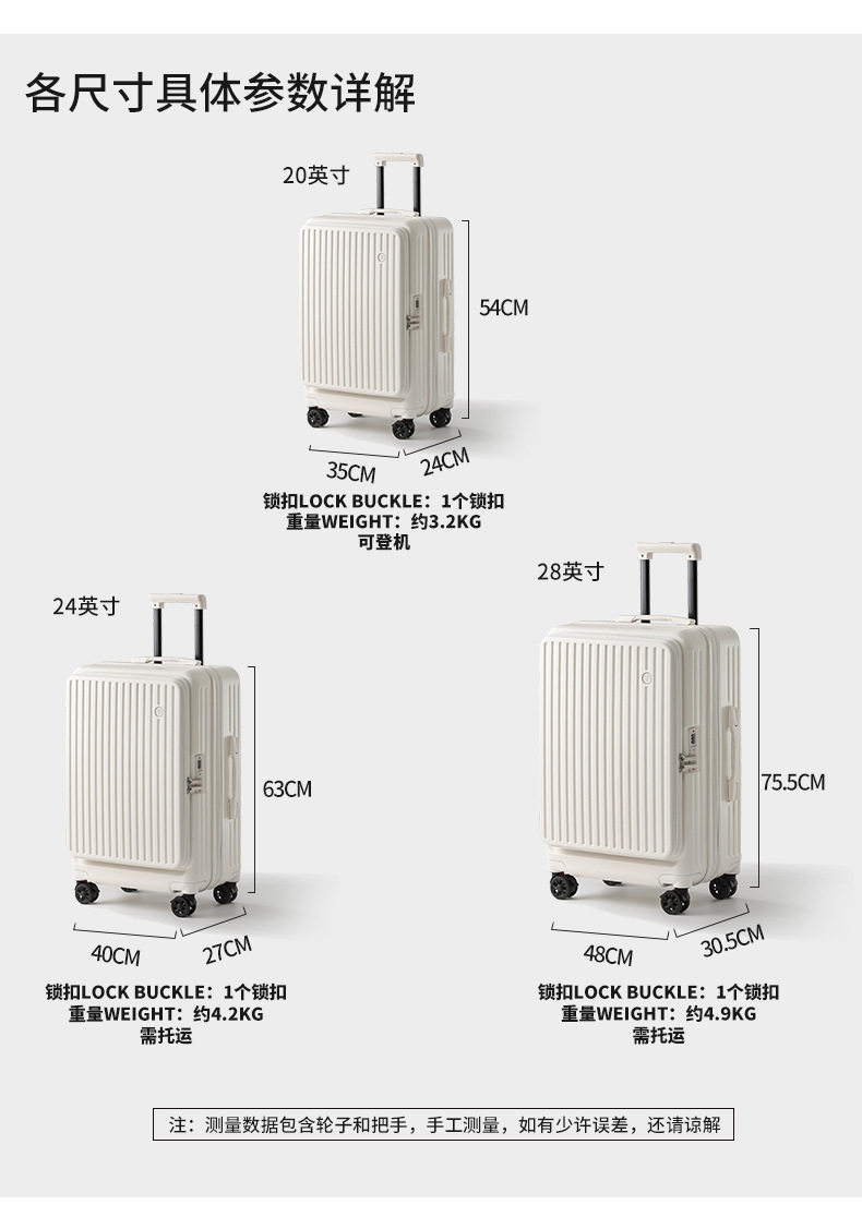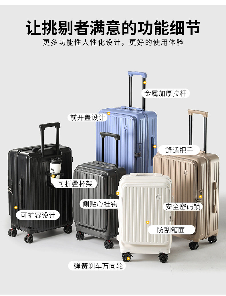 行李箱20寸登機箱前側開口女2025新款擴展多功能拉桿箱旅行箱男