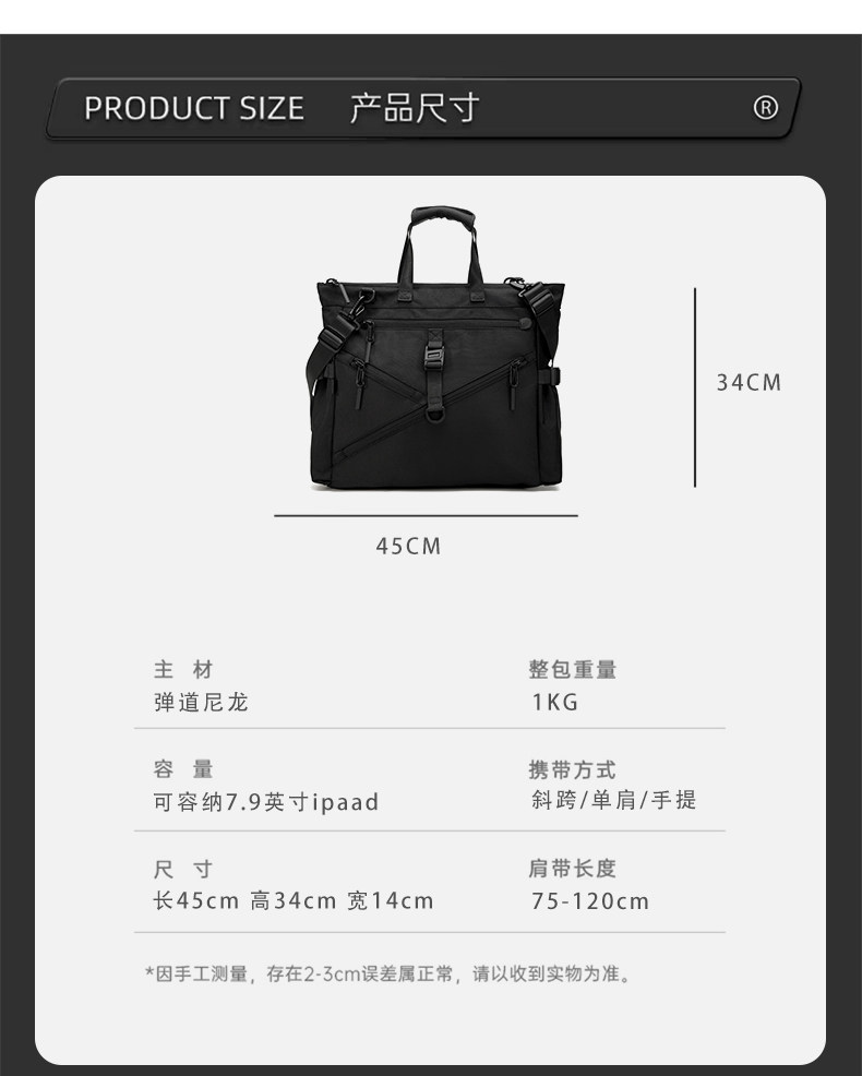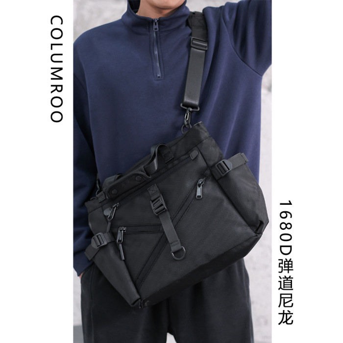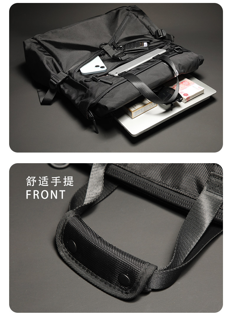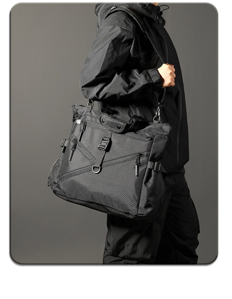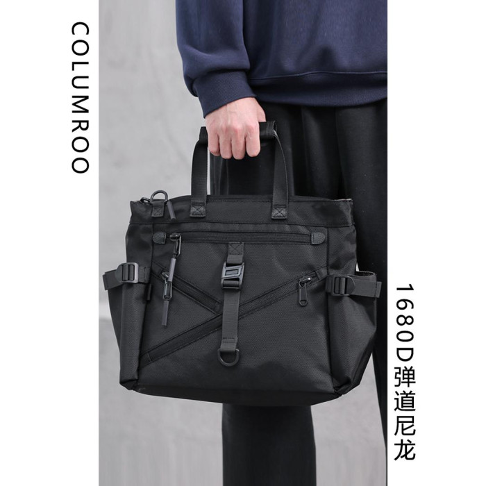 彈道尼龍托特包男士單肩通勤斜後後背包大容量電腦手提包商務公文包秋