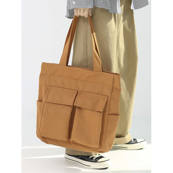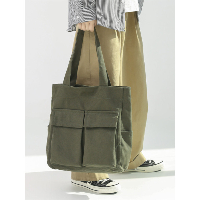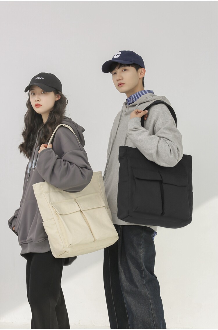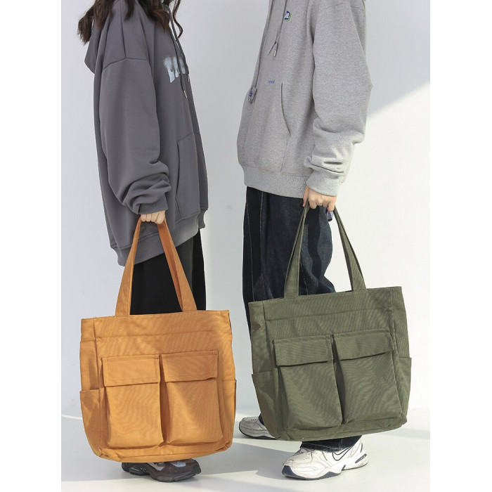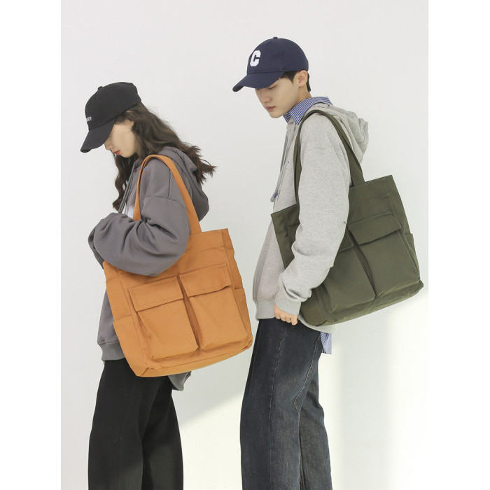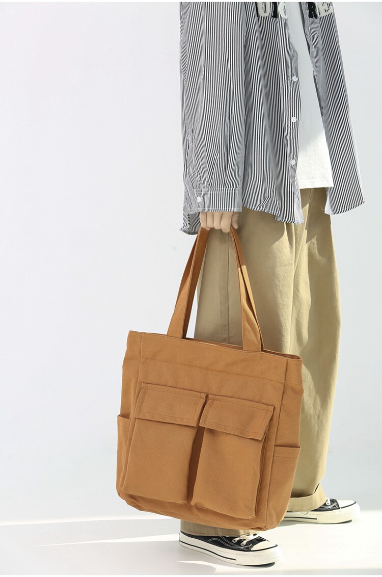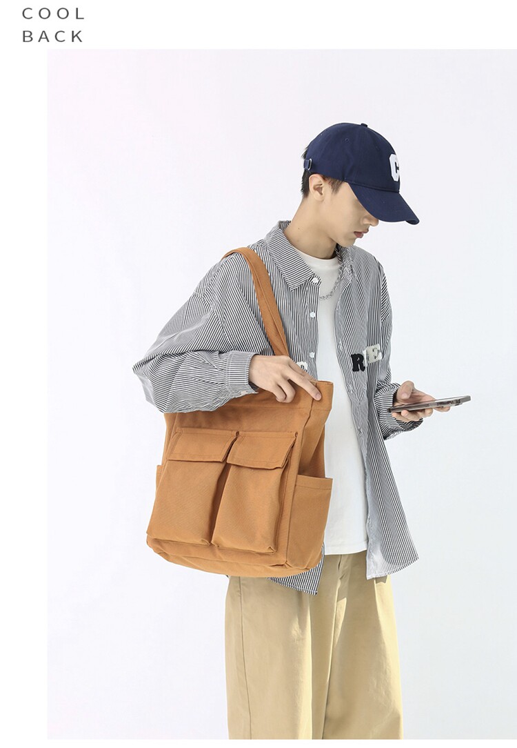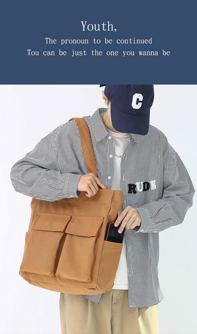 日系復古帆布包男大容量手提包通勤補課帆布袋學生上課書包托特包